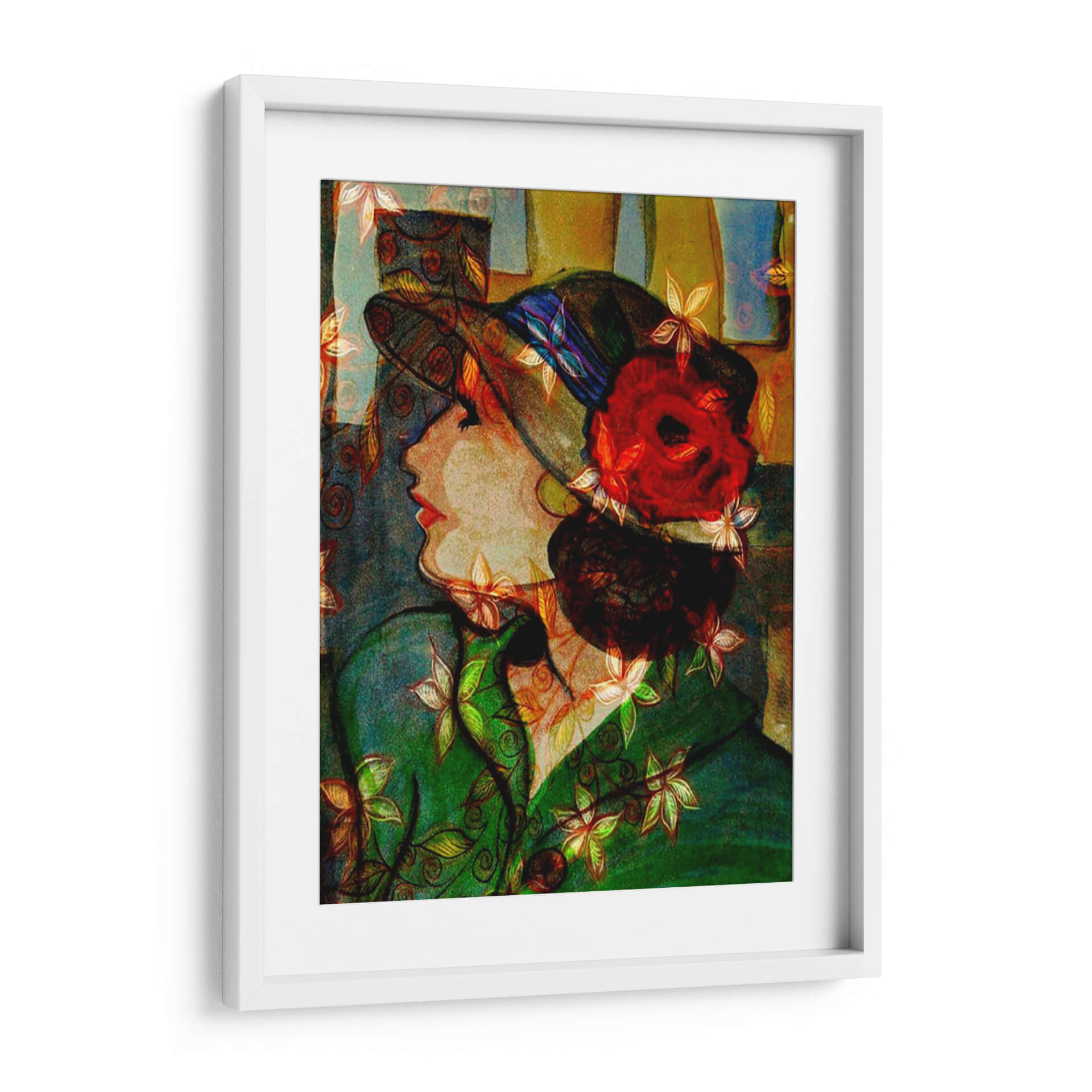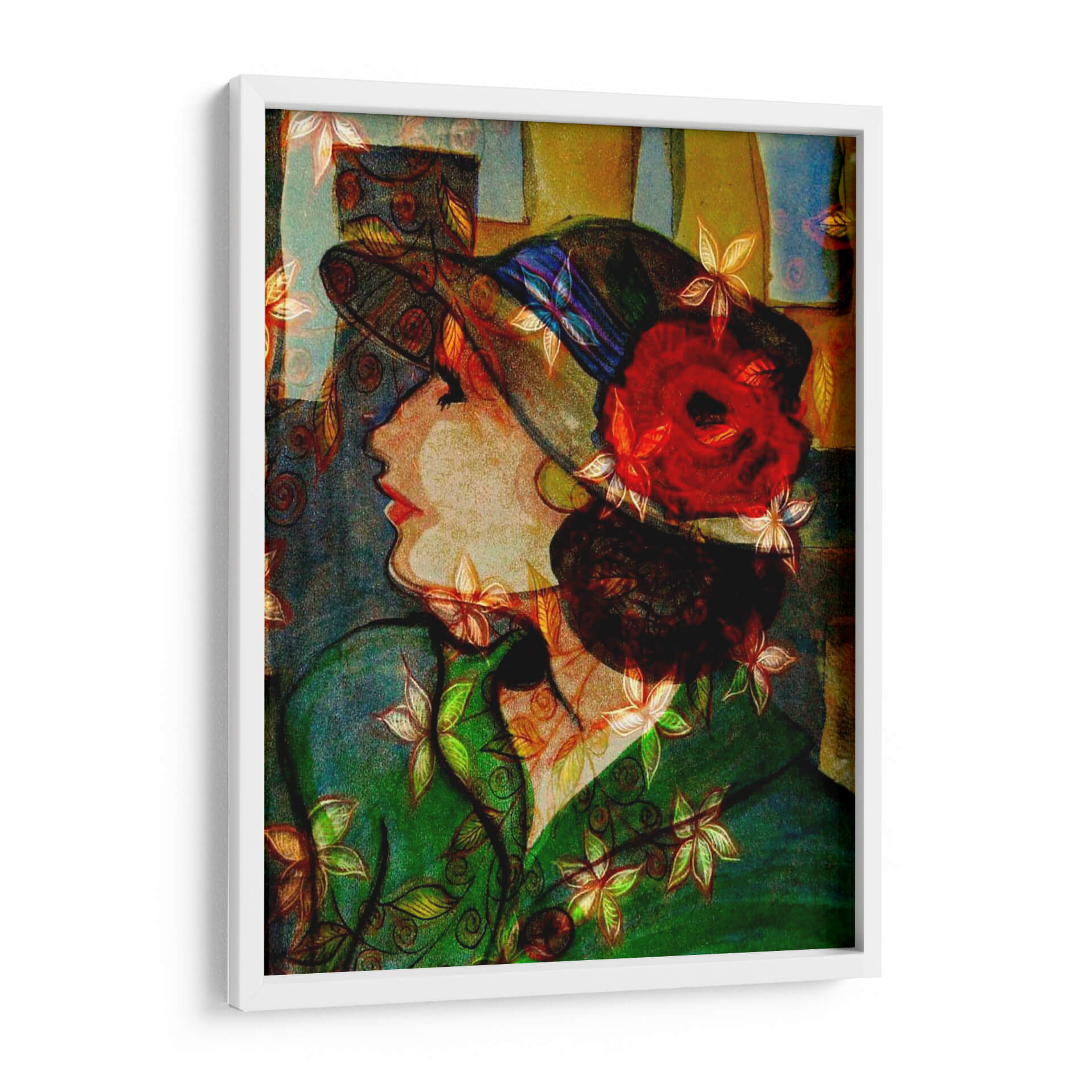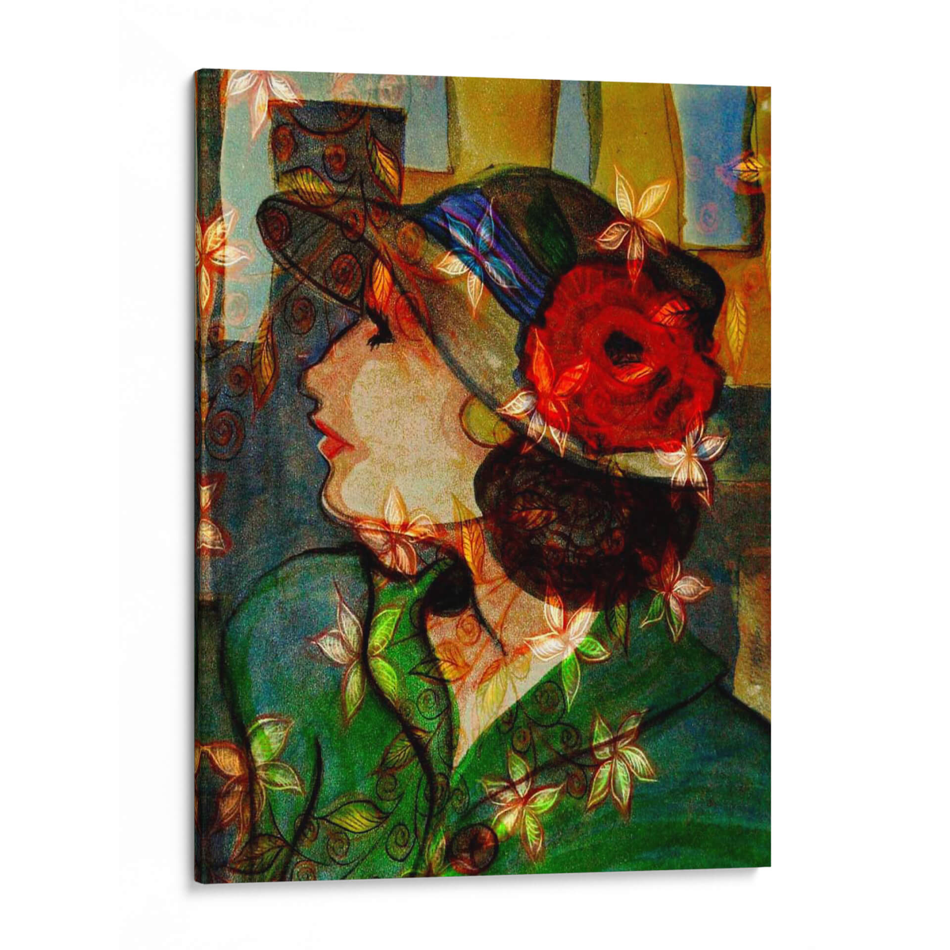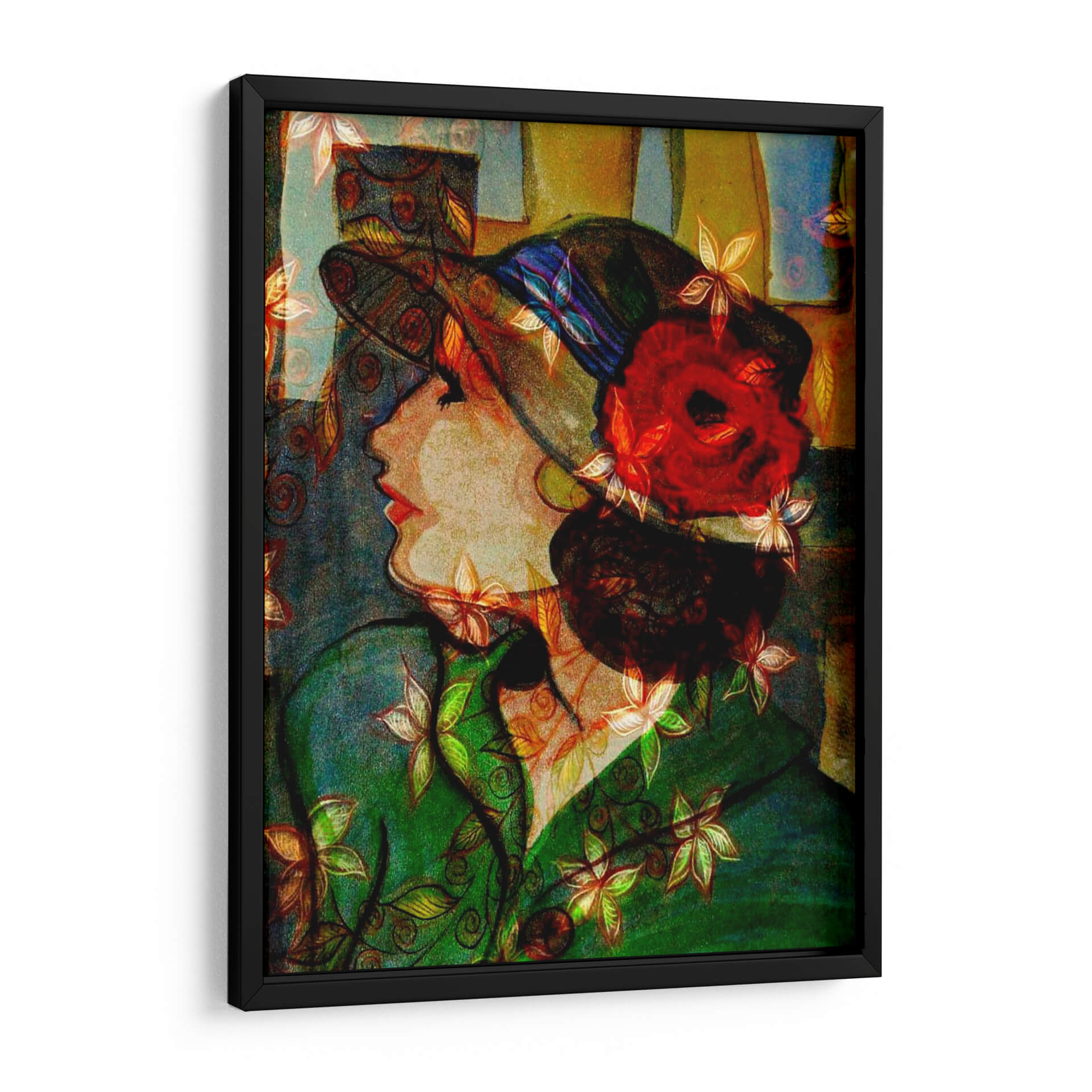 Sumérgete en la enigmática belleza de 'Bella IV', una obra de arte cautivadora de Danielle Harrington. Este cuadro decorativo presenta el perfil de una mujer con un sombrero adornado con una vibrante flor roja, capturando un momento de introspección y elegancia. La paleta de colores, dominada por verdes profundos, tonos tierra y toques de azul y rojo, crea una atmósfera rica y compleja. Las delicadas flores y hojas superpuestas añaden una dimensión onírica y etérea a la composición, sugiriendo una conexión con la naturaleza o un mundo interior. El estilo, que combina elementos figurativos con texturas abstractas y un toque de surrealismo, invita a la contemplación. 'Bella IV' es ideal para espacios que buscan un punto focal sofisticado y lleno de carácter, aportando profundidad visual y un toque de misterio. Transmite una sensación de calma contemplativa con un aire de misterio y feminidad, convirtiéndose en una pieza versátil para salones, dormitorios o estudios que deseen expresar un gusto por el arte contemporáneo con profundidad emocional. Un cuadro decorativo que no solo embellece, sino que también inspira la conversación y la reflexión.