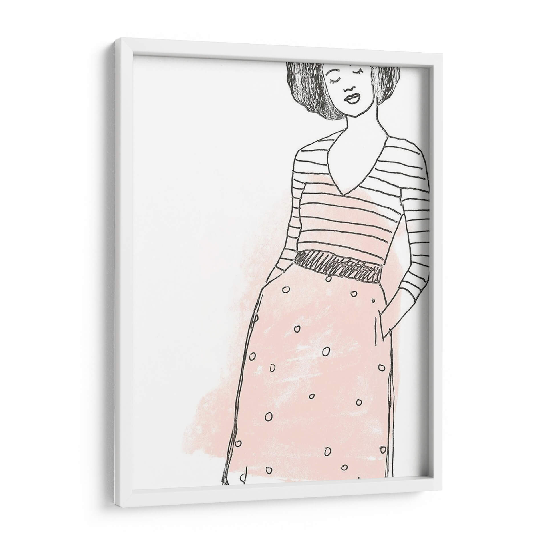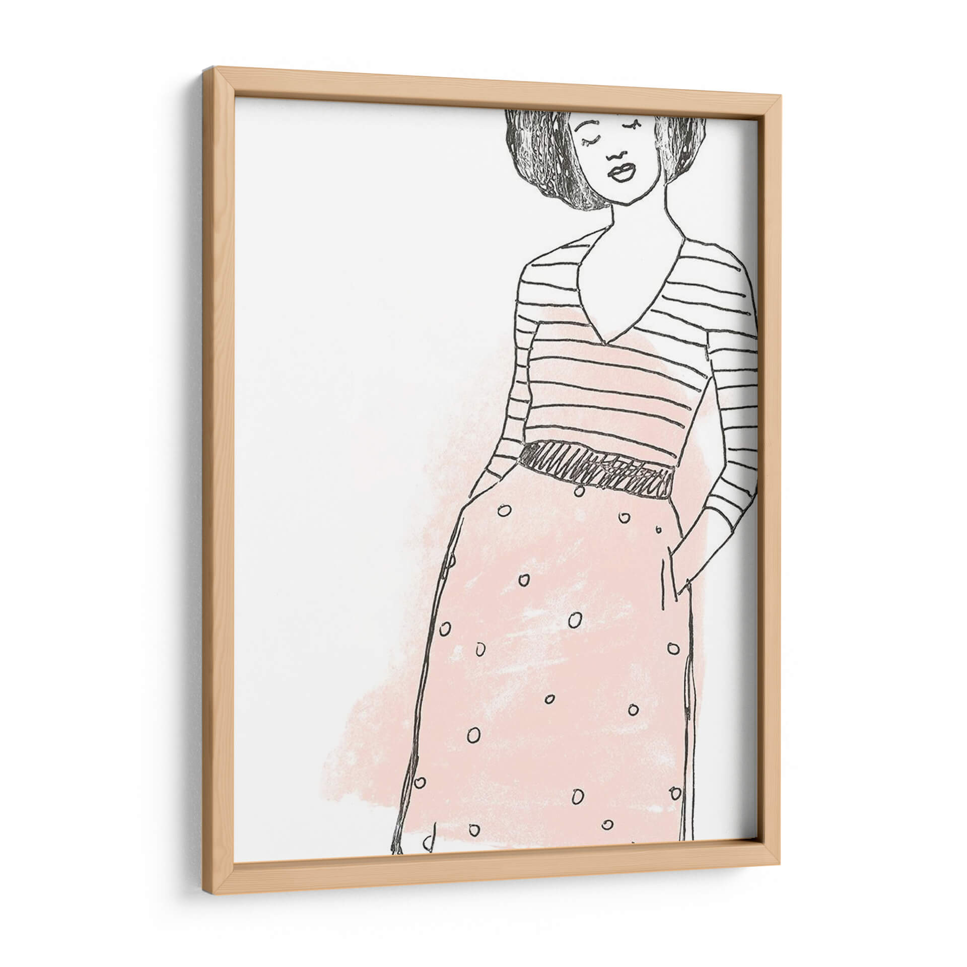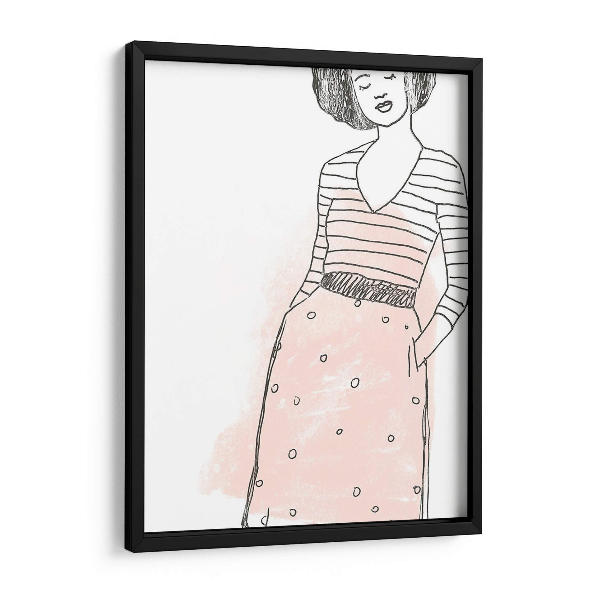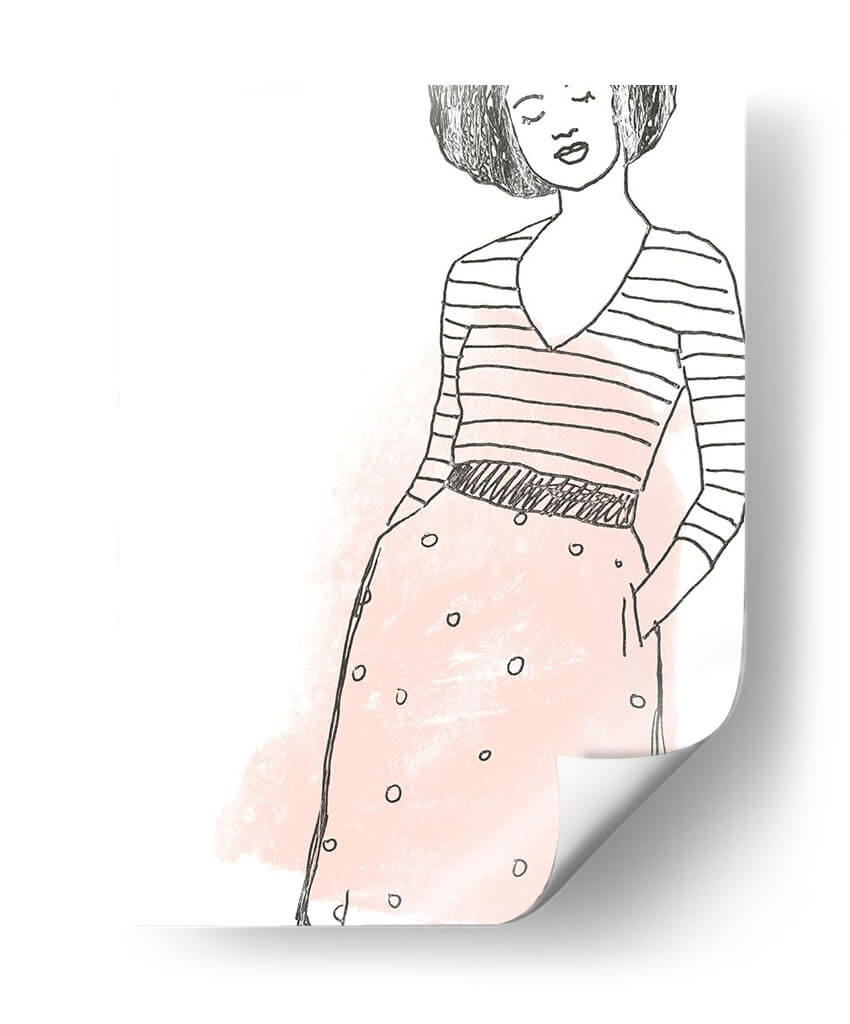 Sumérgete en la elegancia y el encanto de "Bocetos De Moda Ii", una obra de arte contemporáneo que captura la esencia de la moda y el estilo personal. Esta pieza, creada por la talentosa artista June Erica Vess, presenta una figura femenina dibujada con trazos delicados y líneas finas, evocando la estética de un boceto de moda clásico con un toque moderno. La paleta de colores, sutil y sofisticada, se centra en tonos pastel, principalmente un rosa suave y empolvado, contrastado con el blanco del fondo y el detalle de rayas finas en la prenda superior y un cinturón. La falda, de un tono rosado más intenso y adornada con círculos o motas, añade un elemento de textura y diversión al conjunto. La expresión serena de la modelo y su pose relajada invitan a la contemplación, sugiriendo un momento de introspección o una pose para una revista de moda. "Bocetos De Moda Ii" es ideal para añadir un aire de sofisticación chic a cualquier espacio, ya sea un dormitorio, un vestidor, una sala de estar o un tocador. Su estilo versátil la hace perfecta para interiores modernos, minimalistas o incluso de inspiración vintage. Esta obra de arte decorativo es una invitación a celebrar la belleza de la moda y la expresión individual, aportando un toque de arte refinado y una atmósfera de calma y buen gusto a tu hogar u oficina. Descubre cómo esta pieza puede transformar tu ambiente y reflejar tu pasión por el diseño y la estética.