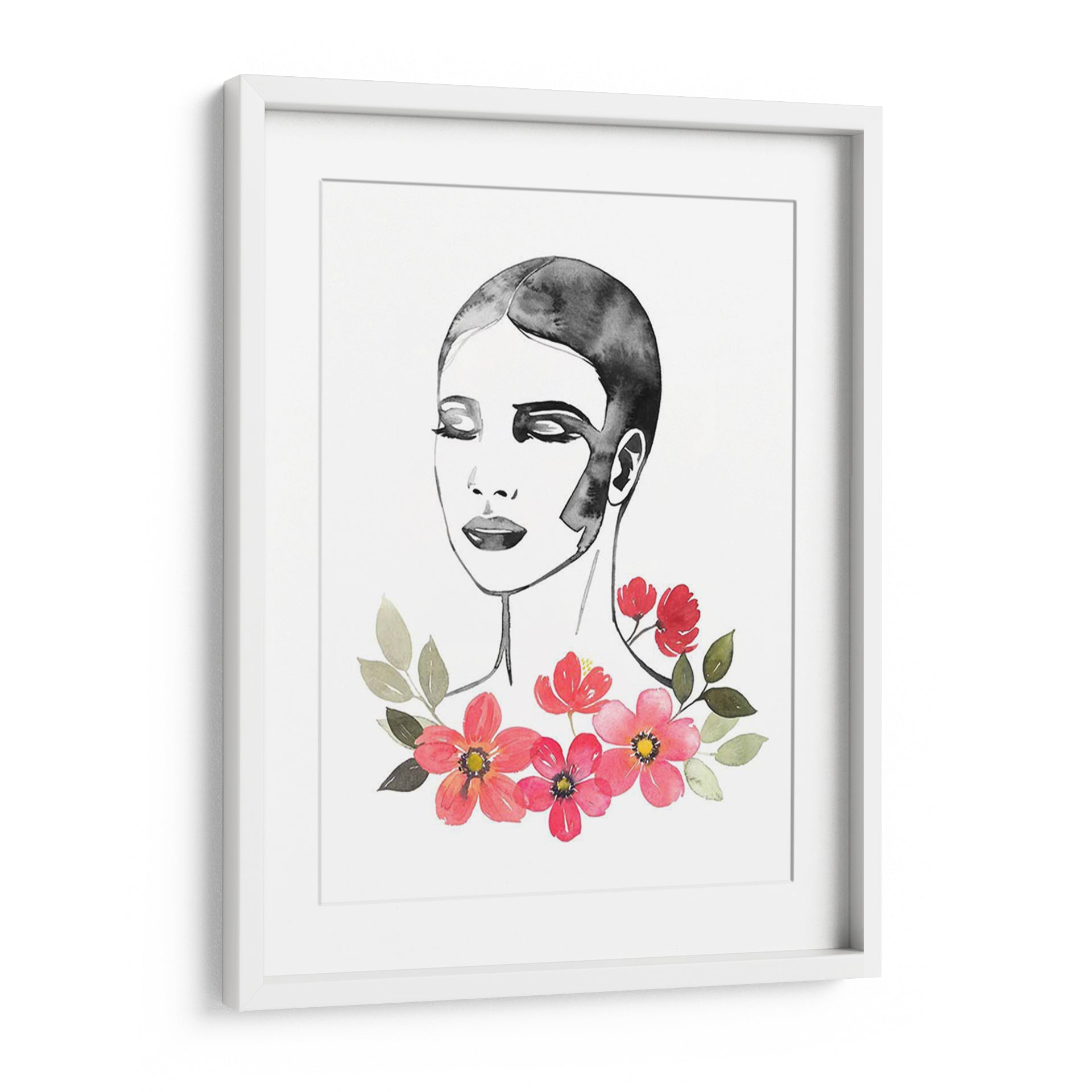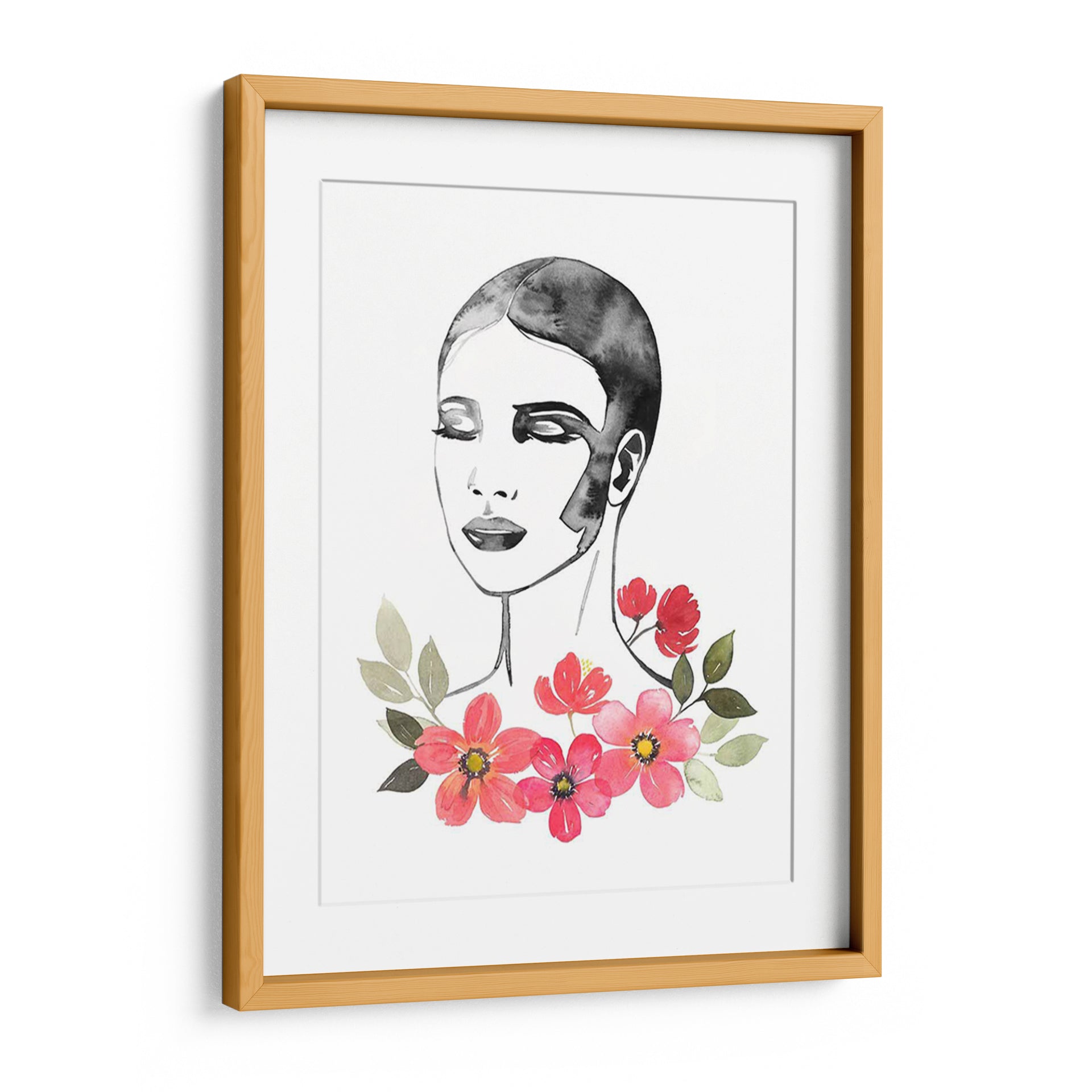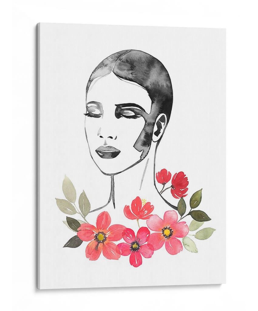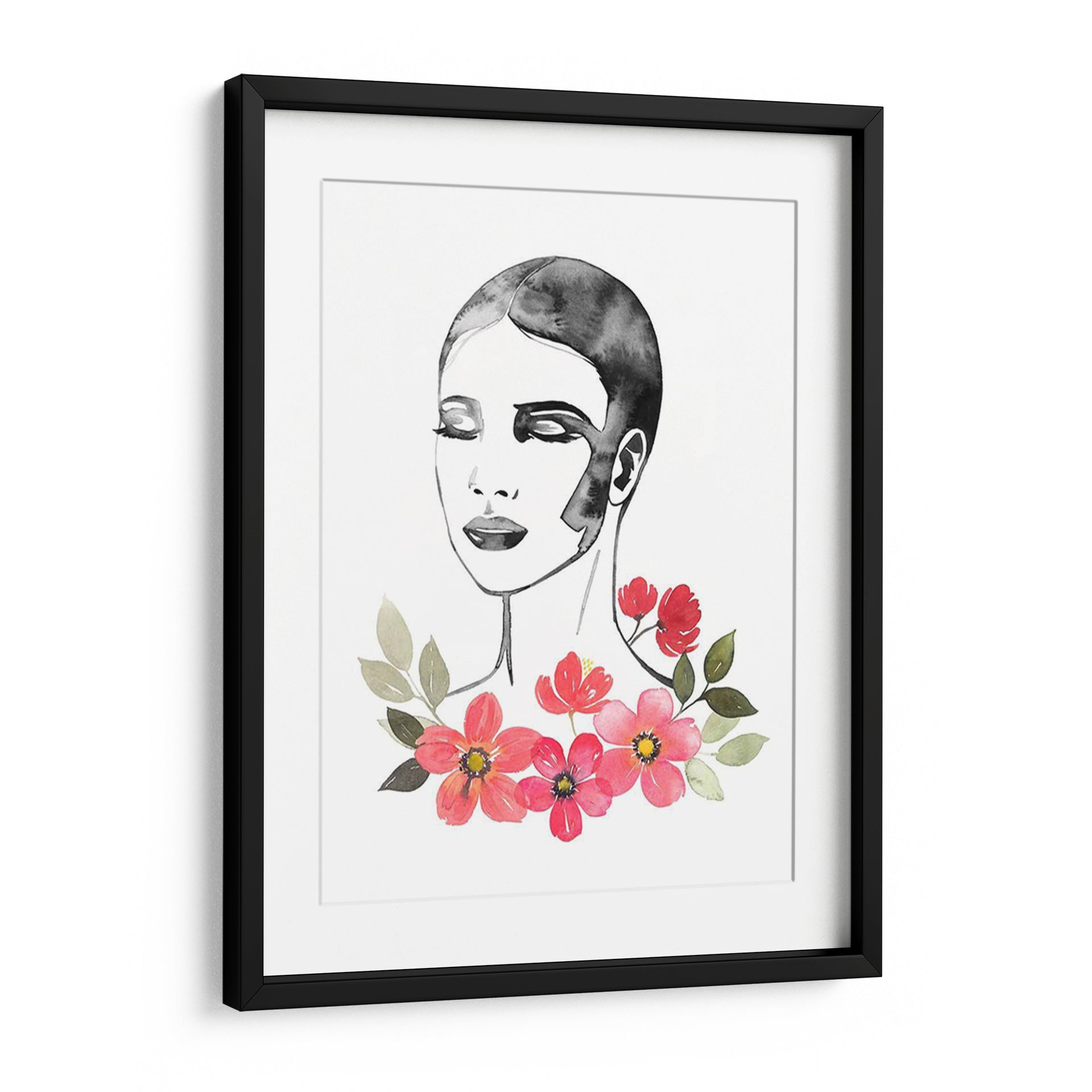 Sumérgete en la serenidad y la belleza etérea de "Daydreamer II", una obra maestra de Grace Popp que captura la esencia de la introspección y la delicadeza. Este cuadro decorativo presenta un cautivador retrato de una mujer con los ojos cerrados, delineada con trazos finos y expresivos en blanco y negro, evocando una profunda sensación de paz y contemplación. La figura se ve adornada por un vibrante arreglo floral en tonos rosados y rojizos, salpicado de sutiles toques de verde, que contrasta maravillosamente con la paleta monocromática del rostro y el fondo neutro. El estilo, que fusiona el minimalismo con un toque de acuarela, crea una atmósfera suave y soñadora, perfecta para espacios que buscan transmitir calma y elegancia. "Daydreamer II" es más que una simple pieza decorativa; es una invitación a la reflexión, ideal para añadir un acento sofisticado y emocional a tu dormitorio, sala de estar o cualquier rincón que necesite un respiro visual. Su composición equilibrada y su paleta de colores armoniosa lo convierten en un complemento versátil para una amplia gama de estilos de decoración, desde el contemporáneo hasta el bohemio.