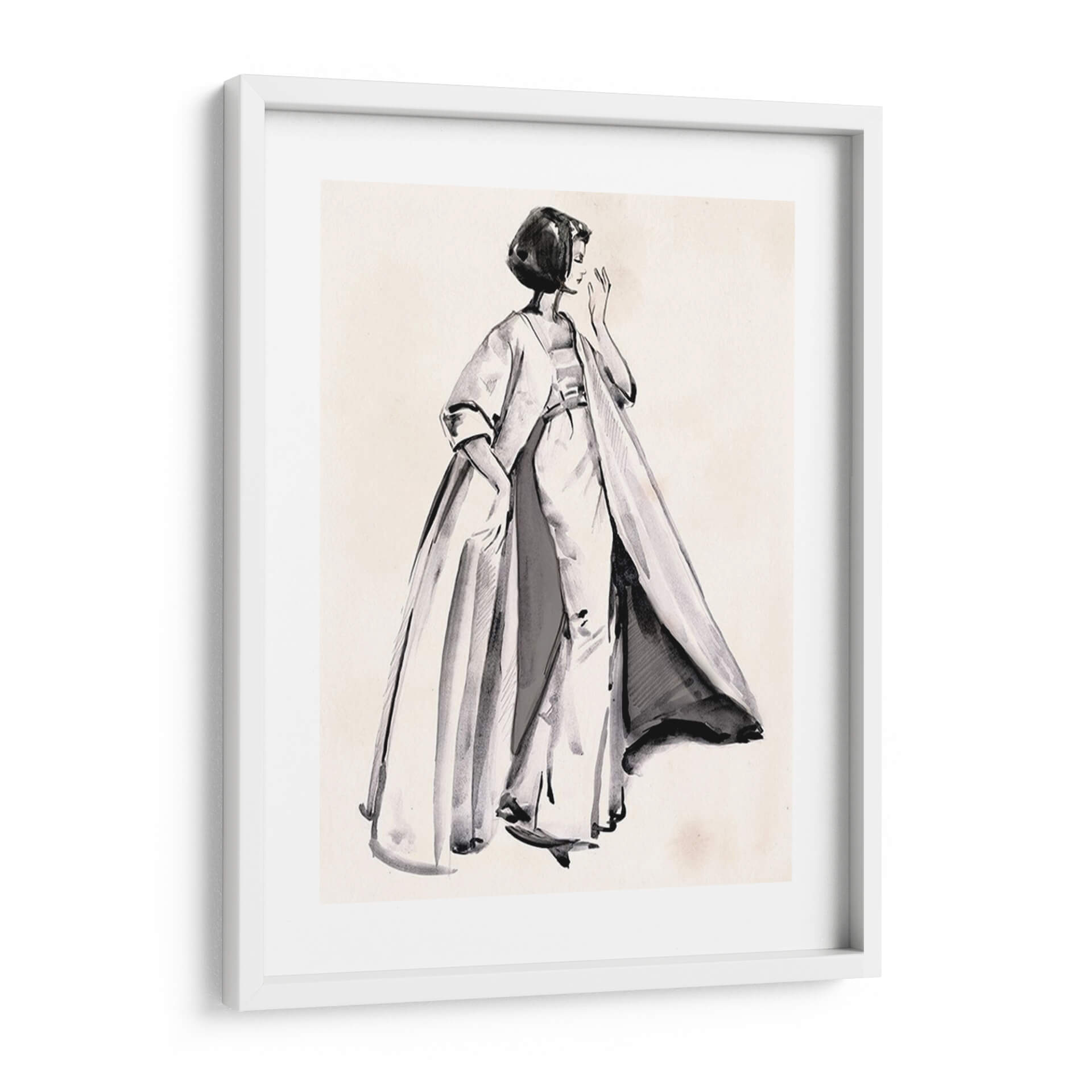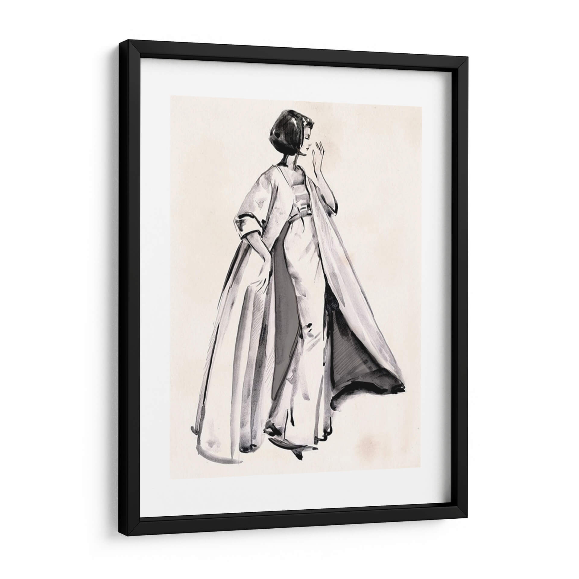 Captura la esencia de la elegancia atemporal con 'El Look Ganador II', una obra de arte que evoca el glamour de la moda clásica. Esta pieza, realizada por la artista Jennifer Paxton Parker, presenta una figura femenina estilizada, representada con trazos de acuarela y tinta que sugieren movimiento y sofisticación. La paleta de colores es sutil, dominada por tonos monocromáticos de gris y negro sobre un fondo cremoso, lo que realza la delicadeza de la figura y la fluidez de su vestimenta. El estilo recuerda a los bocetos de alta costura de mediados del siglo XX, transmitiendo una atmósfera de misterio y distinción. La composición centra la atención en la silueta elegante y la pose contemplativa de la mujer, invitando a la reflexión. Este cuadro decorativo es una elección perfecta para añadir un toque de refinamiento a cualquier espacio, ya sea una sala de estar moderna, un vestidor chic o una oficina de diseño. Su naturaleza evocadora lo convierte en un punto focal que inspira admiración y conversación, ideal para quienes aprecian el arte de la moda y la elegancia sutil en su decoración.