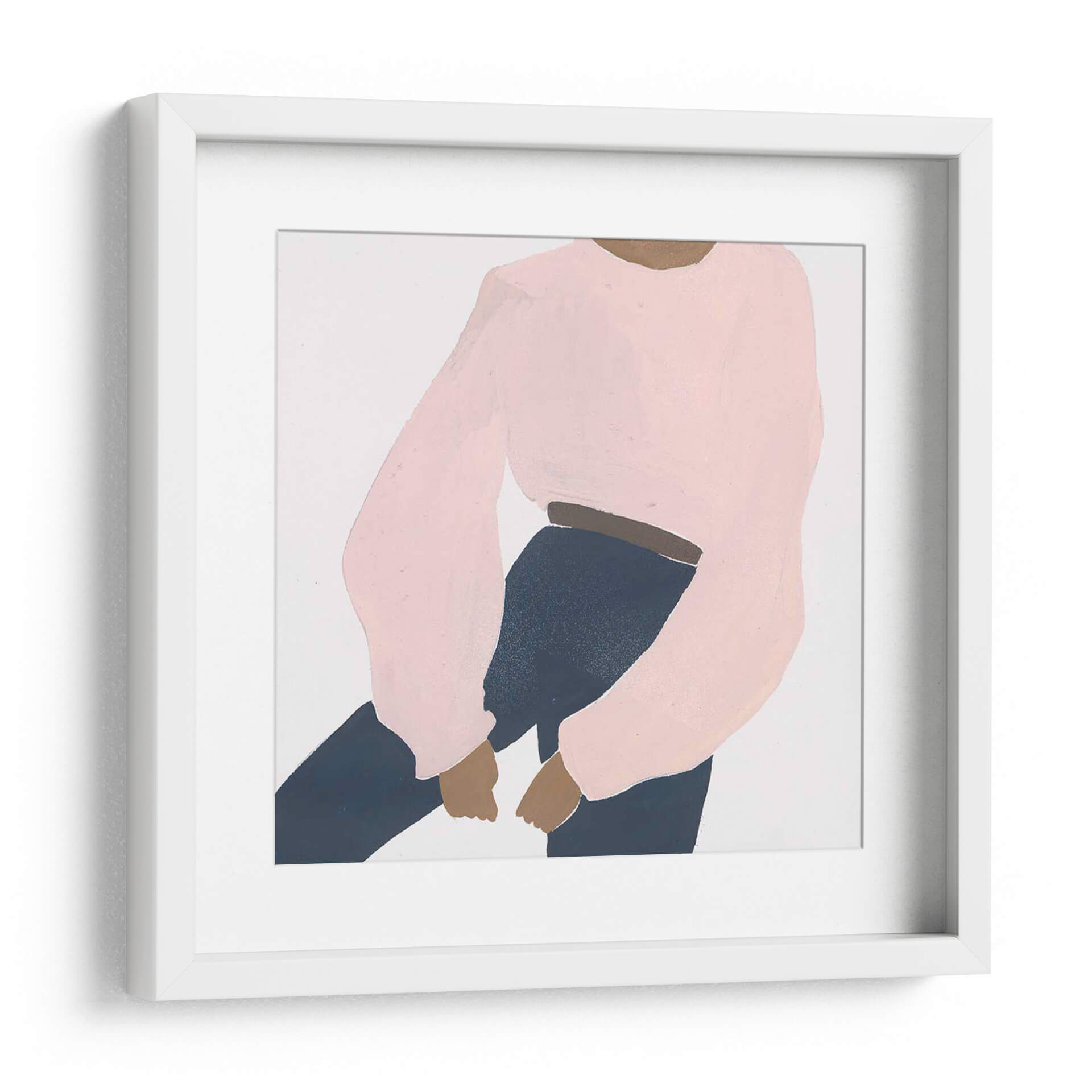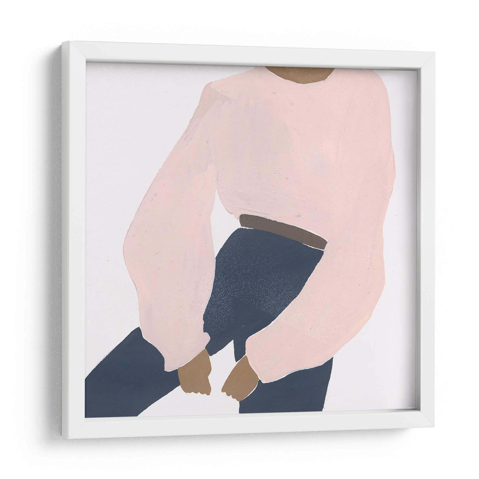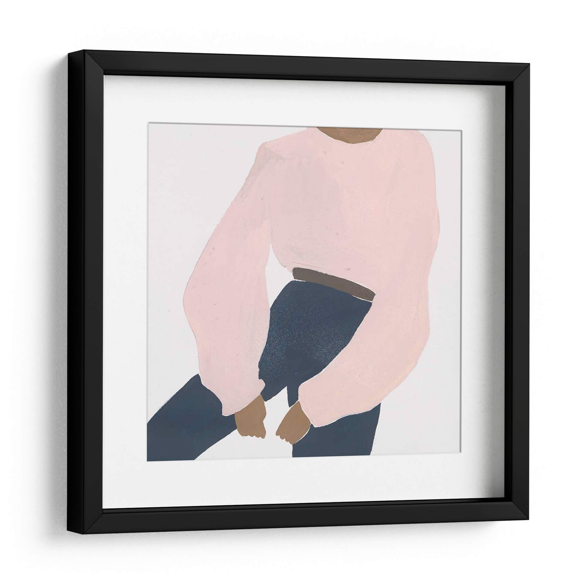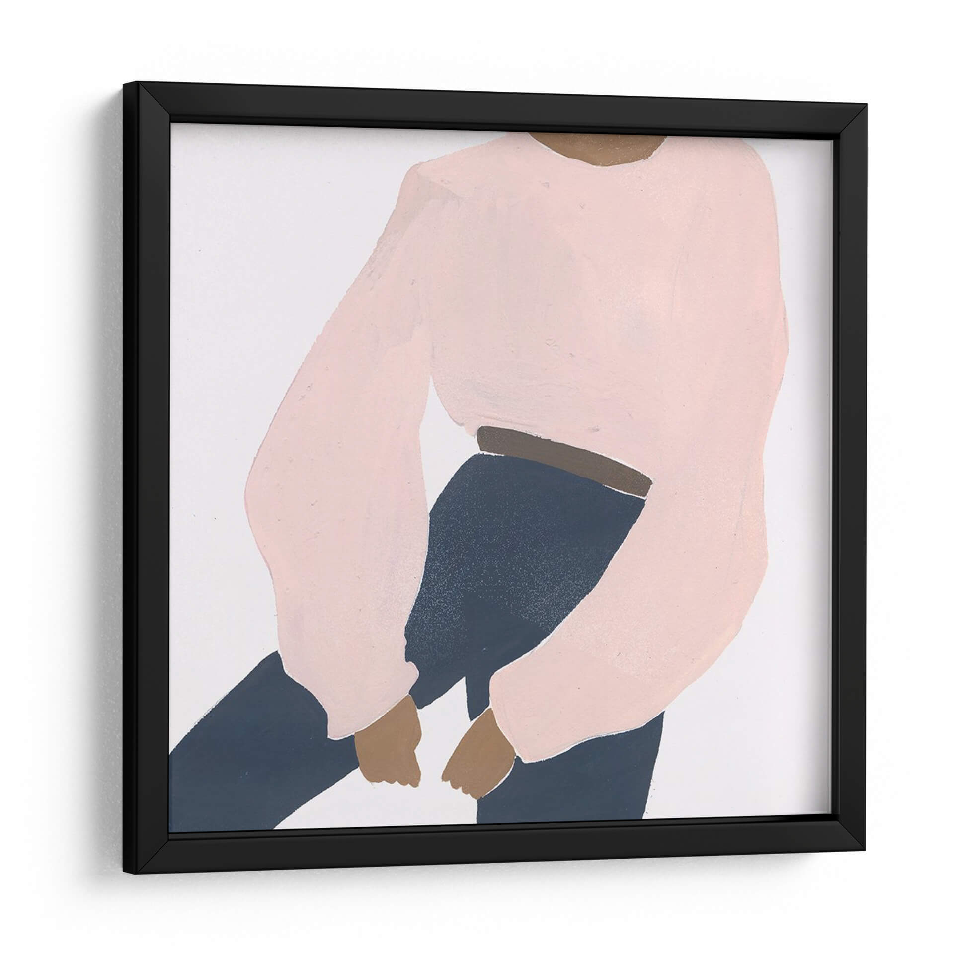 Sumérgete en la serenidad y el estilo contemporáneo con "Ella Misma V", una cautivadora obra de arte de Melissa Wang. Este cuadro decorativo presenta una figura femenina en una pose contemplativa, envuelta en un suéter rosa pálido de mangas abullonadas y pantalones azul marino, creando un contraste armonioso de colores suaves y profundos. La paleta cromática, dominada por el rosa empolvado, el azul índigo y toques de marrón, evoca una sensación de calma y sofisticación, ideal para embellecer cualquier espacio. El estilo minimalista y la pincelada suelta aportan una cualidad etérea y moderna a la pieza, centrando la atención en la forma y la atmósfera. "Ella Misma V" es más que una simple decoración; es una invitación a la introspección y un reflejo de la elegancia moderna. Perfecta para salas de estar, dormitorios o estudios, este cuadro aportará un toque de arte contemporáneo y serenidad a tu hogar u oficina, convirtiéndose en un punto focal que inspira paz y estilo. Añade esta pieza única a tu colección y transforma tu entorno.