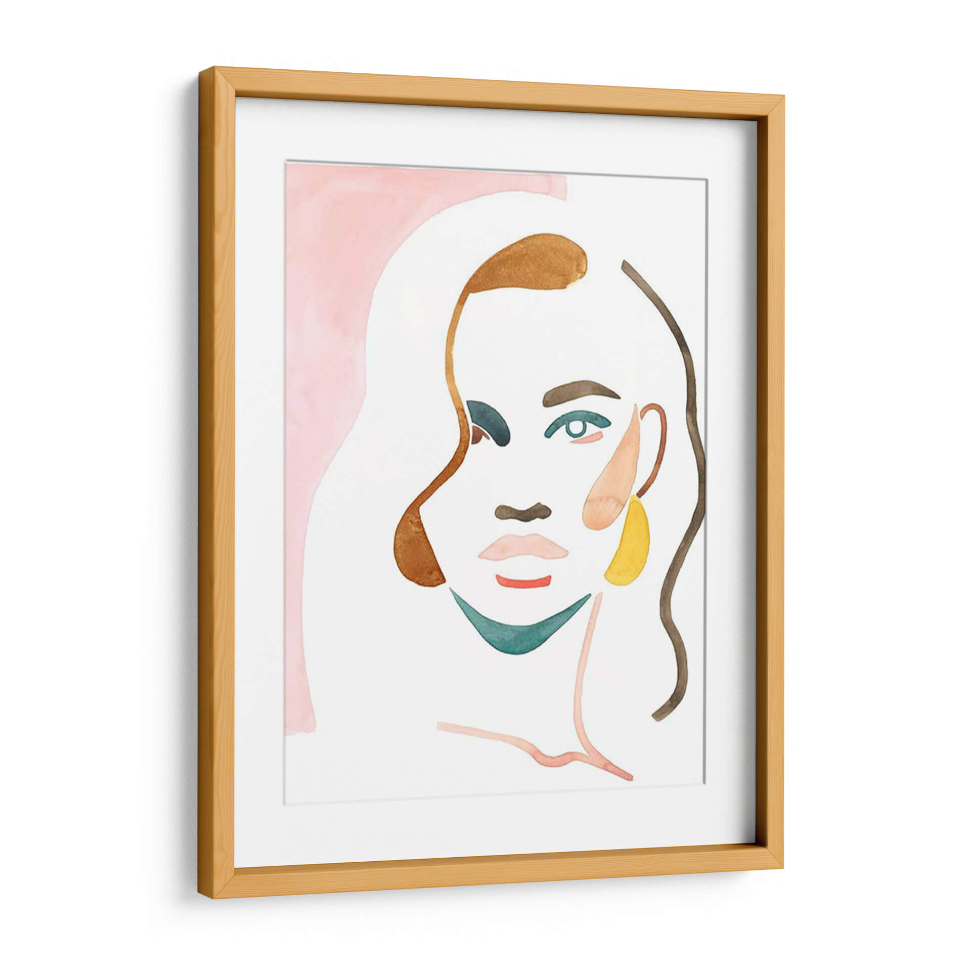 Sumérgete en la enigmática belleza de 'Ella Shadow II', una obra de arte contemporáneo que captura la esencia de la feminidad con trazos audaces y una paleta de colores suave pero impactante. Este cuadro decorativo presenta un rostro femenino estilizado, definido por líneas fluidas y formas abstractas que insinúan más de lo que revelan, invitando a la contemplación y la interpretación personal. La composición juega con el espacio negativo, permitiendo que el blanco del fondo respire y realce los detalles sutiles de la obra. Predominan tonos tierra cálidos como el marrón y el dorado, contrastando elegantemente con un toque de turquesa en el cuello y un rosa empolvado que envuelve sutilmente el contorno del cabello y la mejilla. Un vibrante acento de amarillo en forma de pendiente añade un punto de interés focal. El estilo minimalista y a la vez expresivo de Grace Popp da vida a una pieza que evoca calma, misterio y una sofisticación moderna. Es el detalle perfecto para añadir carácter a tu sala de estar, serenidad a tu dormitorio o un toque de elegancia contemporánea a tu oficina. Este cuadro decorativo transformará cualquier espacio en una galería personal, resonando con aquellos que aprecian el arte que combina delicadeza y fuerza.