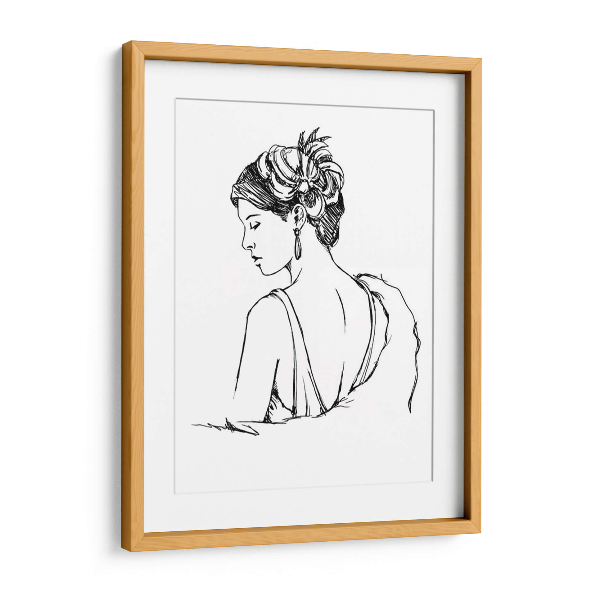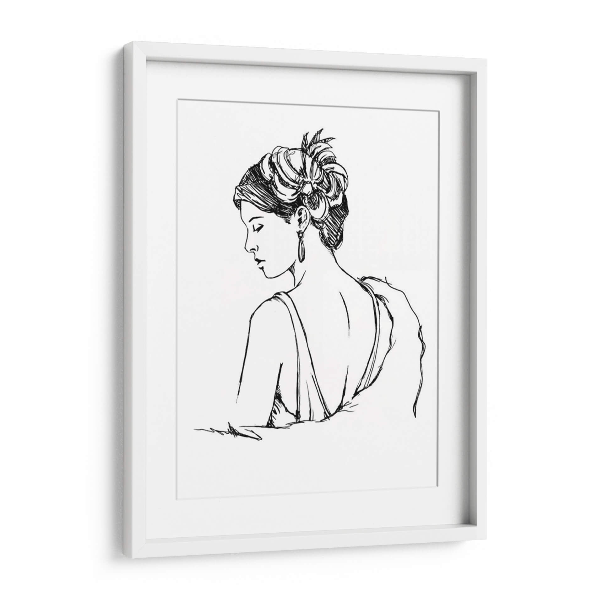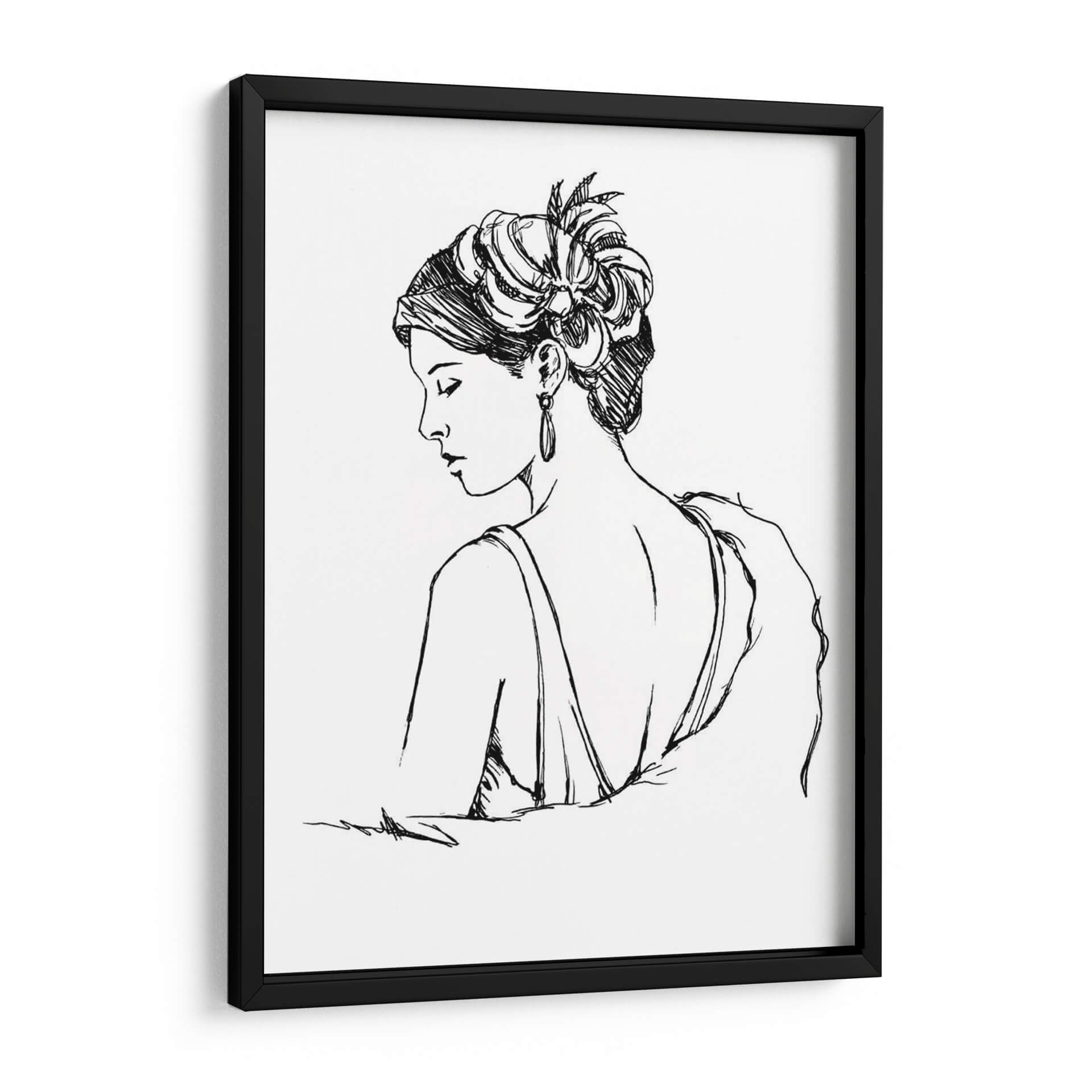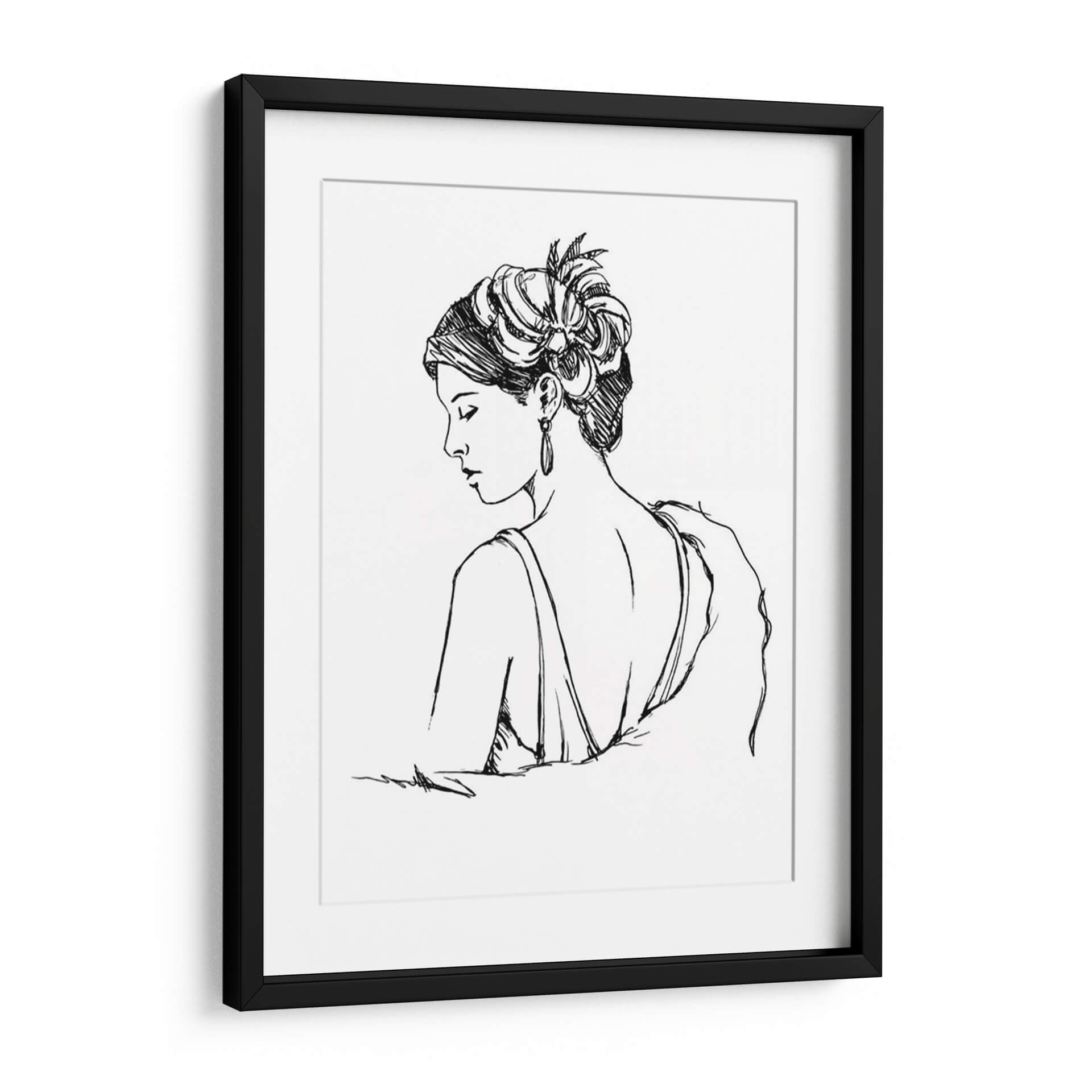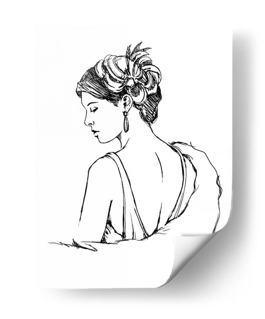 Sumérgete en la elegancia atemporal con "Estudio Elegante Moda IV", una obra maestra de Ethan Harper que captura la esencia de la sofisticación femenina. Este cuadro decorativo presenta un perfil de mujer con un peinado elaborado y un pendiente sutil, dibujado con trazos de tinta precisos y fluidos sobre un fondo blanco, evocando un estilo que recuerda a los croquis de moda de antaño. La paleta monocromática en blanco y negro aporta un toque de clasicismo y versatilidad, permitiendo que esta pieza se integre a la perfección en cualquier esquema decorativo, desde salones modernos hasta dormitorios íntimos o vestidores chic. La delicadeza de la línea y la pose introspectiva de la figura invitan a la contemplación, transmitiendo una atmósfera de calma y refinamiento. "Estudio Elegante Moda IV" no es solo una decoración; es una declaración de estilo, un homenaje a la belleza y la moda que añadirá un aire de distinción y arte a tu hogar u oficina. Ideal para quienes aprecian el arte figurativo con un toque contemporáneo y buscan piezas que inspiren y embellezcan sus espacios vitales con un diseño gráfico cautivador y lleno de personalidad, convirtiéndose en un punto focal de conversación y admiración.