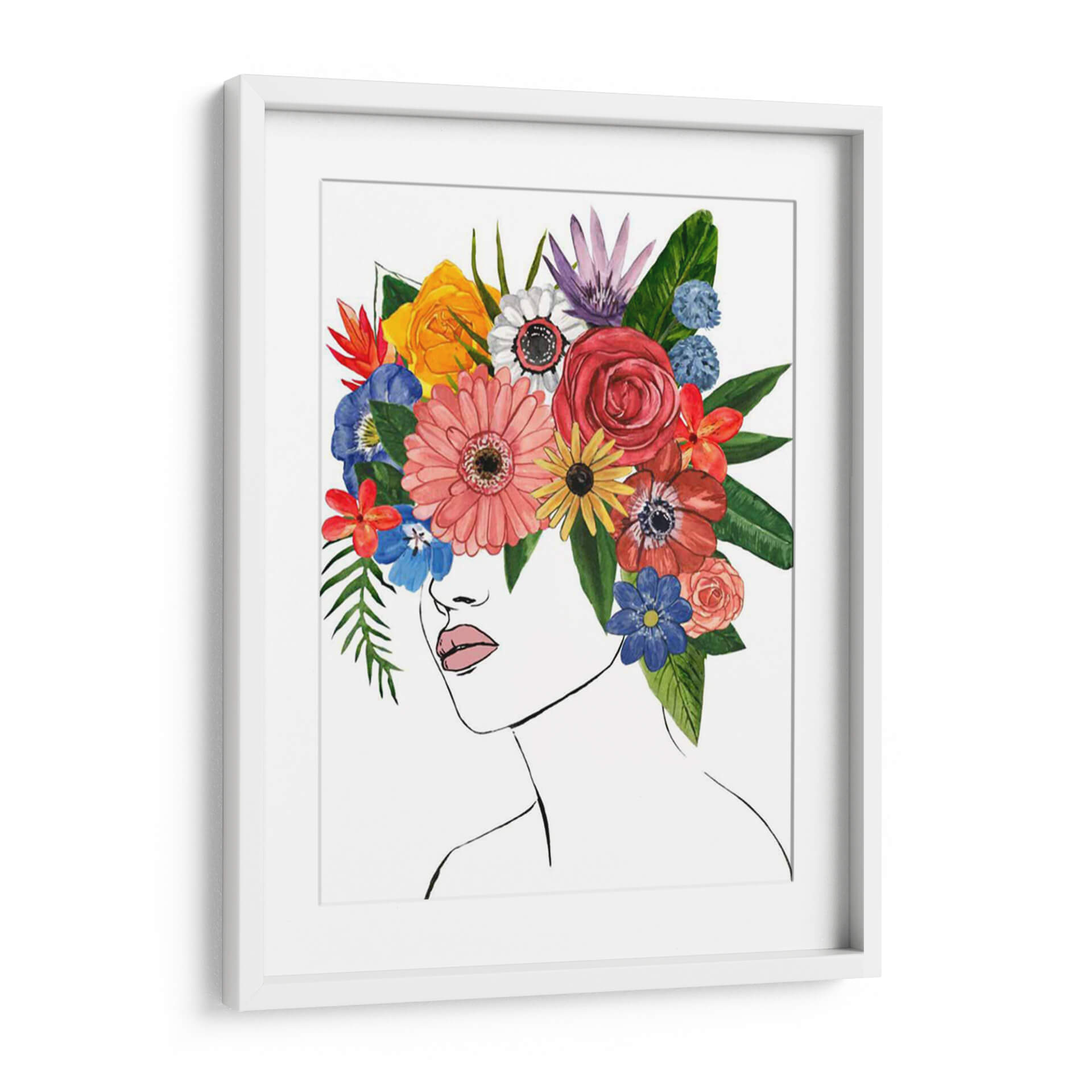 Sumérgete en la belleza etérea de "Flor Lady II", una obra de arte cautivadora que celebra la feminidad y la naturaleza entrelazadas. Este cuadro decorativo presenta una delicada línea de contorno que define el perfil de una mujer, coronada por un vibrante y exuberante arreglo floral. Cada flor, desde el intenso rojo de una rosa hasta la suave calidez de una gerbera rosa y los toques alegres de flores azules y amarillas, está pintada con acuarela, aportando una sensación de ligereza y frescura. El artista Jacob Green ha logrado un equilibrio magistral entre la simplicidad del trazo y la riqueza del color, creando una pieza que es a la vez moderna y atemporal. La composición, centrada en la fusión de la figura humana con la flora, evoca sentimientos de serenidad, crecimiento y conexión con el mundo natural. Este cuadro es ideal para añadir un toque de color y sofisticación a cualquier espacio, ya sea una sala de estar, un dormitorio o un estudio. Su estilo único lo convierte en un punto focal que invita a la contemplación y realza la decoración de interiores con un encanto orgánico y artístico.