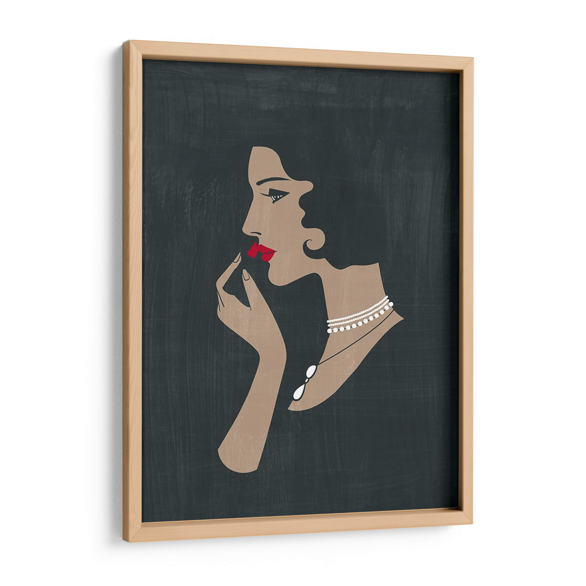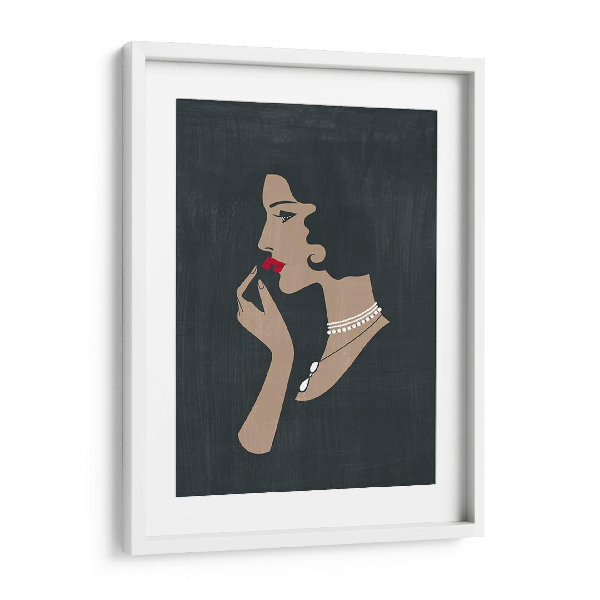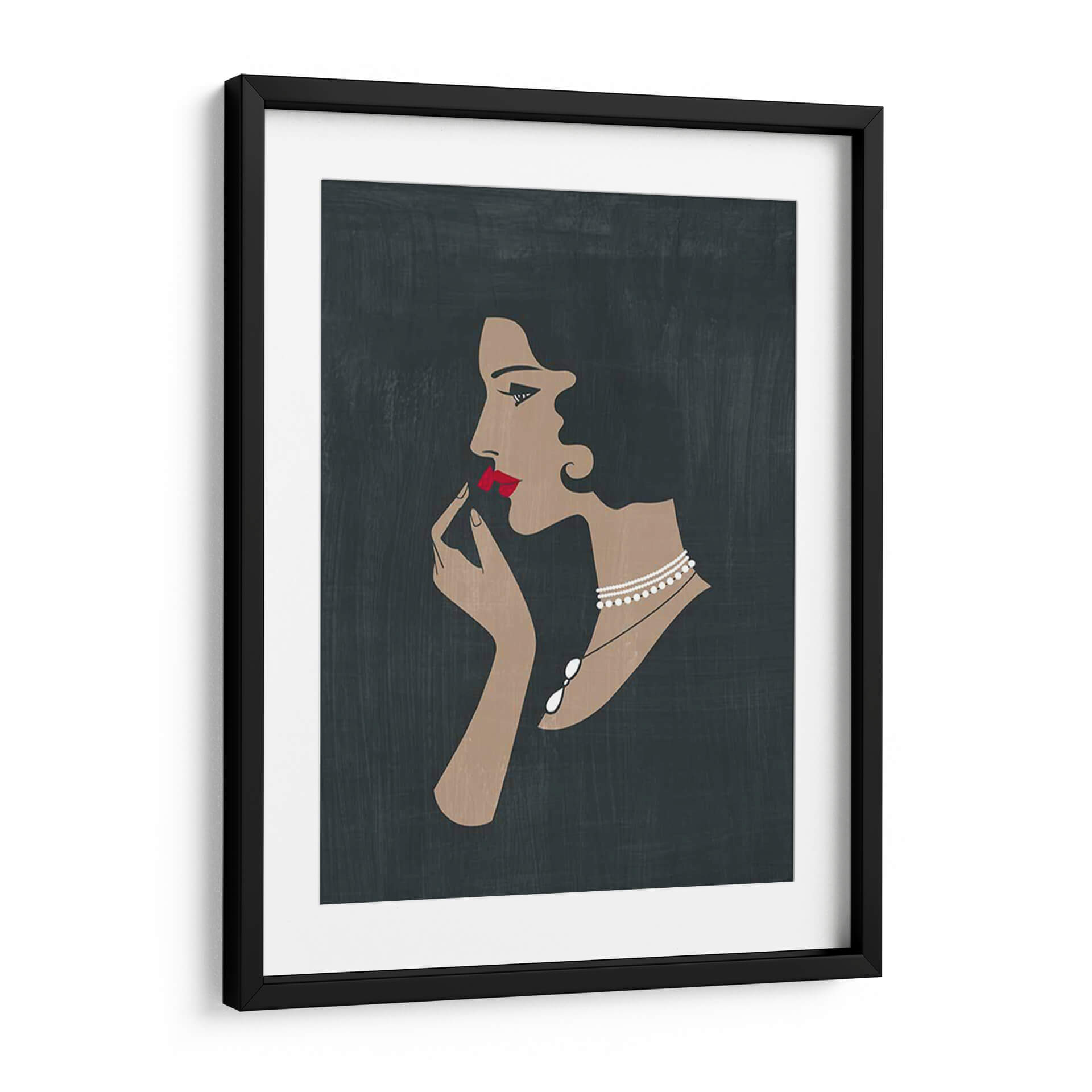 Sumérgete en la elegancia atemporal con 'Golden Ede Gals Ii', una obra de arte digital que captura la esencia de la sofisticación femenina. Esta pieza presenta el perfil estilizado de una mujer, con un enfoque en el gesto sutil de aplicarse lápiz labial, realzado por unos labios carmesí vibrantes. La paleta de colores, dominada por tonos oscuros y terrosos en el fondo, contrasta maravillosamente con la piel cálida del rostro y las manos, y la audacia del rojo carmín. Un delicado collar de perlas añade un toque de lujo y refinamiento, complementando la atmósfera de glamour de principios del siglo XX. El estilo artístico, con sus líneas limpias y siluetas definidas, evoca un aire de misterio y encanto, ideal para añadir un punto focal chic a cualquier espacio. Este cuadro decorativo es perfecto para salones modernos, tocadores o vestidores, aportando una dosis de estilo vintage y una narrativa visual cautivadora. Su diseño minimalista pero impactante lo convierte en una elección ideal para quienes aprecian el arte que combina audacia y sutileza, creando un ambiente de elegancia discreta y poder femenino.
