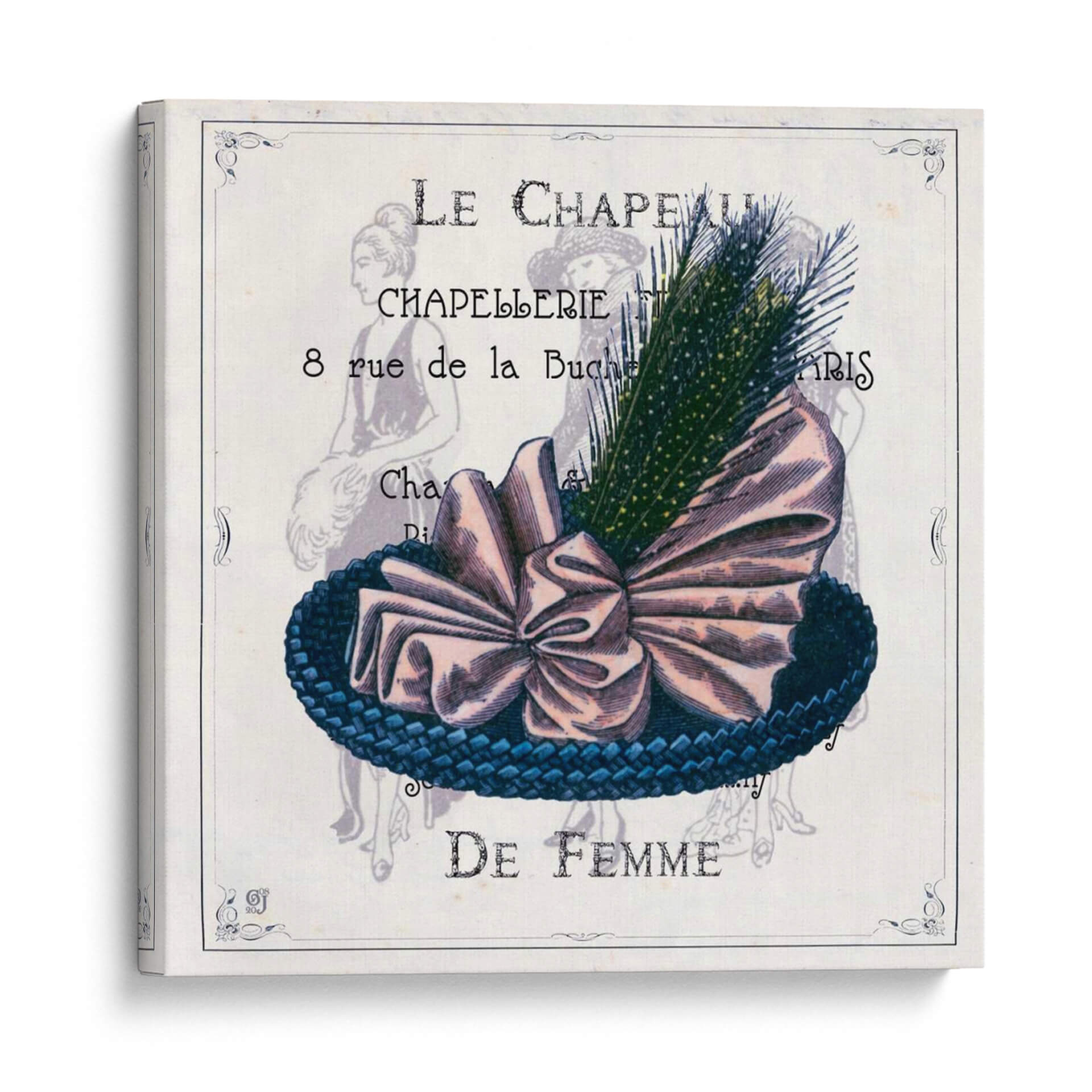 Sumérgete en la elegancia atemporal de 'Haute Couture II', una obra de arte decorativo que evoca el sofisticado encanto de la moda parisina. Esta pieza presenta una detallada ilustración de un sombrero de alta costura adornado con un delicado lazo rosado y una exuberante pluma verde, enmarcado por un fondo que recuerda a los anuncios de moda de antaño y figuras de mujeres elegantes. La paleta de colores suaves, con toques de azul profundo, rosa pálido y verdes naturales, crea una atmósfera de refinamiento y nostalgia. El estilo gráfico y la composición centrada en el accesorio principal invitan a la contemplación de la artesanía y el detalle. Ideal para añadir un toque de clase y un punto focal chic a tu salón, dormitorio o vestidor, este cuadro decorativo transformará cualquier espacio en un santuario de estilo. Es la elección perfecta para quienes aprecian la moda vintage, la estética parisina o buscan una decoración de pared que combine arte y elegancia.