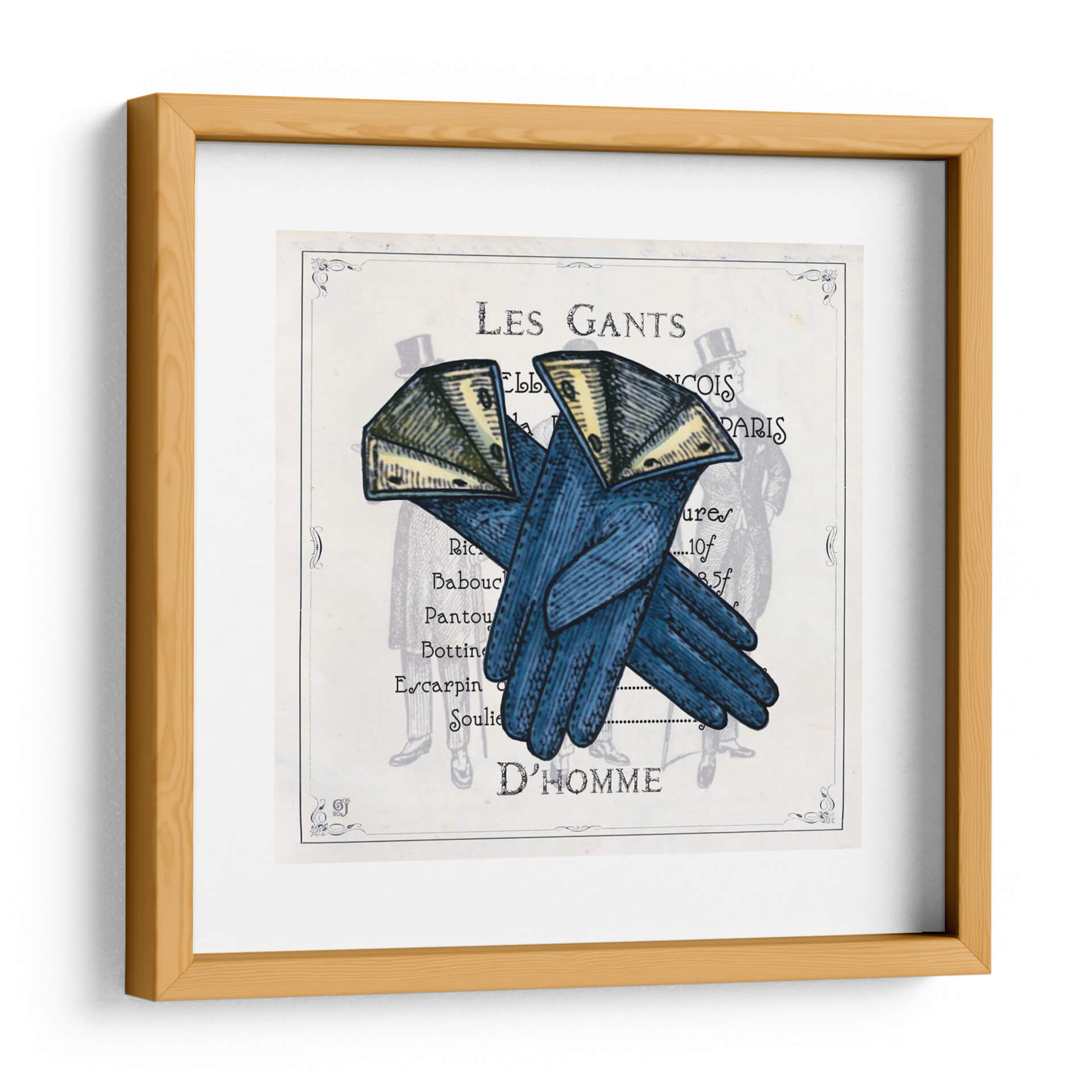 Sumérgete en la elegancia retro con 'Haute Couture Vii', una obra de arte digital que evoca el encanto de la moda francesa de antaño. Este cuadro decorativo presenta un primer plano de guantes azules de estilo vintage, superpuestos sobre un fondo que simula un antiguo anuncio de moda masculina con siluetas de caballeros y texto en francés. La paleta de colores, dominada por el vibrante azul de los guantes y los sutiles tonos crema y sepia del fondo, crea una atmósfera sofisticada y nostálgica. El estilo ilustrativo, con un toque de grabado y acuarela, añade una textura visual rica y detallada a la pieza. 'Haute Couture Vii' es ideal para espacios que buscan un acento de carácter y estilo clásico, como un vestidor, un estudio o una sala de estar con toques vintage. Transmite una sensación de refinamiento y un guiño a la alta costura, convirtiéndose en un punto focal único y elegante en cualquier decoración.