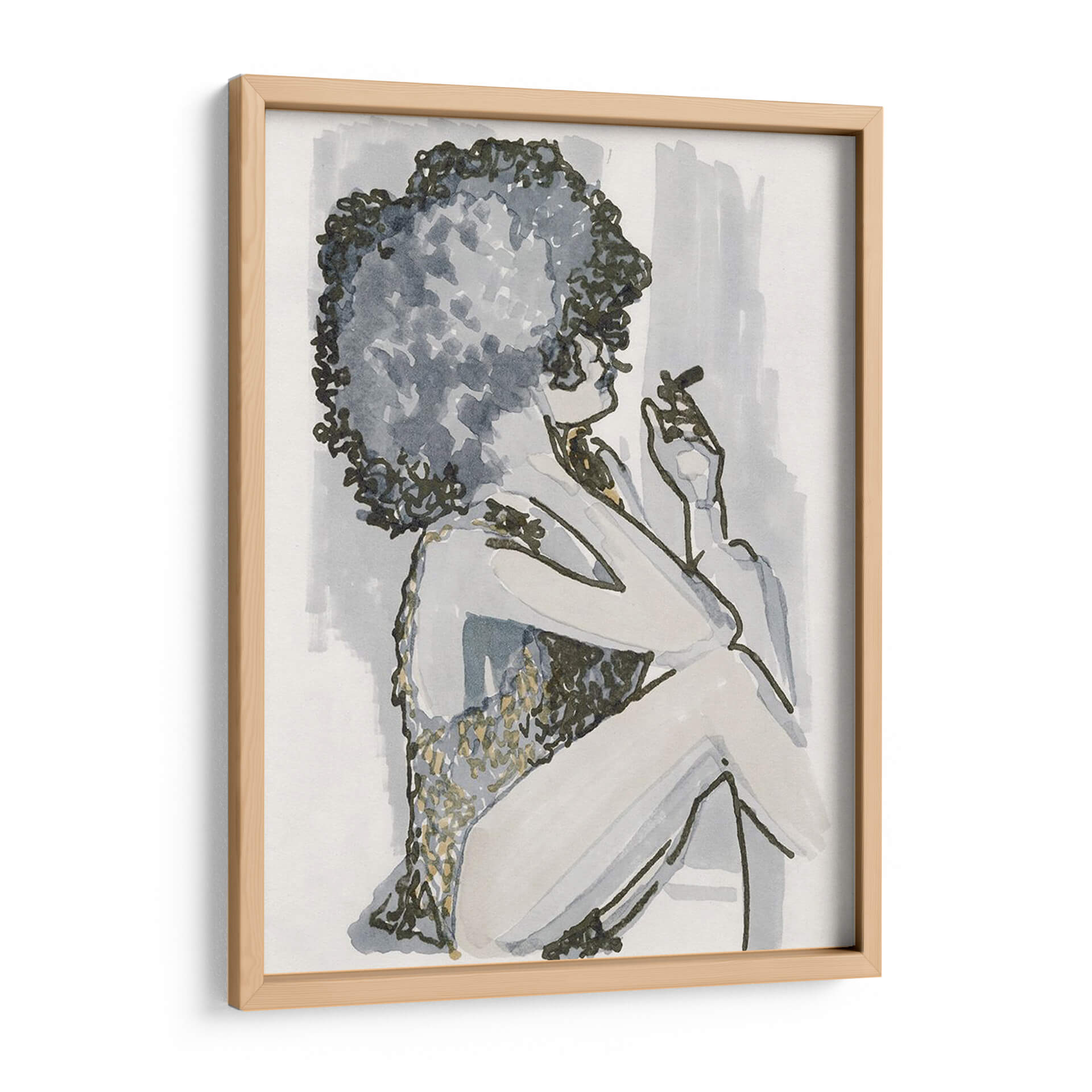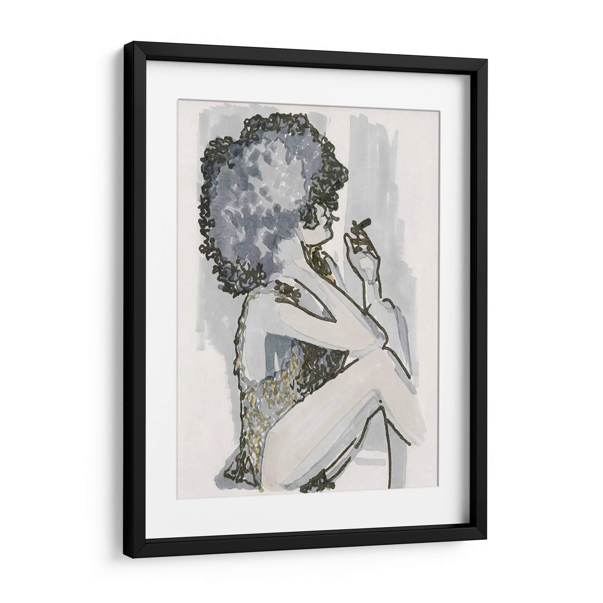 Sumérgete en la atmósfera cautivadora de "Hidaya I", una obra de arte contemporáneo que captura la esencia de la introspección y el estilo. Esta pieza, del artista A.C. Warren, presenta un dibujo a mano alzada de una figura femenina con un peinado voluminoso y rizado, sentada en una pose contemplativa mientras sostiene un cigarrillo. La paleta de colores se centra en tonos grises suaves, blancos y acentos sutiles de dorado y negro, creando una sensación de elegancia serena y un toque de misterio. La técnica de boceto con líneas fluidas y pinceladas de acuarela aporta una cualidad etérea y moderna a la composición. "Hidaya I" es ideal para añadir un punto focal sofisticado a un salón, un estudio o un dormitorio, evocando una sensación de calma reflexiva. Su diseño minimalista pero expresivo la convierte en una adición versátil a cualquier decoración, desde la más clásica hasta la vanguardista, invitando a la contemplación y al aprecio por el arte figurativo contemporáneo. Una pieza que dialoga con el espacio y estimula la imaginación, perfecta para quienes buscan arte con carácter y profundidad emocional.