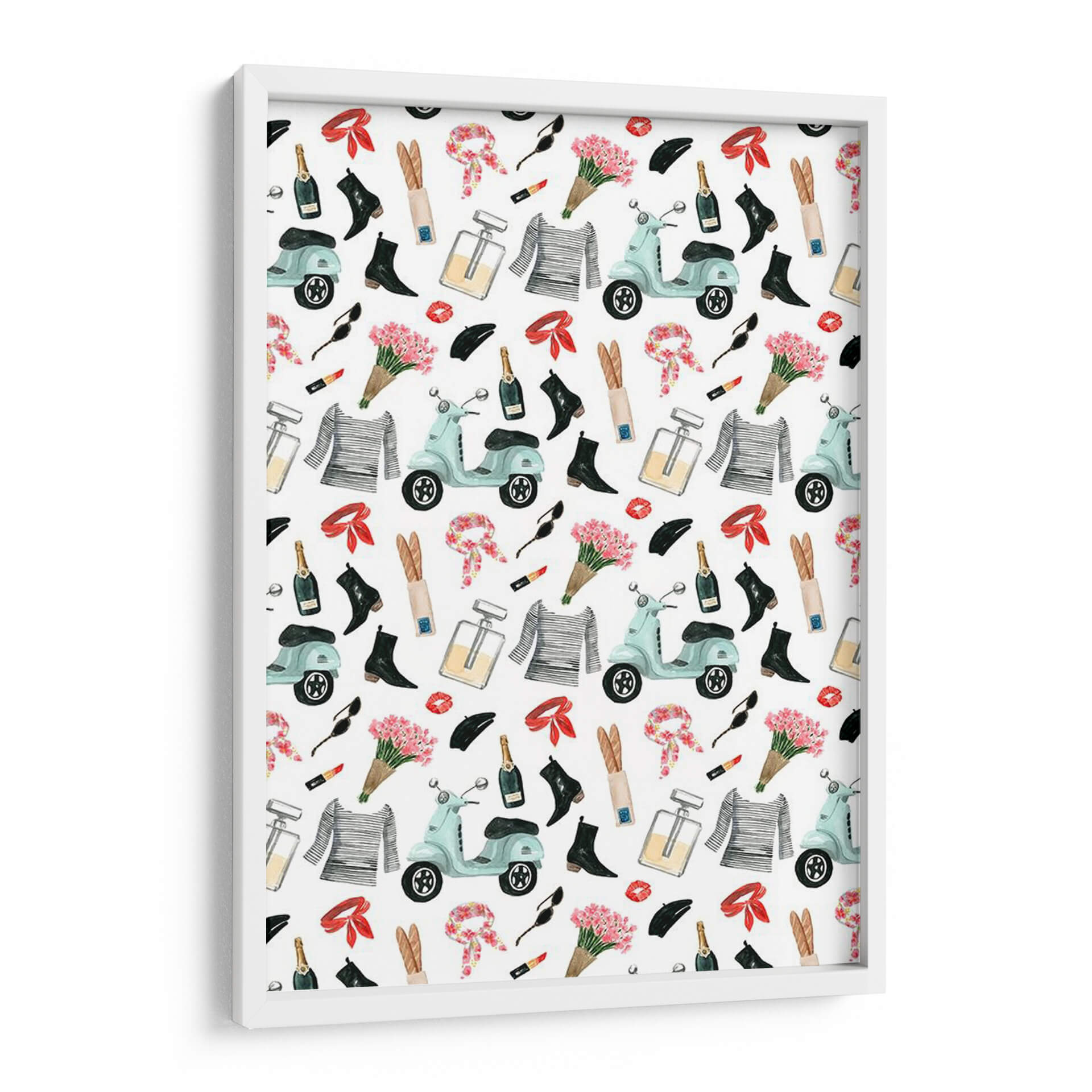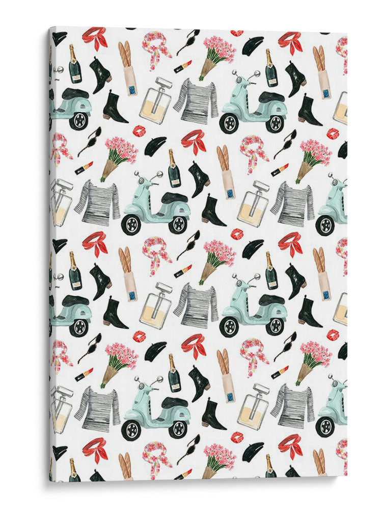 Sumérgete en el encanto parisino con "La Colección De Niña Francesa E" de Grace Popp, un cuadro decorativo que captura la esencia de un estilo de vida chic y vibrante. Esta obra de arte, con su vibrante patrón de acuarela, presenta una encantadora colección de iconos franceses: elegantes scooters mint, botellas de champán espumoso, bouquets de flores rosadas, clásicos berets negros, labios rojos seductores, tacones de aguja negros, pañuelos coloridos y el indispensable perfume francés. Cada elemento está representado con un toque lúdico y detallado, creando una composición alegre y dinámica sobre un fondo blanco nítido. La paleta de colores, que combina el suave menta de las scooters con los rojos intensos de los labios y los pañuelos, los tonos neutros de la ropa y los acentos dorados de las botellas de champán, evoca una sensación de sofisticación y diversión. Este cuadro decorativo es ideal para añadir un toque de personalidad y joie de vivre a cualquier espacio, ya sea una sala de estar moderna, un dormitorio acogedor o un espacio de oficina creativo. "La Colección De Niña Francesa E" no es solo una pieza de arte, sino una invitación a soñar con escapadas parisinas y un reflejo del estilo inconfundible de la mujer francesa. Transforma tu hogar en un rincón de elegancia con esta obra llena de carácter.