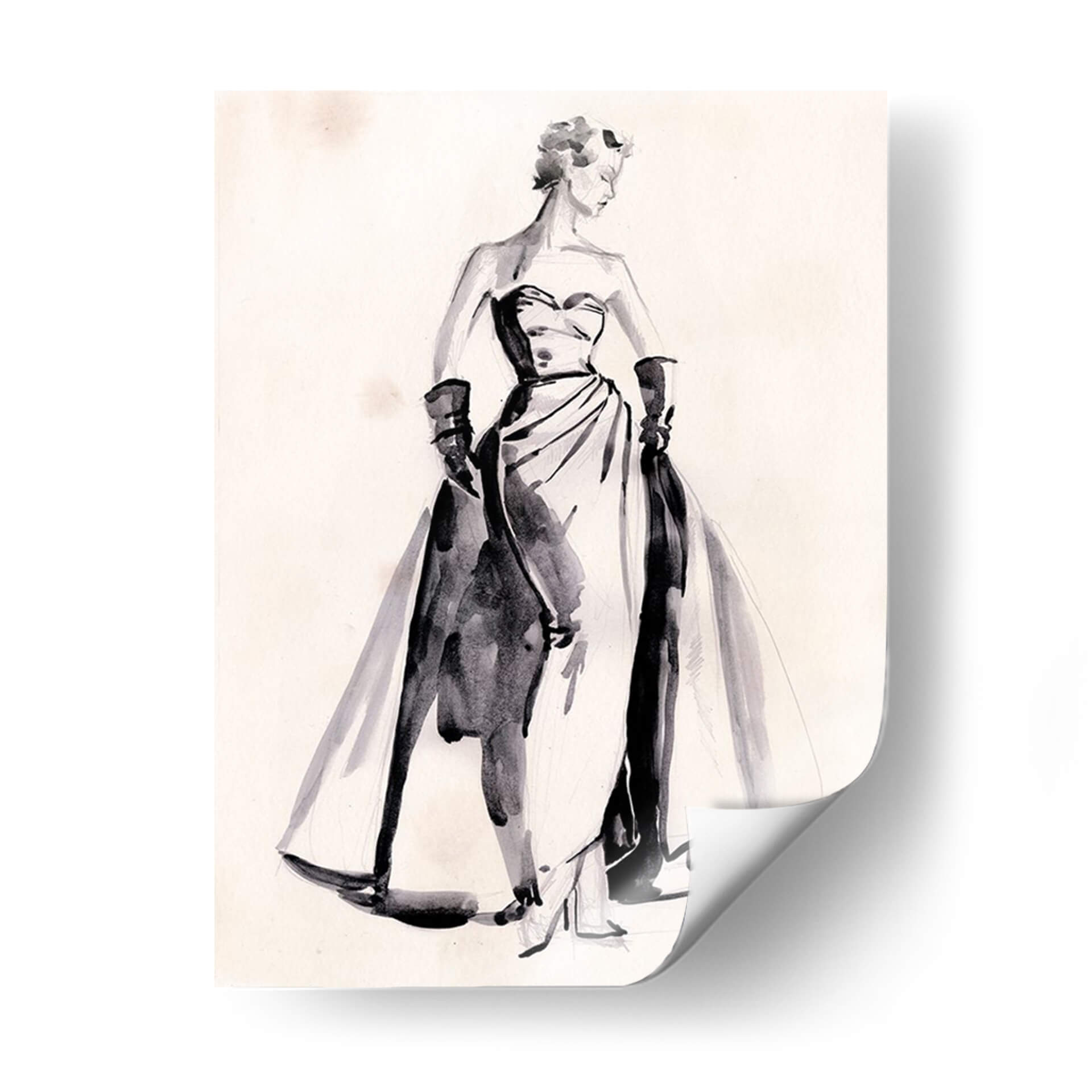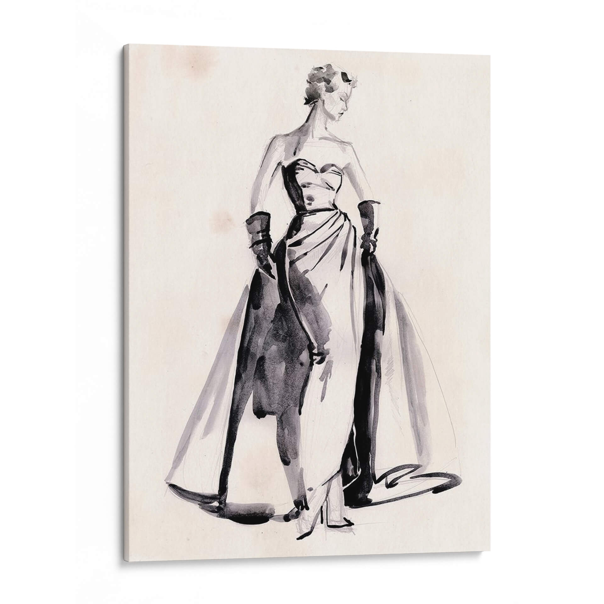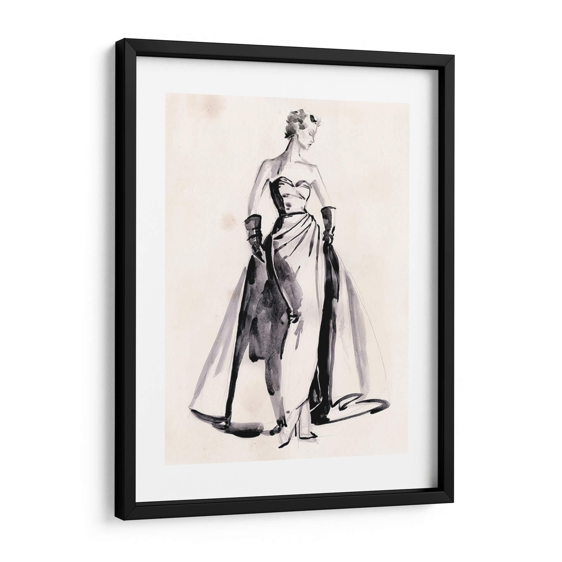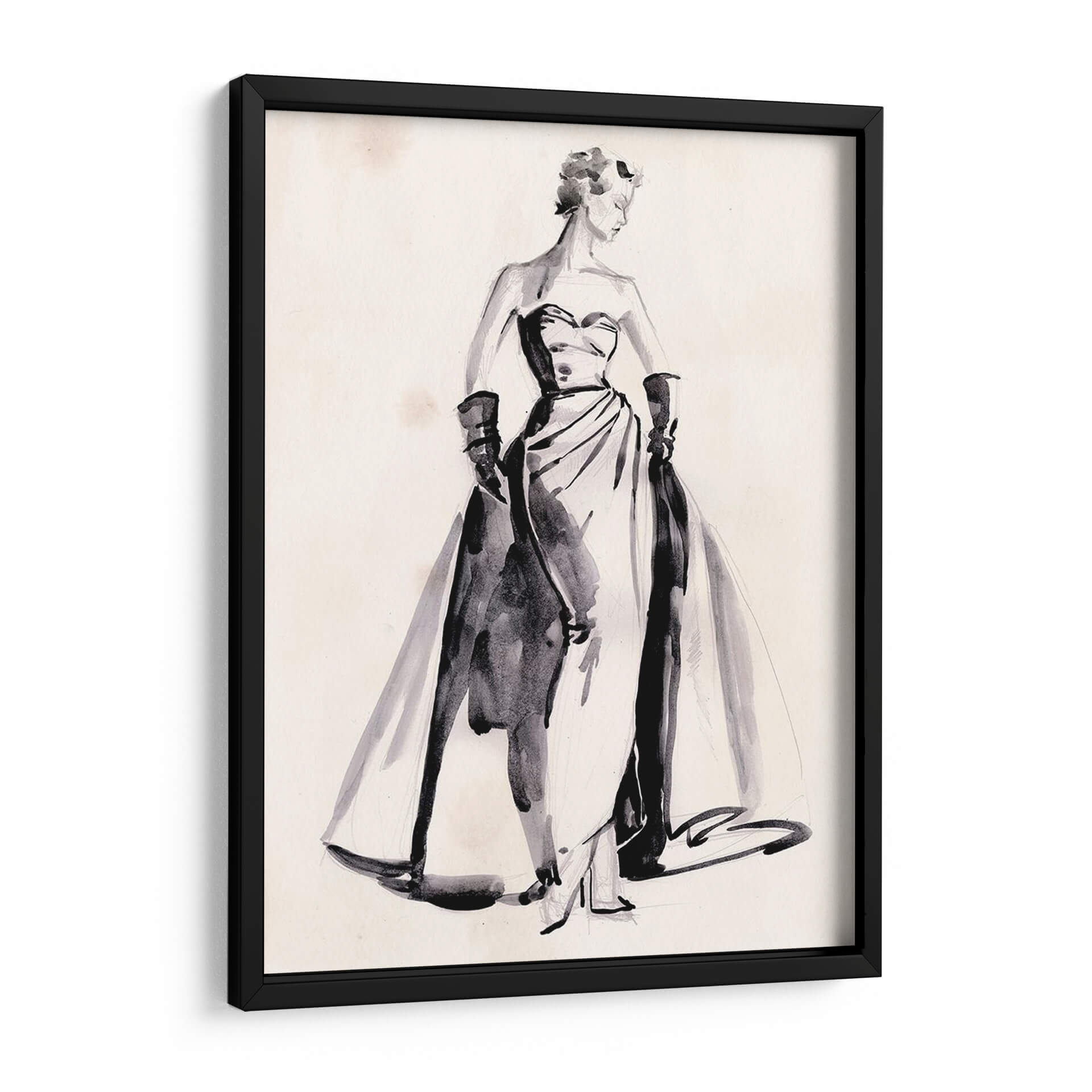 Sumérgete en la elegancia atemporal con "La Mirada Ganadora I", una obra de arte evocadora de Jennifer Paxton Parker. Este cuadro decorativo, plasmado con trazos sueltos y expresivos de tinta, captura la esencia de la alta costura y la sofisticación femenina. La figura central, una mujer con un vestido de gala y guantes largos, irradia confianza y estilo. La paleta de colores monocromática, dominada por negros profundos y grises sobre un fondo neutro y texturizado, crea un contraste impactante y una atmósfera de misterio chic. La composición, que se asemeja a un boceto de moda clásico, es dinámica y llena de movimiento, invitando al espectador a admirar la fluidez de las telas y la postura elegante del sujeto. Es una pieza que habla de poder, gracia y un toque de dramatismo, perfecta para añadir un aire de distinción a tu sala de estar, dormitorio o espacio de trabajo. Este cuadro decorativo es ideal para quienes aprecian el arte con influencia de la moda y buscan una decoración de pared que sea a la vez moderna y clásica, aportando un punto focal de interés visual y una narrativa sutil a cualquier ambiente. La técnica de acuarela y tinta utilizada le confiere una ligereza y un carácter único, convirtiéndola en una adición lujosa a tu colección de arte.