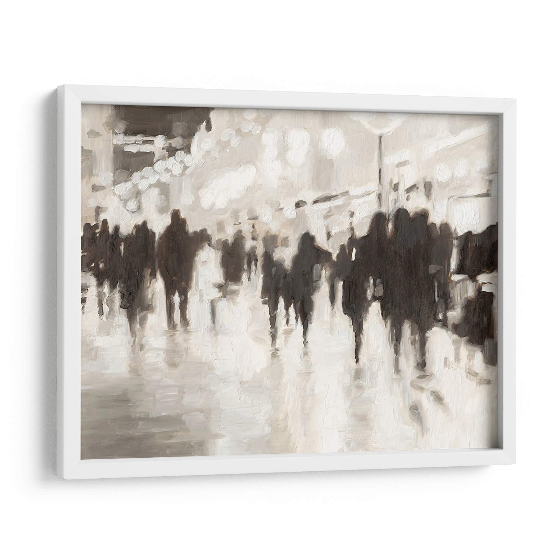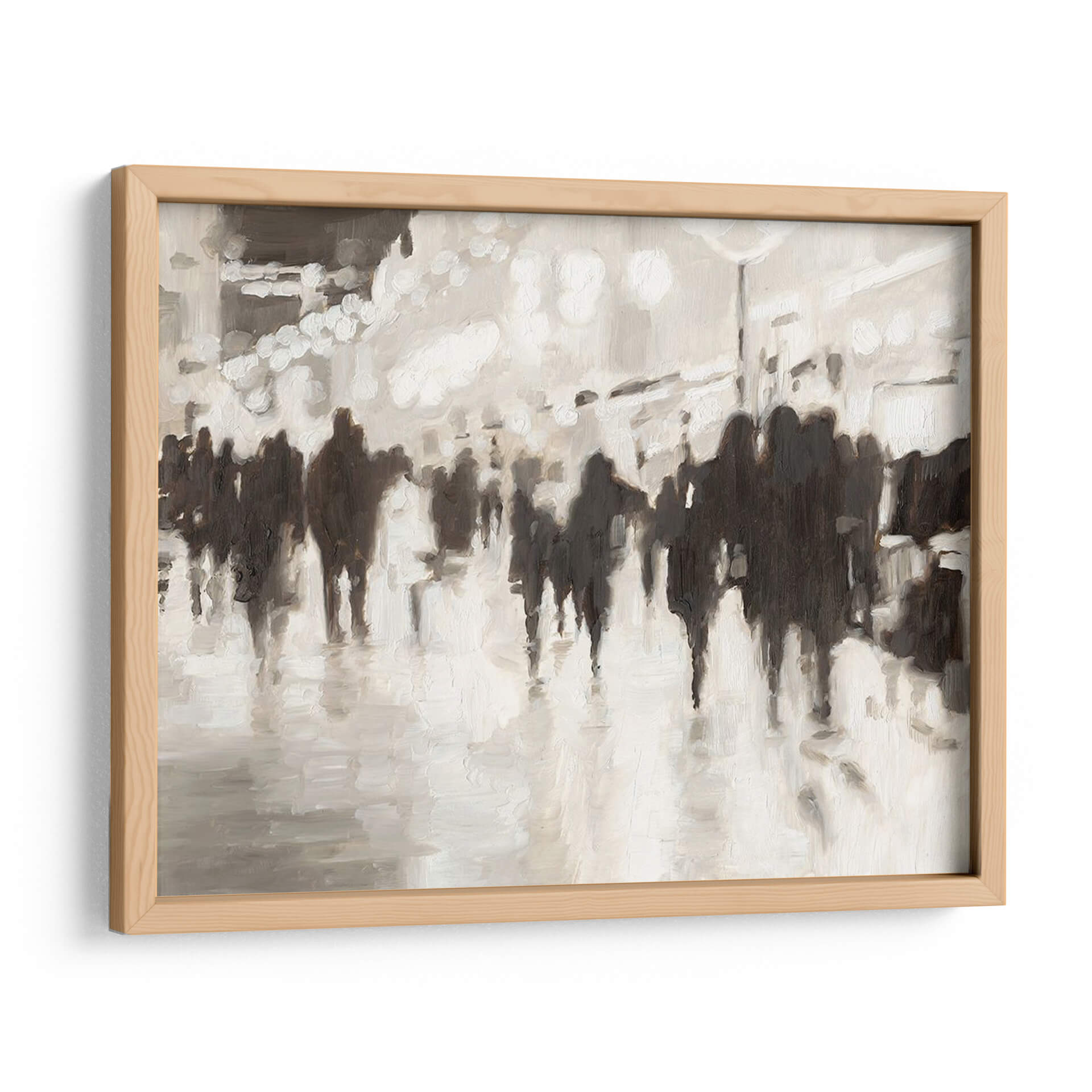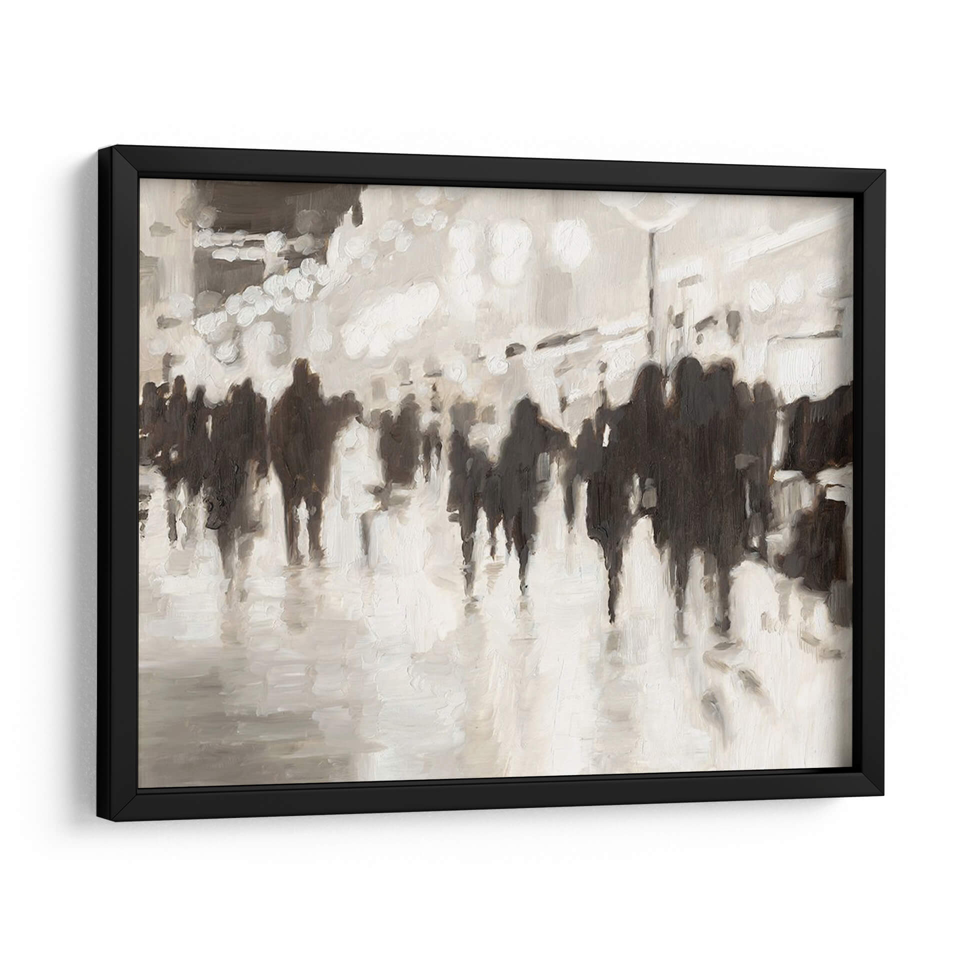 Sumérgete en la atmósfera vibrante y enigmática de "La Vida Nocturna" de Ethan Harper, una obra de arte contemporáneo que captura la esencia de la multitud urbana con un estilo impresionista y una paleta de colores sofisticada en tonos neutros. Las figuras silueteadas se mueven a través de un paisaje urbano sugerido, evocando la energía y el anonimato de la vida en la ciudad. Los juegos de luces y sombras, junto con las pinceladas sueltas, crean una sensación de movimiento y profundidad, invitando al espectador a perderse en la escena. Este cuadro decorativo es perfecto para añadir un toque de elegancia y misterio a cualquier espacio, ya sea una sala de estar moderna, un comedor acogedor o una oficina con carácter. Su diseño versátil en blanco y negro con matices grises se integra a la perfección con diversas decoraciones, aportando un punto focal artístico y una narrativa visual cautivadora. "La Vida Nocturna" no es solo una pieza decorativa, sino una invitación a reflexionar sobre la experiencia humana en el bullicio de la urbe, convirtiéndose en un diálogo silencioso entre el arte y tu hogar.