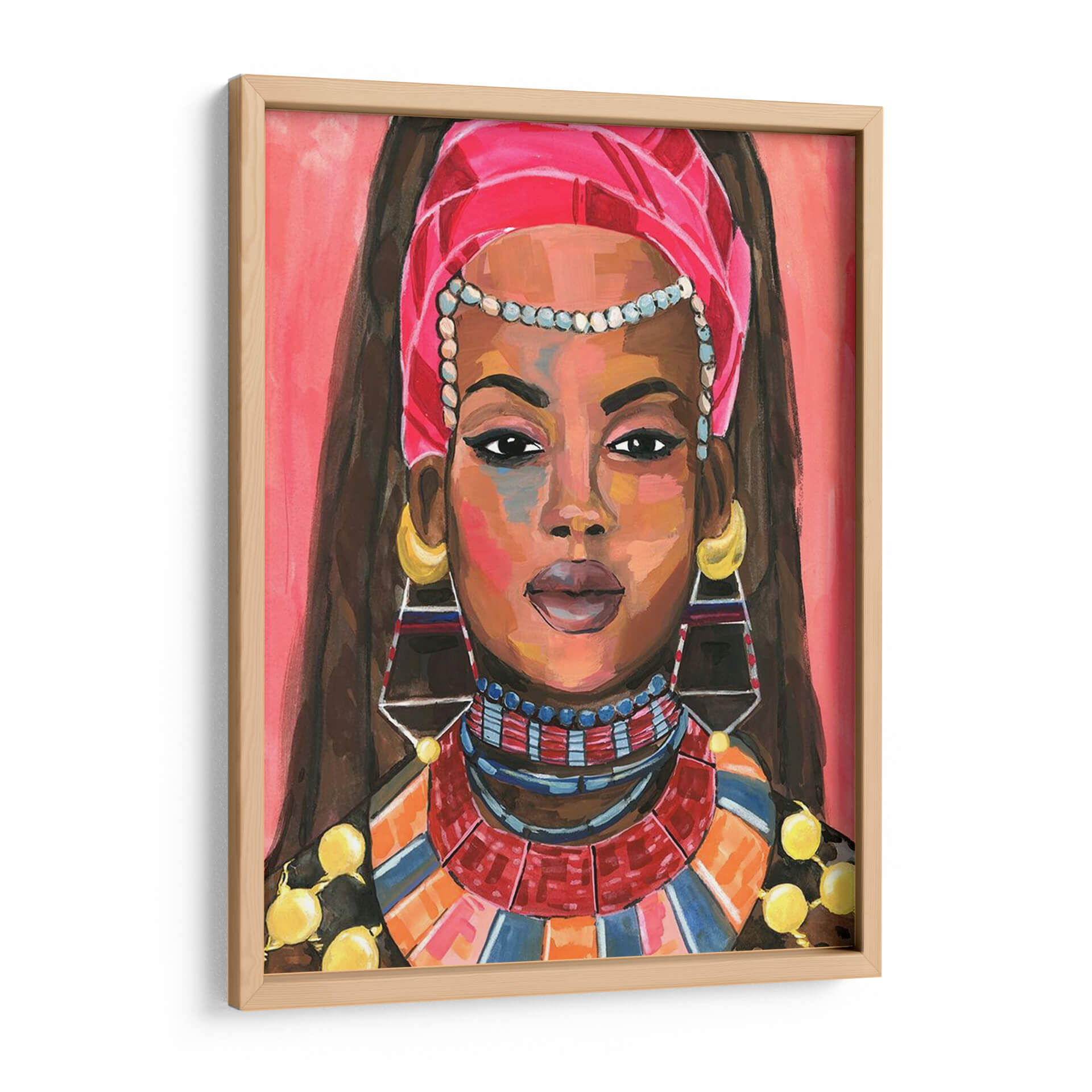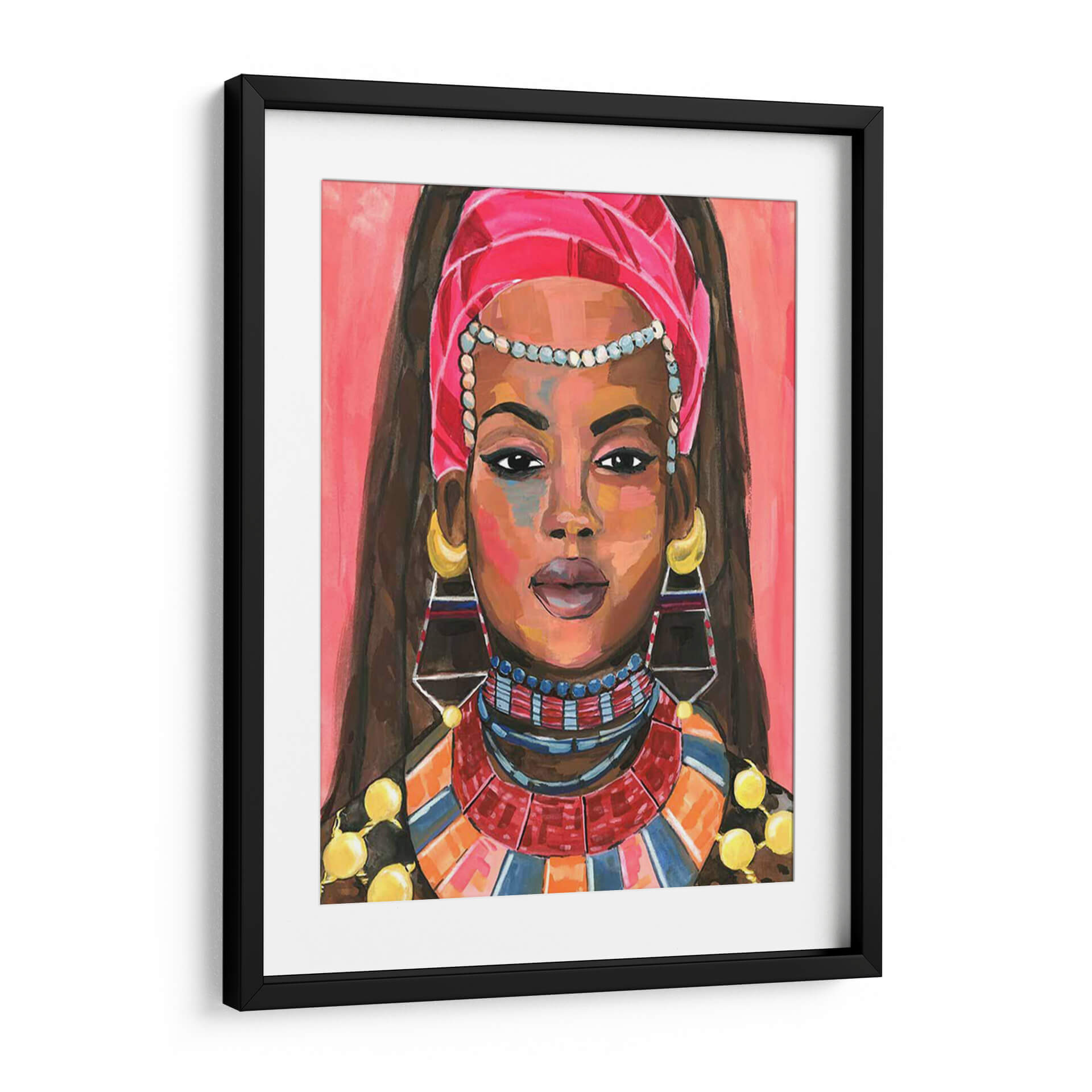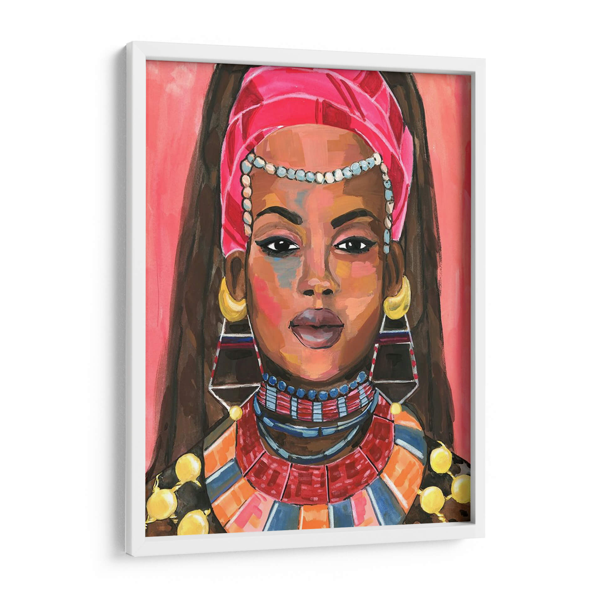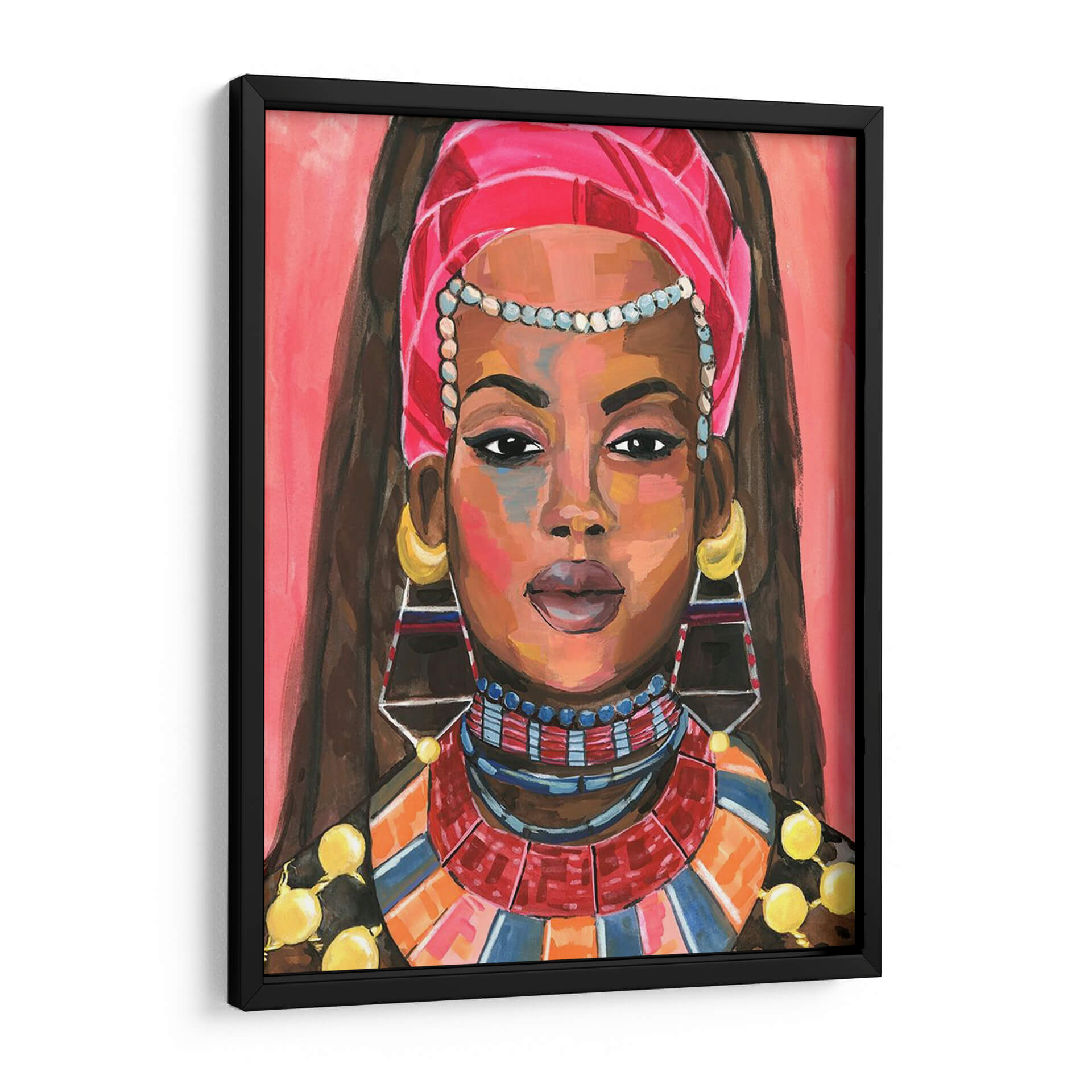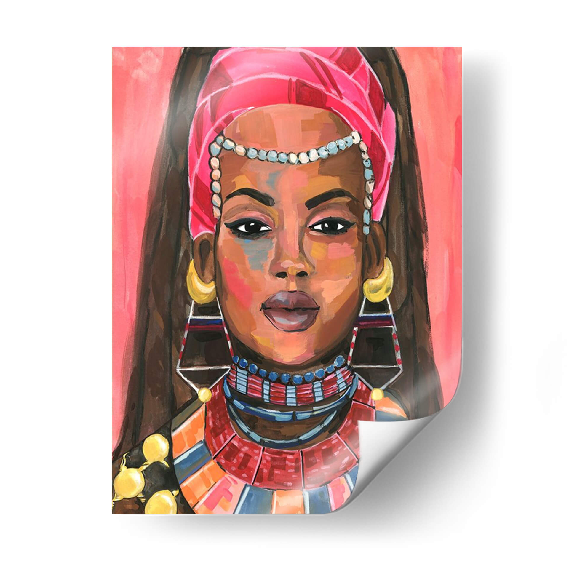 Sumérgete en la vibrante y cautivadora obra de arte "Ornamento Empress II" de Jacob Green. Este cuadro decorativo presenta un retrato expresivo de una mujer adornada con una riqueza de detalles culturales y joyería llamativa. Los colores cálidos y audaces, dominados por tonos rosados, naranjas y azules, crean una atmósfera enérgica y sofisticada, mientras que la técnica pictórica evoca un estilo contemporáneo y audaz. La mirada directa de la figura central invita a la reflexión y añade un toque de misterio, haciendo de esta pieza un punto focal ideal para cualquier espacio que busque personalidad y estilo. Ideal para salas de estar, comedores o estudios, este cuadro decorativo aportará un aire de elegancia exótica y poder femenino. Su composición, centrada en el rostro y los ornamentos, resalta la belleza y la fuerza de la figura, convirtiéndola en una elección perfecta para quienes aprecian el arte que cuenta historias y evoca emociones. "Ornamento Empress II" no es solo una pieza decorativa, sino una declaración de estilo y una celebración de la identidad.
