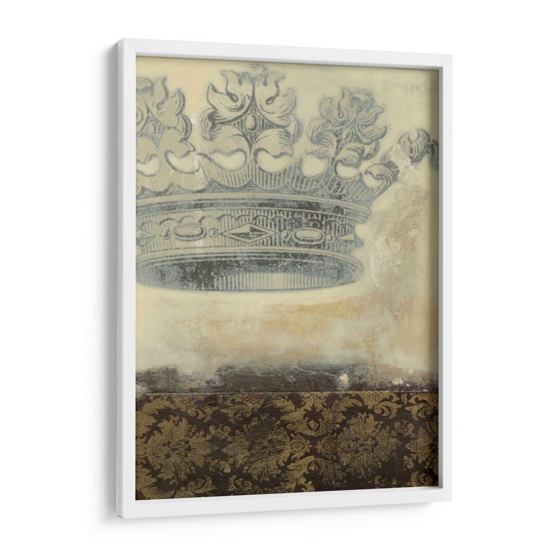 Sumérgete en la elegancia atemporal con "Regal Crown I", una obra de arte que captura la esencia de la realeza y el diseño clásico. Este cuadro decorativo presenta una detallada representación de una corona, con trazos delicados en tonos azulados y grises sobre un fondo texturizado en tonos crema y ocre. La parte inferior de la obra se adorna con un patrón ornamental en tonos dorados y marrones oscuros, evocando un sentido de lujo y tradición. La composición, con la corona ocupando el centro superior y el patrón decorativo anclando la base, crea un equilibrio visual sofisticado. La atmósfera que irradia es de serenidad y distinción, perfecta para infundir un toque de carácter y refinamiento en cualquier espacio. Ideal para salones, estudios u oficinas que buscan un punto focal con historia y estilo, "Regal Crown I" es una pieza que habla de poder, historia y buen gusto. Añade esta obra maestra a tu colección y transforma tu hogar en una galería personal.