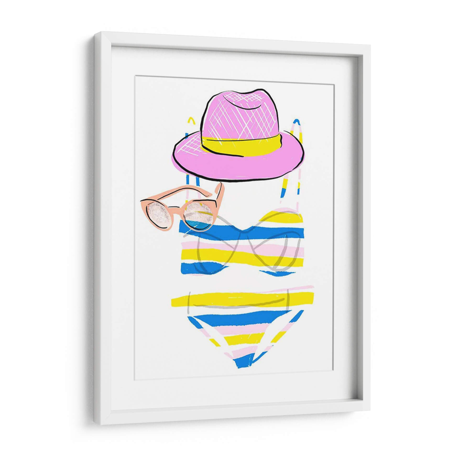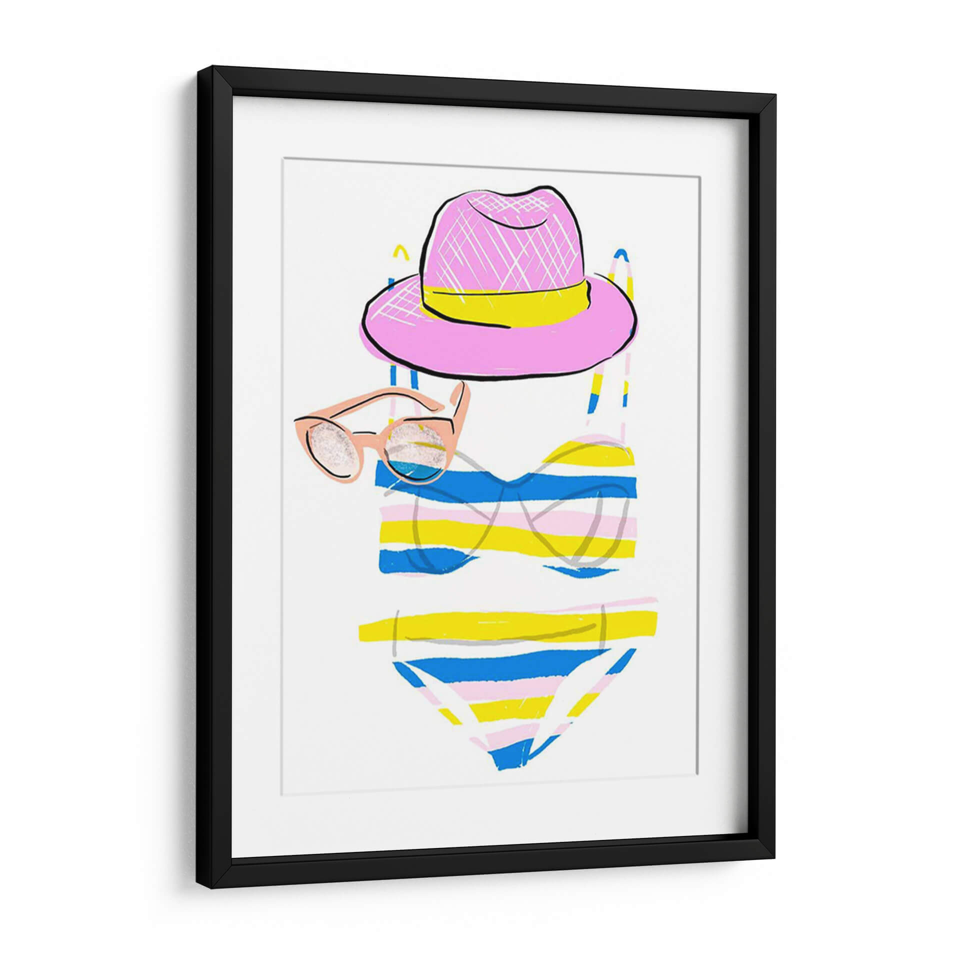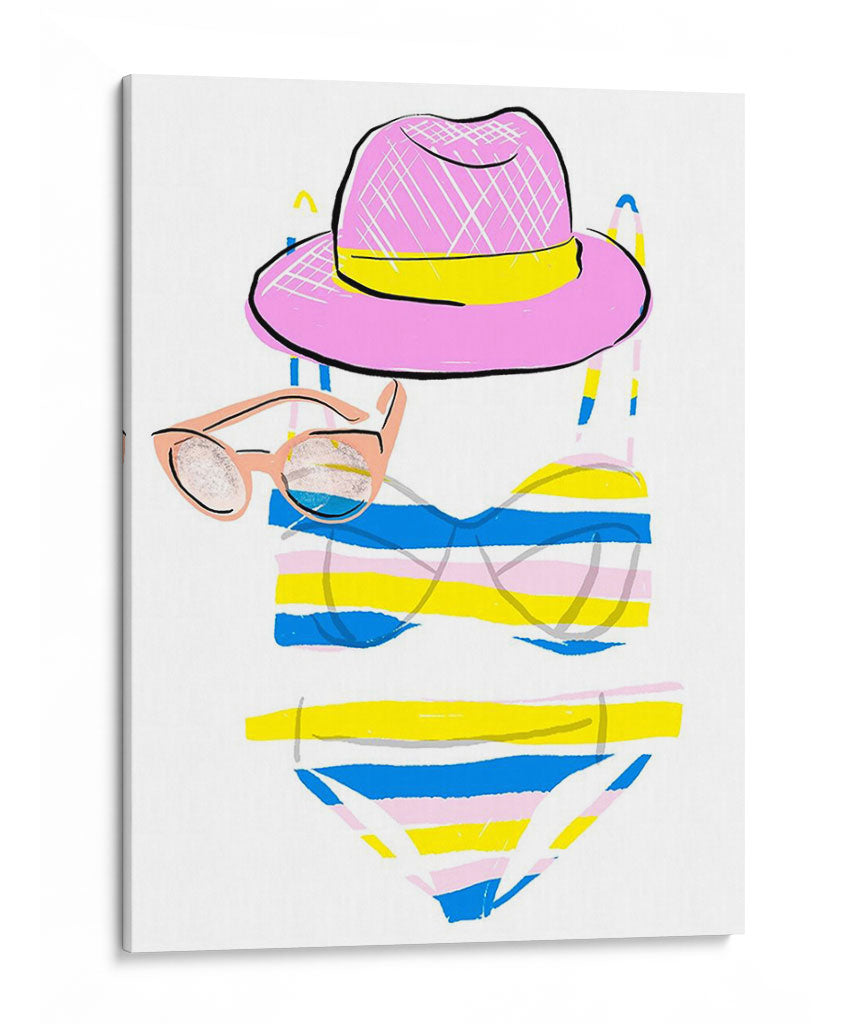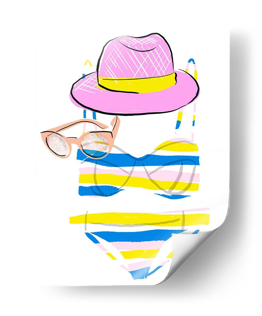 Captura la esencia del verano con "Reme el Sol IV", una vibrante obra de arte de Stephen Switzer que evoca la alegría y la despreocupación de los días soleados. Esta pieza presenta un estilo gráfico audaz y moderno, con un bikini a rayas en tonos azules, amarillos y rosados, coronado por un sombrero rosa a juego y unas gafas de sol chic. La composición minimalista, con trazos sugerentes y una paleta de colores alegre, crea una atmósfera de diversión y relajación. "Reme el Sol IV" es perfecto para añadir un toque de color y personalidad a cualquier espacio, ya sea una sala de estar, un dormitorio, una oficina o incluso un baño con temática playera. Ideal para quienes buscan una decoración que celebre la vida, la moda y las vacaciones. Este cuadro decorativo es una invitación a soñar con días de playa y brisa marina, aportando una energía positiva y un estilo inconfundible a tu hogar. La simplicidad de sus formas y la audacia de sus colores lo convierten en un punto focal cautivador que resonará con amantes del arte contemporáneo y la estética veraniega.