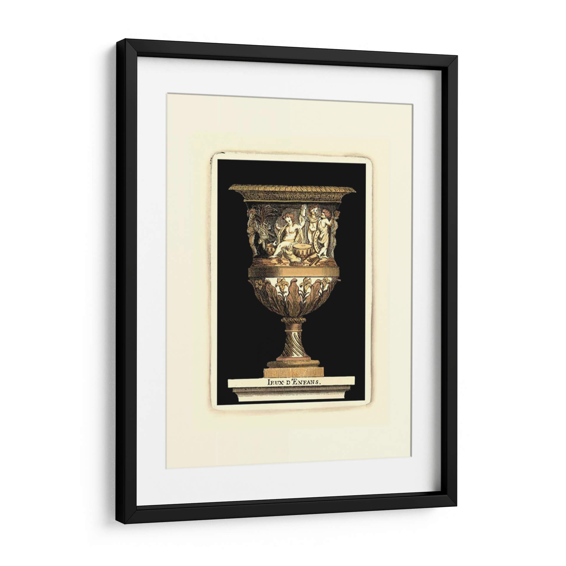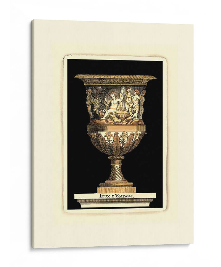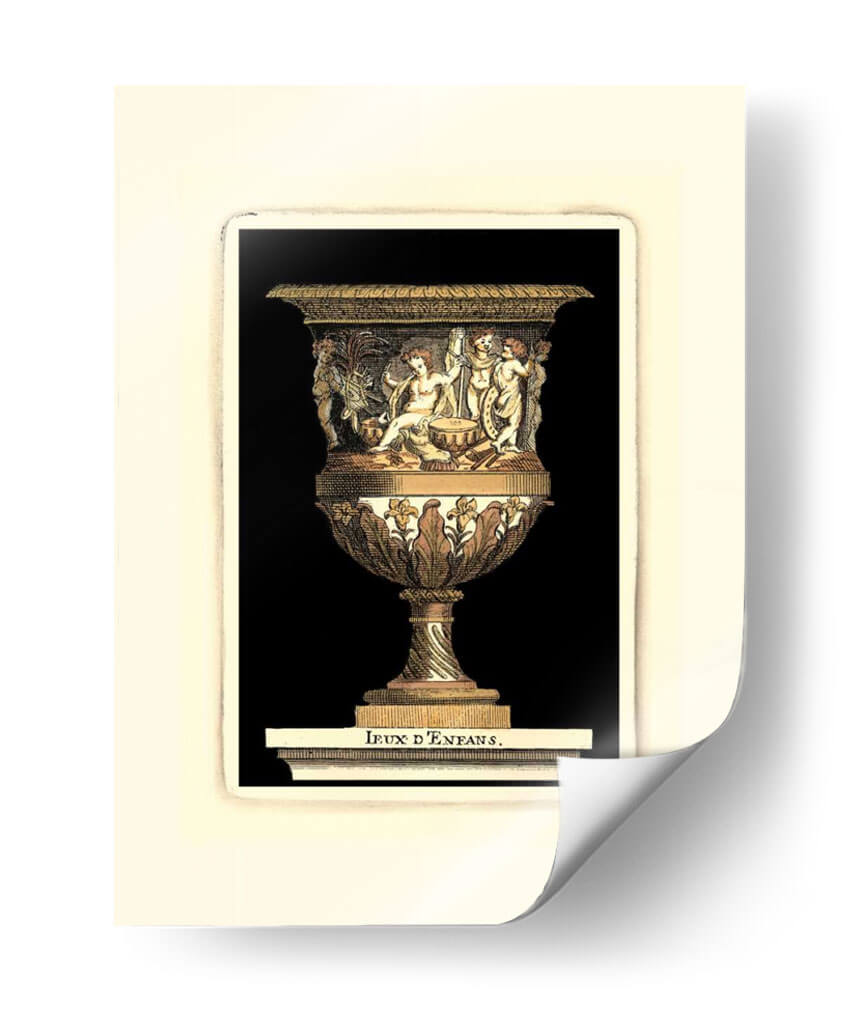 Sumérgete en la opulencia y el detalle de "Renacimiento Vase II", una obra de arte que evoca la grandeza de épocas pasadas con un toque contemporáneo. Este cuadro decorativo presenta un jarrón ricamente ornamentado, adornado con figuras alegóricas y motivos florales intrincados que capturan la mirada. La paleta de colores, dominada por tonos dorados, ocres y marrones, combinada con sutiles acentos verdes y blancos, crea una atmósfera de sofisticación y calidez. La composición, centrada en la majestuosidad del jarrón, se ve realzada por un fondo negro profundo que permite que cada detalle resalte, creando un contraste dramático y elegante. Inspirada en el arte clásico y renacentista, esta pieza es perfecta para añadir un punto focal de elegancia atemporal a cualquier estancia, ya sea en un comedor formal, un estudio o una sala de estar que busque distinción. "Renacimiento Vase II" no es solo una decoración, es una invitación a apreciar la belleza de la artesanía y la historia en tu hogar, transformando cualquier espacio en una galería personal de buen gusto. Ideal para quienes buscan arte decorativo que combine la riqueza visual con una narrativa evocadora.