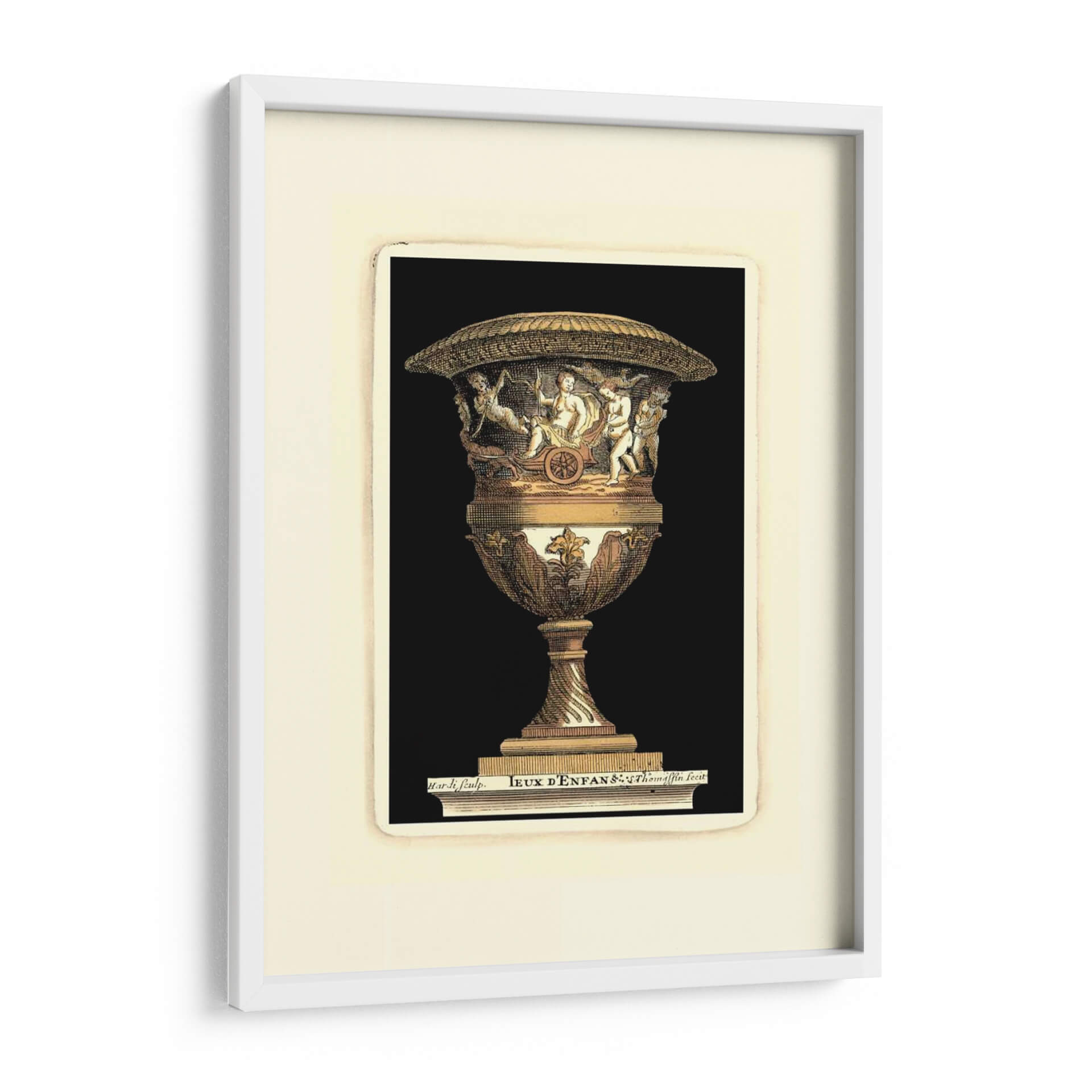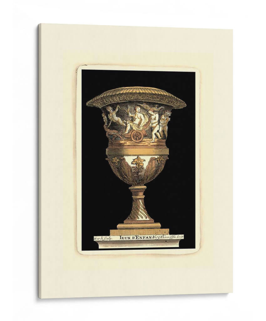 Adéntrate en la magnificencia del "Renaissance Vase III" de Vision Studio, una obra de arte decorativa que evoca la opulencia y el detalle del Renacimiento. Este cuadro presenta un jarrón ornamentado, ricamente adornado con figuras mitológicas y motivos clásicos, todo ello enmarcado por una paleta de colores cálidos, dorados y terrosos que irradian elegancia y sofisticación. La composición detallada, con sus intrincados relieves y patrones, crea un punto focal cautivador que transporta al espectador a una era de arte y arquitectura esplendorosas. La atmósfera que emana es de grandeza y refinamiento, perfecta para añadir un toque de historia y arte clásico a tu salón, estudio o comedor. Ideal para quienes aprecian el arte detallado y las piezas que cuentan una historia, este cuadro es una elección excepcional para espacios que buscan una declaración de estilo atemporal y buen gusto, convirtiéndose en un elemento decorativo que inspira admiración y conversación.