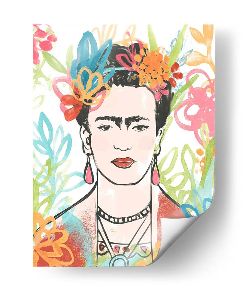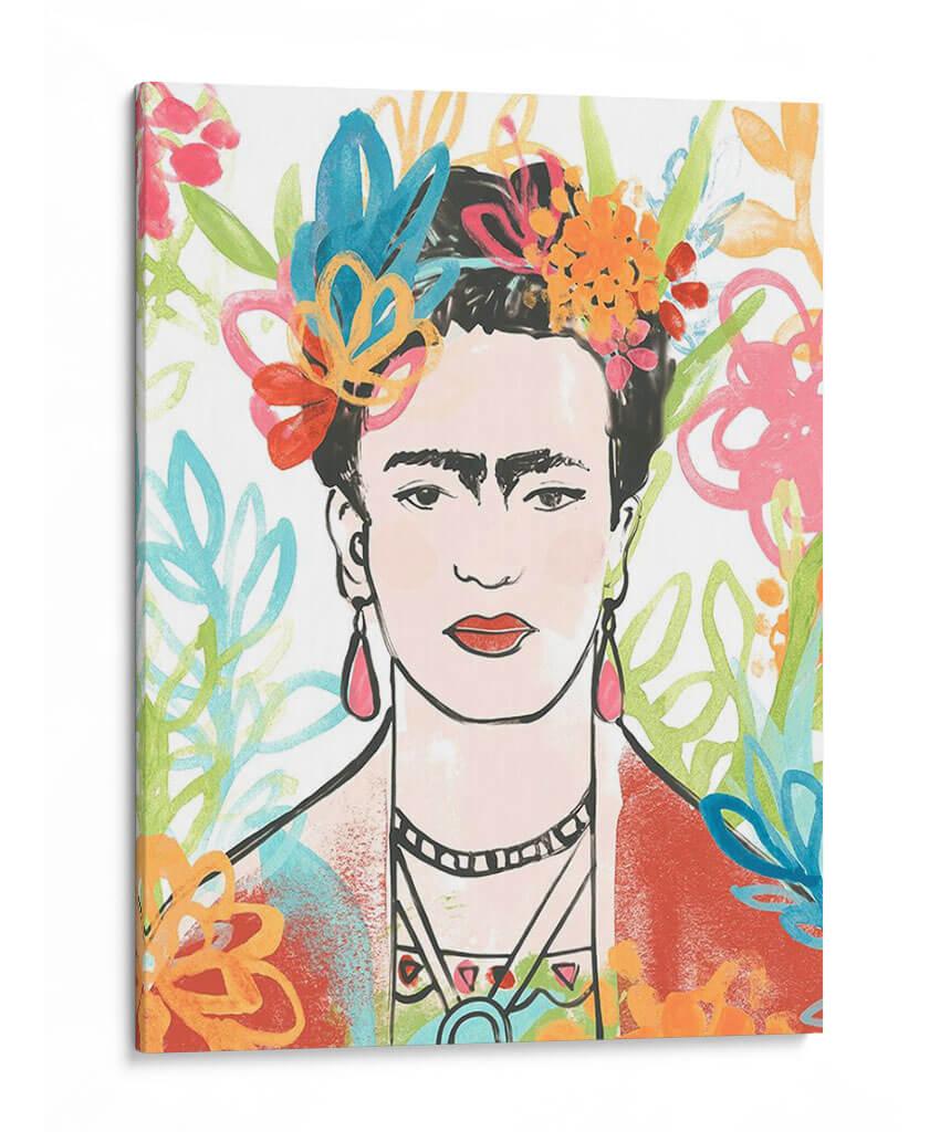 Este cautivador cuadro decorativo 'Retrato de Frida II' de June Erica Vess es una vibrante celebración de la icónica artista mexicana. La obra presenta un primer plano de Frida Kahlo, con su distintiva ceja y mirada penetrante, enmarcada por un estallido de flores y follaje de acuarela en tonos brillantes y alegres. La paleta de colores, que abarca desde el naranja y el rosa hasta el azul y el verde, crea una atmósfera enérgica y festiva. El estilo, una mezcla audaz de ilustración y trazos expresivos, le otorga una personalidad única y contemporánea. Este cuadro es perfecto para añadir un toque de color y carácter a cualquier espacio, desde una sala de estar moderna hasta un estudio o una oficina. Su diseño evoca fuerza, creatividad y un espíritu libre, ideal para aquellos que buscan inspiración en su decoración. Imagina cómo este retrato de Frida puede convertirse en el punto focal de tu pared, iniciando conversaciones y añadiendo una dosis de arte inspirador a tu día a día. Es una pieza que no solo decora, sino que también cuenta una historia de resiliencia y pasión.