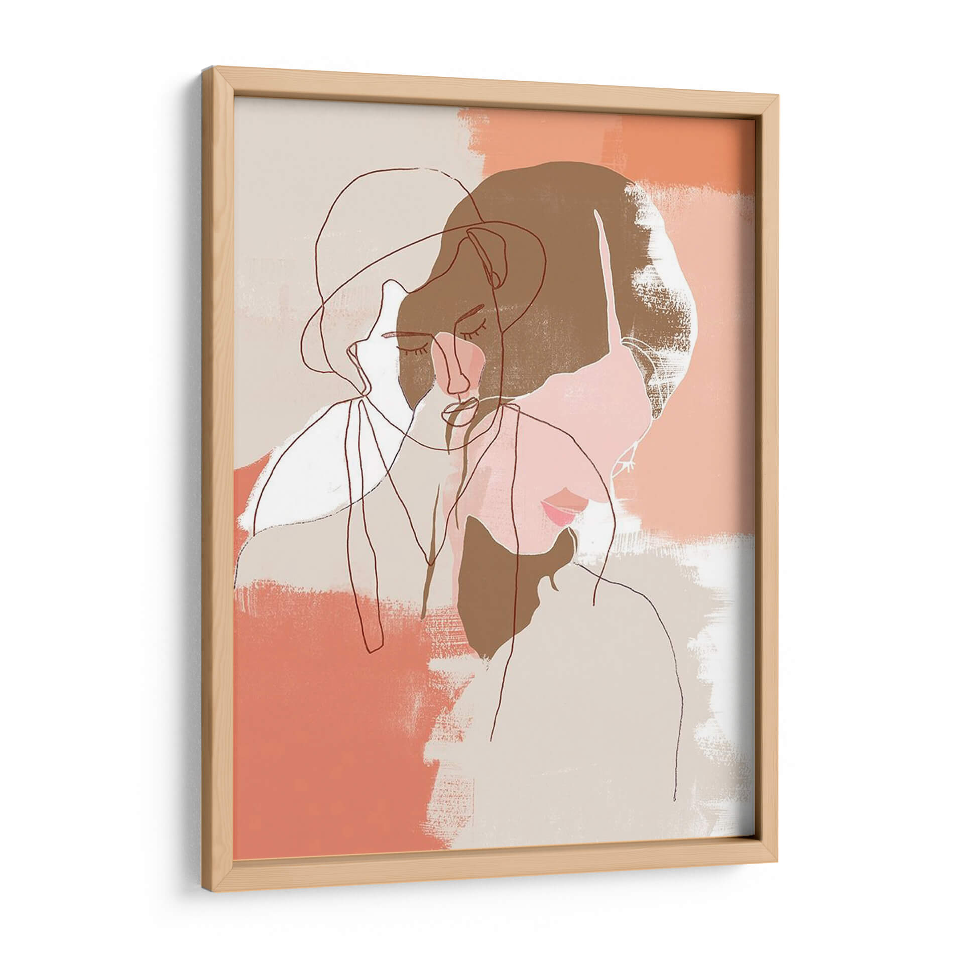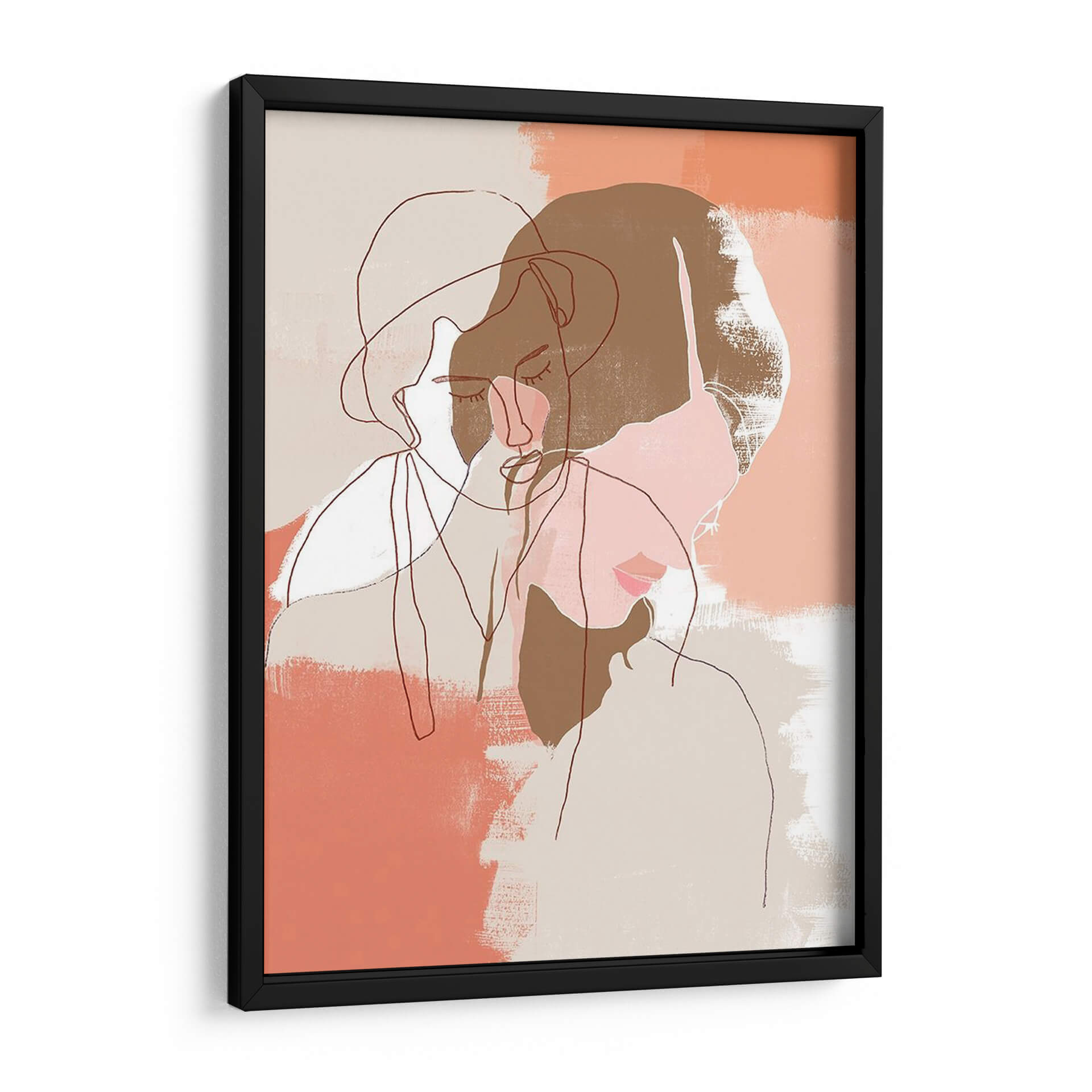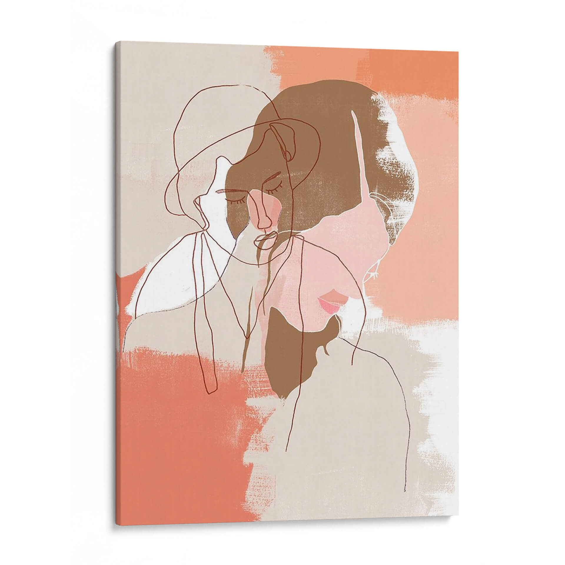 Sumérgete en la serenidad y la introspección con "Retratos Pintados De Contorno I", una obra de arte contemporáneo que redefine la elegancia minimalista. Esta pieza, creada por la artista June Erica Vess, presenta una delicada línea que traza perfiles humanos con una sensibilidad exquisita. La paleta de colores suaves, dominada por tonos tierra, beige y toques de coral y rosa pálido, evoca una atmósfera de calma y reflexión. Los trazos sueltos y las pinceladas texturizadas añaden profundidad y un toque orgánico, invitando al espectador a una contemplación silenciosa. Las figuras se entrelazan sutilmente, sugiriendo conexión y dualidad, mientras que los ojos cerrados transmiten una sensación de paz interior o ensueño. "Retratos Pintados De Contorno I" es más que un simple cuadro decorativo; es una invitación a la pausa y a la apreciación de la belleza sutil. Ideal para cualquier espacio que busque un acento de sofisticación discreta, como un dormitorio tranquilo, un estudio personal o una sala de estar moderna. Este cuadro decorativo contemporáneo transformará tu pared en un lienzo de expresión artística, aportando un aire de serenidad y estilo único a tu hogar u oficina.