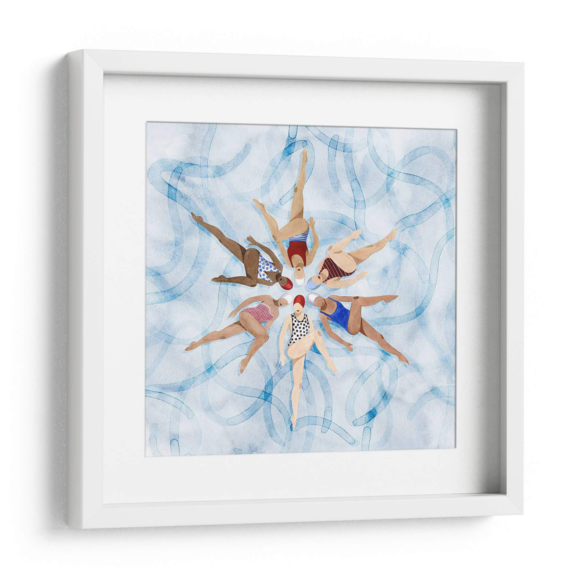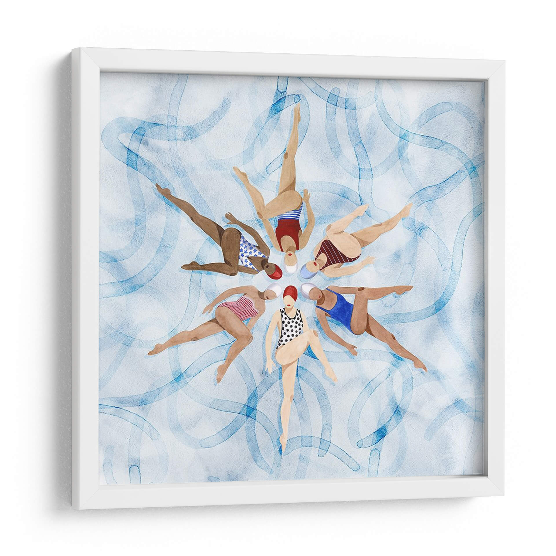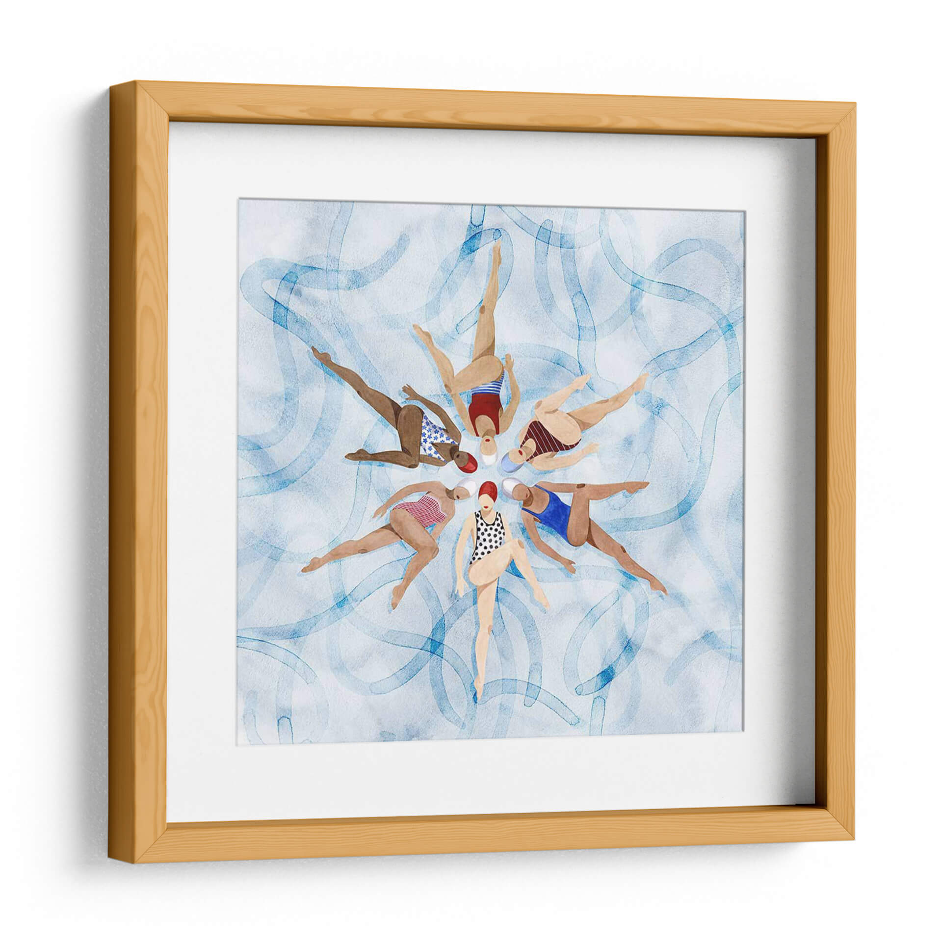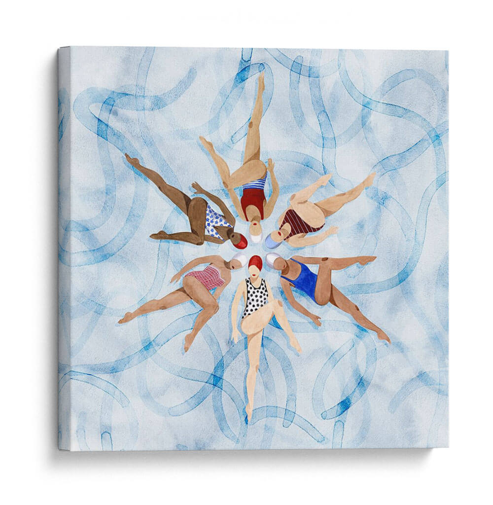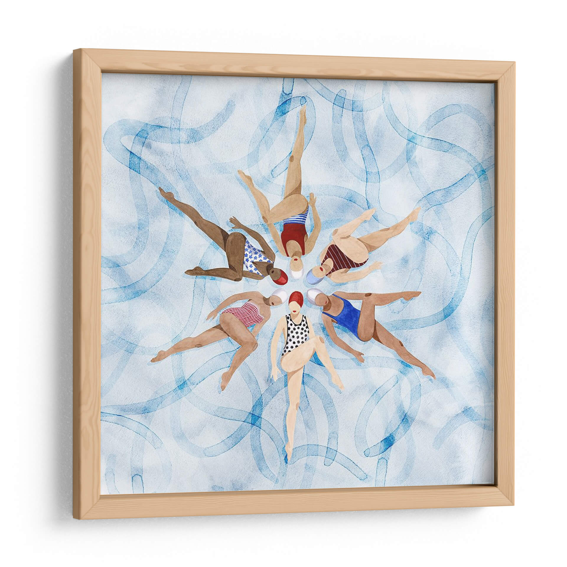 Sumérgete en la serenidad y la conexión con "Trabajando Juntos Yo", una obra de arte cautivadora de Grace Popp. Esta pieza evoca una atmósfera de calma y camaradería, presentando a un grupo de mujeres en trajes de baño, dispuestas en una formación circular armoniosa sobre un fondo acuático abstracto con sutiles pinceladas azules. La paleta de colores, dominada por tonos suaves y acuáticos, crea un ambiente de paz y relajación, ideal para cualquier espacio que busque un toque de tranquilidad. El estilo distintivo de Popp, con sus figuras estilizadas y el uso expresivo del color, aporta una sensibilidad contemporánea a la composición. Este cuadro decorativo es perfecto para infundir serenidad en dormitorios, estudios o salas de estar, invitando a la contemplación y al descanso. La interacción sutil entre las figuras y el entorno acuático sugiere una narrativa de unidad y apoyo mutuo, lo que lo convierte en una adición significativa y estéticamente agradable a tu hogar u oficina. Descubre la belleza del arte inspirador y transforma tu espacio con esta pieza única.