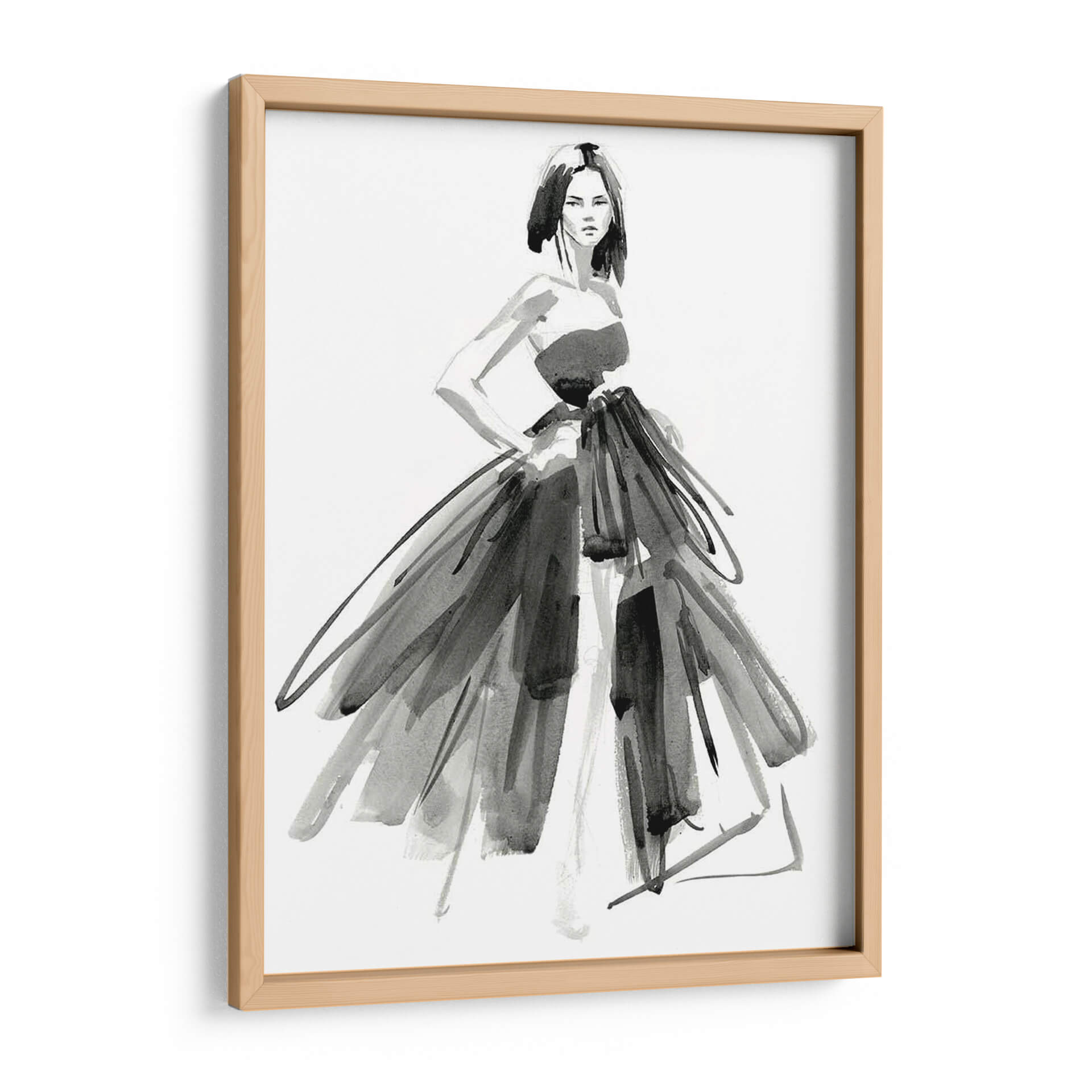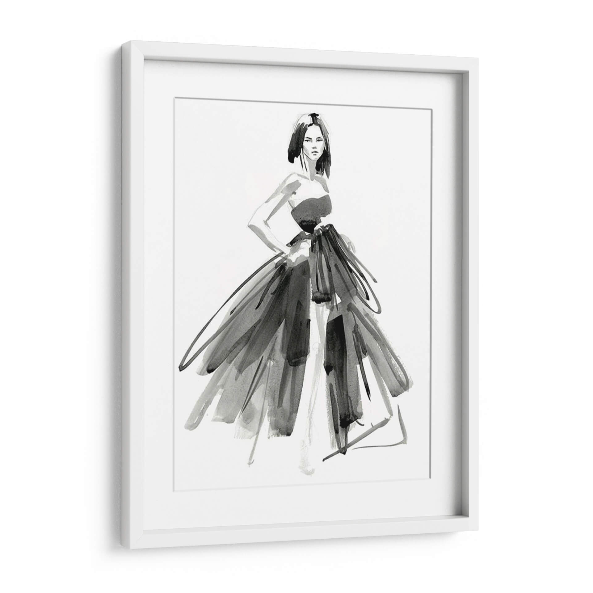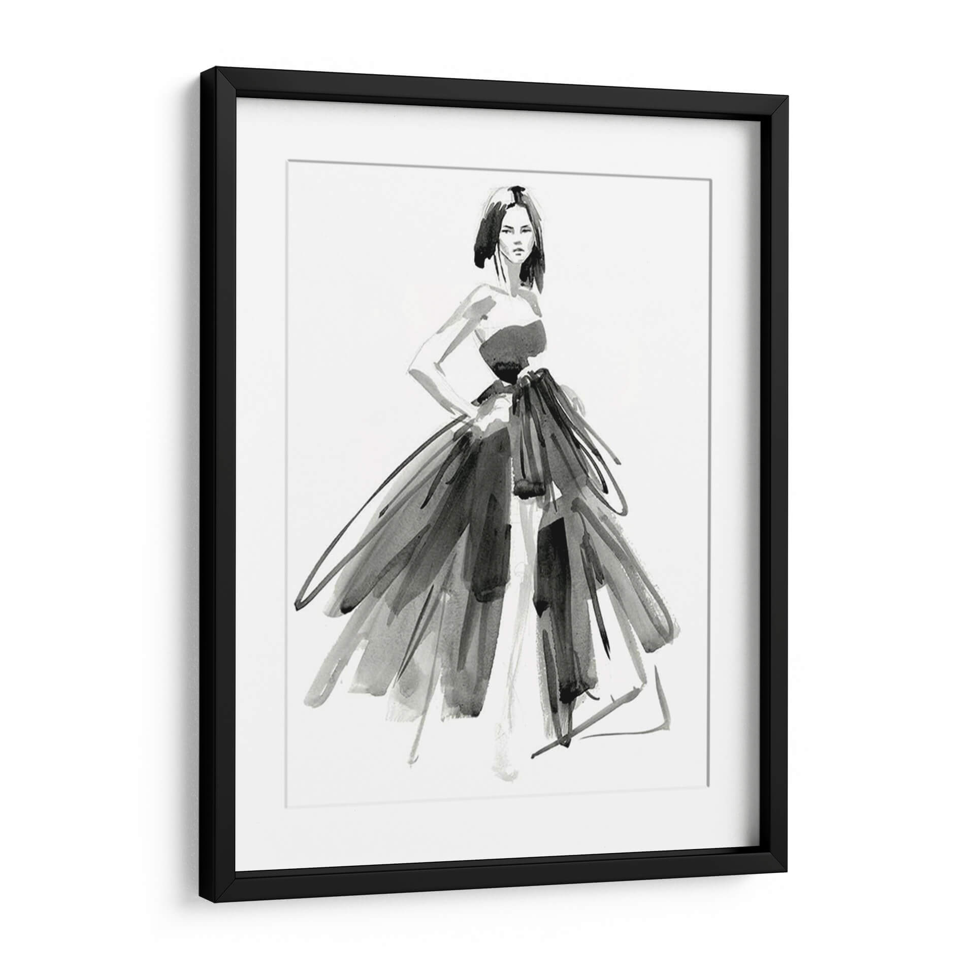 Sumérgete en la elegancia y el misterio de "Vestido De Noche Gestal I", una obra maestra del arte contemporáneo de Jennifer Paxton Parker. Esta pieza evoca la sofisticación de la alta costura a través de trazos audaces y una paleta monocromática que resalta la forma y la textura. La figura central, una mujer con una pose segura, viste un espectacular vestido que parece danzar con cada pincelada, fusionando la delicadeza de la acuarela con la fuerza expresiva del grafito. La composición, centrada en la silueta femenina y el volumen del vestido, crea un punto focal cautivador que invita a la contemplación. Ideal para espacios que buscan un toque de drama y refinamiento, como salones modernos, vestidores o estudios de moda. Este cuadro decorativo es perfecto para quienes aprecian el arte de la moda y desean incorporar una pieza de declaración en su decoración. Su estilo abstracto y gestual permite una interpretación personal, añadiendo profundidad y carácter a cualquier ambiente.