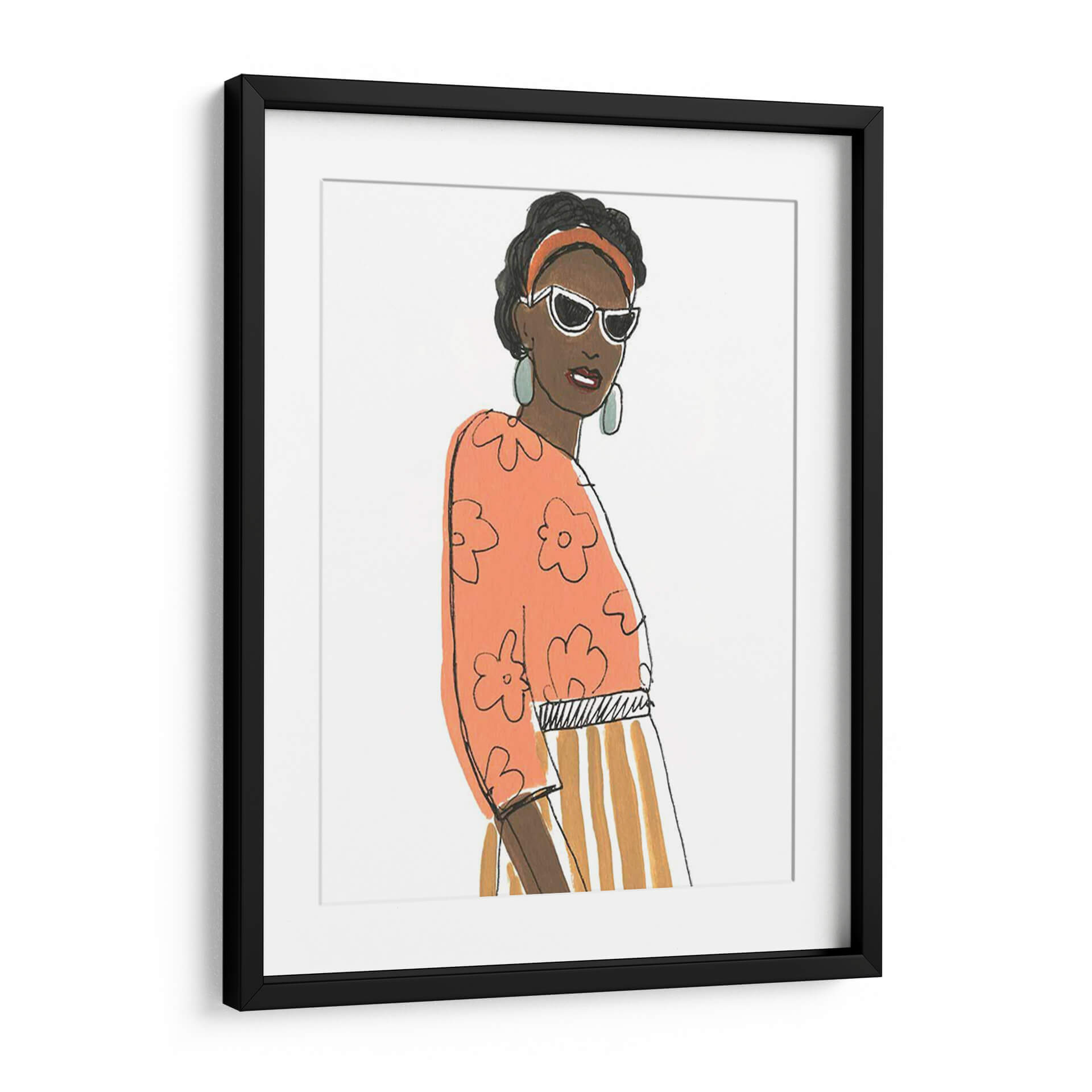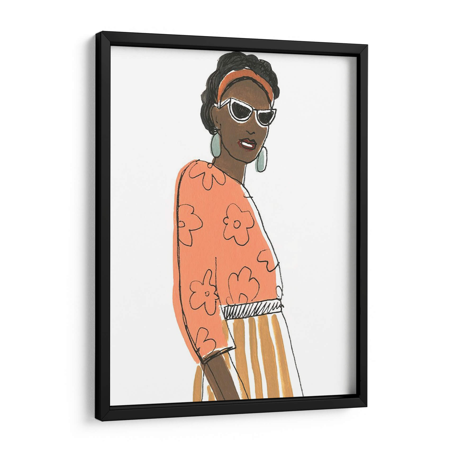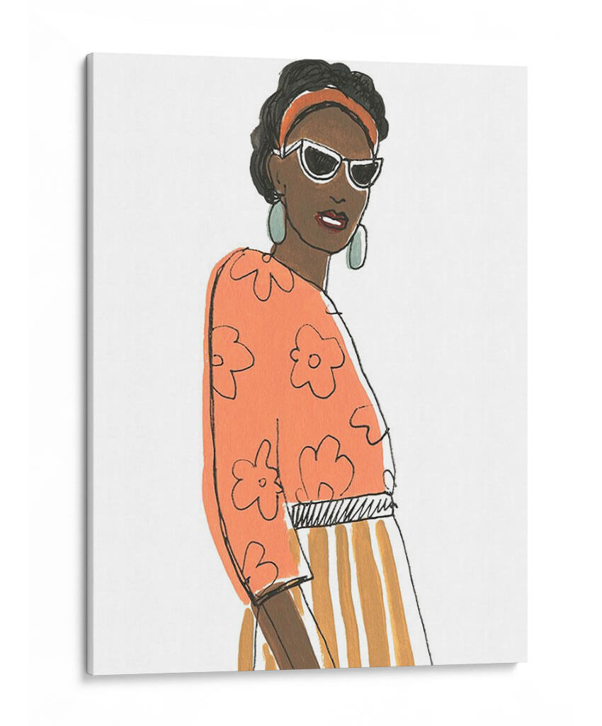 Transforma tu espacio con "Vignette De Moda Iii", una obra de arte contemporáneo que irradia estilo y confianza. Esta pieza, creada por la talentosa June Erica Vess, presenta una figura femenina audaz, capturada con trazos enérgicos y una paleta de colores vibrante. El naranja intenso del vestido, adornado con motivos florales juguetones, contrasta maravillosamente con las rayas doradas de la falda, creando una composición dinámica y visualmente atractiva. Las gafas de sol de gran tamaño y los pendientes llamativos añaden un toque de sofisticación moderna, mientras que el contorno negro definido aporta profundidad y carácter a la ilustración. "Vignette De Moda Iii" es más que un simple cuadro; es una declaración de moda y personalidad, perfecta para inyectar vida y un aire chic a cualquier sala de estar, dormitorio o espacio de trabajo. Su estilo distintivo la convierte en una pieza focal ideal para quienes buscan arte que sea tanto moderno como atemporal. Añade este toque de elegancia y audacia a tu decoración y deja que inspire confianza y creatividad en tu día a día.