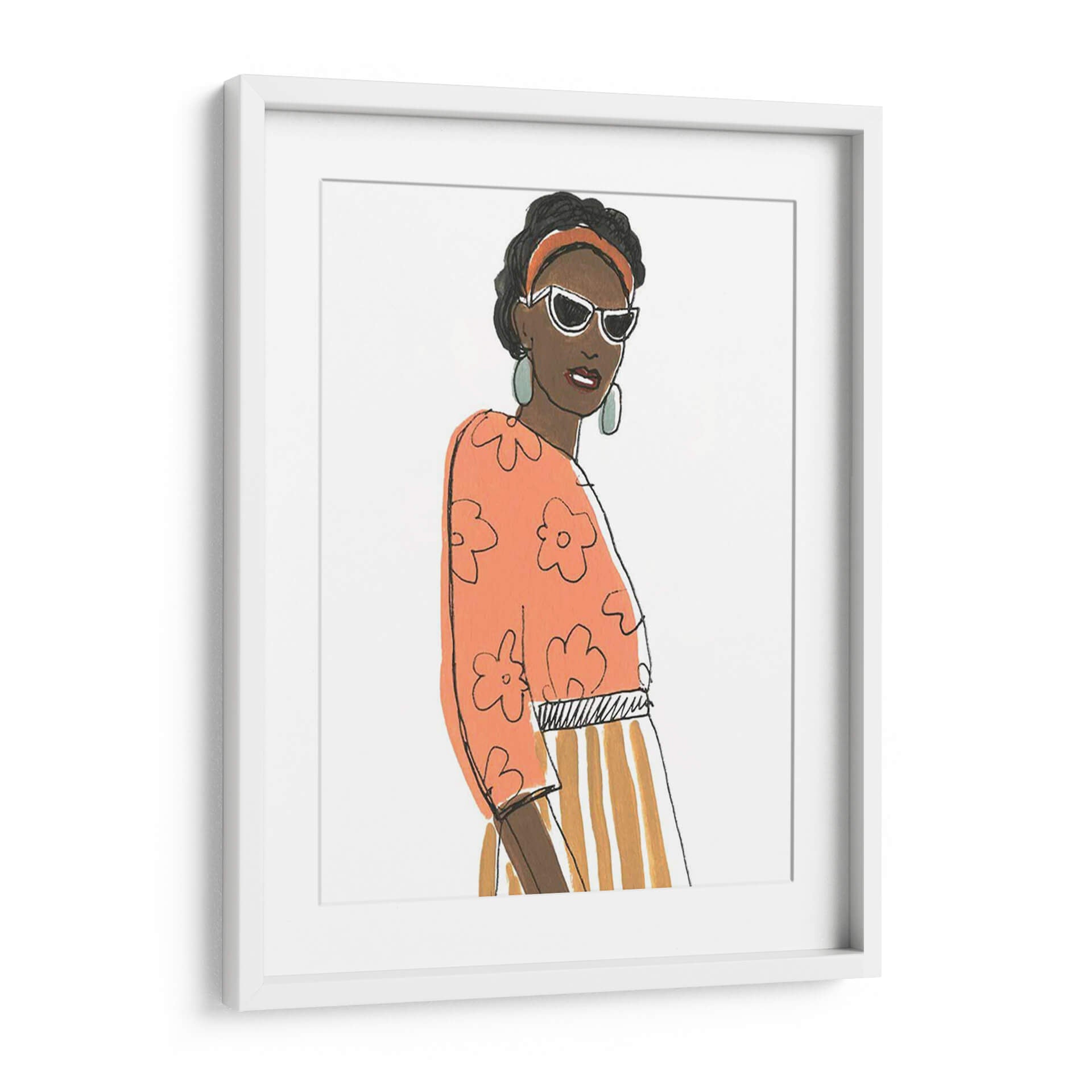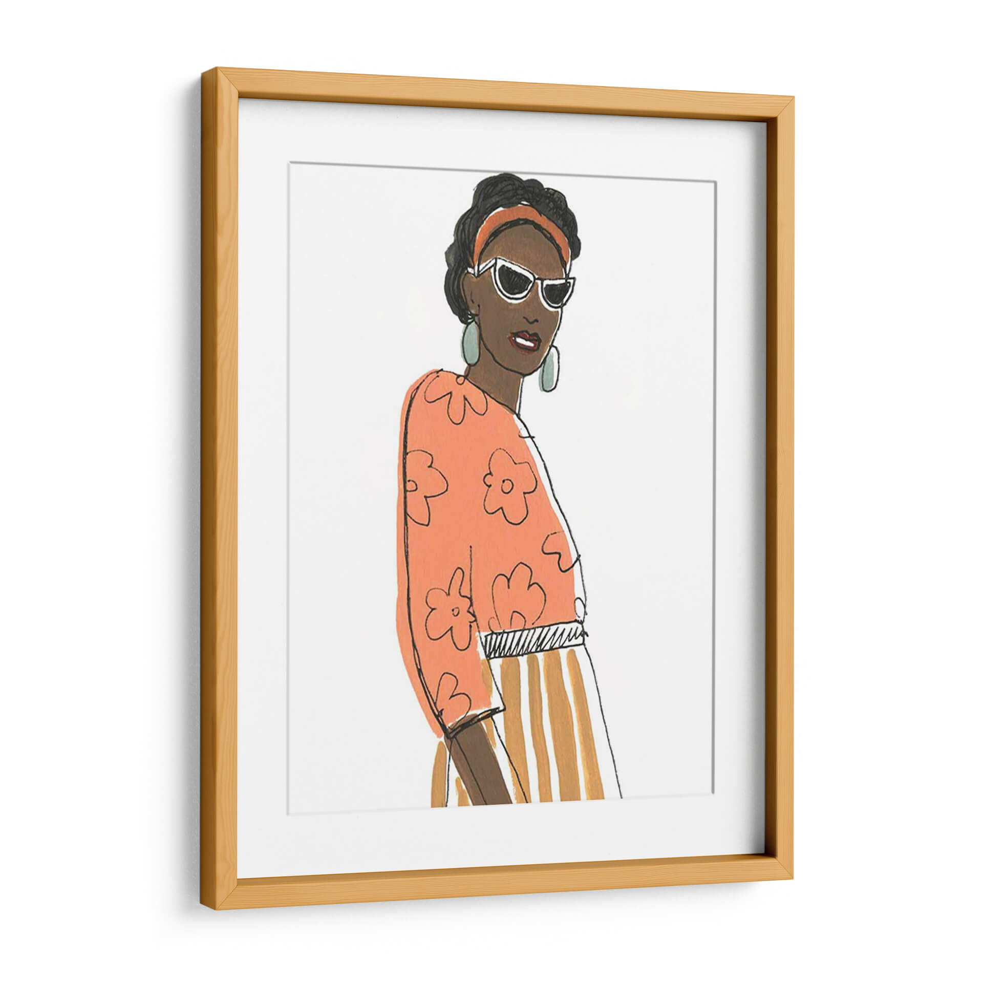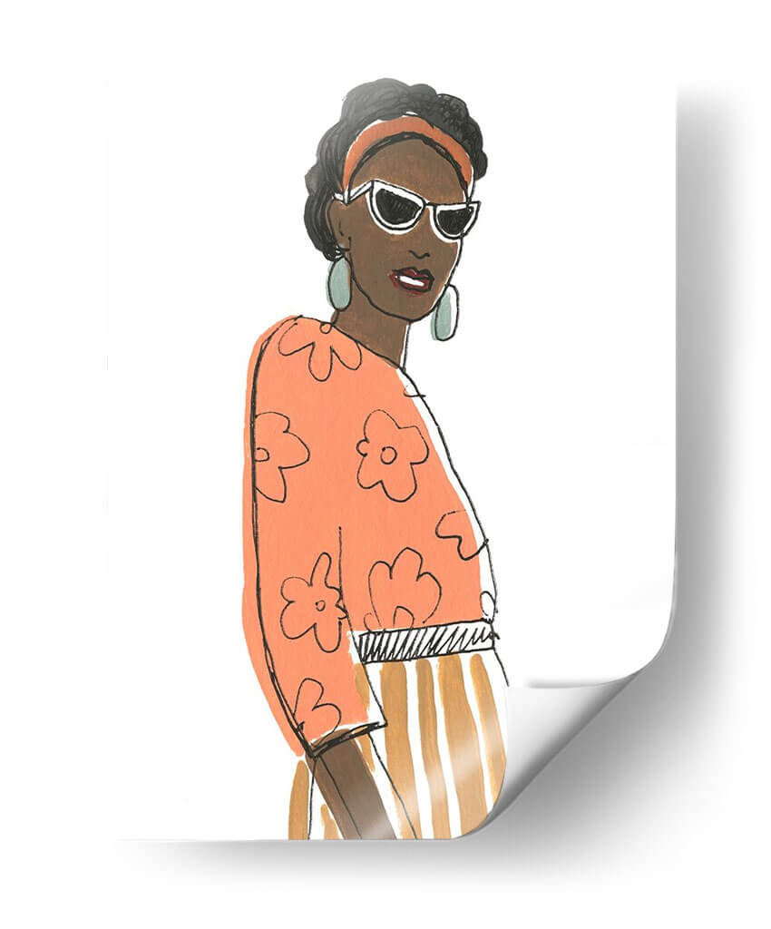 Transforma tu espacio con "Vignette De Moda Iii", una obra de arte contemporáneo que irradia estilo y confianza. Esta pieza, creada por la talentosa June Erica Vess, presenta una figura femenina audaz, capturada con trazos enérgicos y una paleta de colores vibrante. El naranja intenso del vestido, adornado con motivos florales juguetones, contrasta maravillosamente con las rayas doradas de la falda, creando una composición dinámica y visualmente atractiva. Las gafas de sol de gran tamaño y los pendientes llamativos añaden un toque de sofisticación moderna, mientras que el contorno negro definido aporta profundidad y carácter a la ilustración. "Vignette De Moda Iii" es más que un simple cuadro; es una declaración de moda y personalidad, perfecta para inyectar vida y un aire chic a cualquier sala de estar, dormitorio o espacio de trabajo. Su estilo distintivo la convierte en una pieza focal ideal para quienes buscan arte que sea tanto moderno como atemporal. Añade este toque de elegancia y audacia a tu decoración y deja que inspire confianza y creatividad en tu día a día.