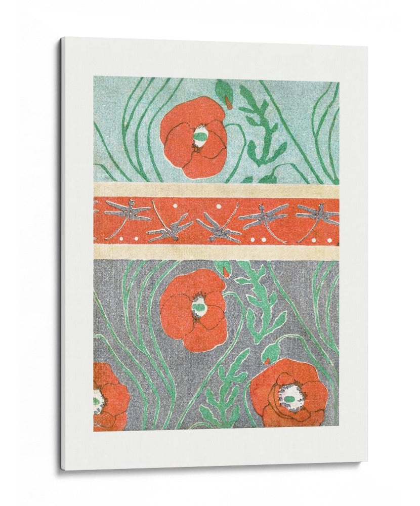 Sumérgete en la belleza atemporal de "Amapolas (1908) Pensión" de Goyo Hashiguchi, una obra que captura la esencia de la naturaleza con un estilo distintivo. Este cuadro decorativo presenta vibrantes amapolas rojas, dispuestas con gracia sobre un fondo texturizado en tonos grises y celestes, intercaladas con delicadas representaciones de libélulas en una franja central. La paleta de colores, dominada por rojos intensos, verdes botánicos y toques de azul cielo, crea una atmósfera de serenidad y vitalidad. El estilo, que evoca el arte decorativo de principios del siglo XX con influencias art nouveau, se manifiesta en sus líneas fluidas y su composición simétrica. Es una pieza ideal para añadir un toque de color y sofisticación a cualquier espacio, ya sea una sala de estar moderna, un estudio tranquilo o un dormitorio acogedor. "Amapolas (1908) Pensión" no es solo una decoración, es una invitación a contemplar la delicadeza de la flora y la fauna, aportando un aire de frescura y elegancia a tu hogar. Su diseño particular la convierte en un punto focal cautivador que dialoga con la luz y el entorno, transformando cualquier pared en una galería personal.