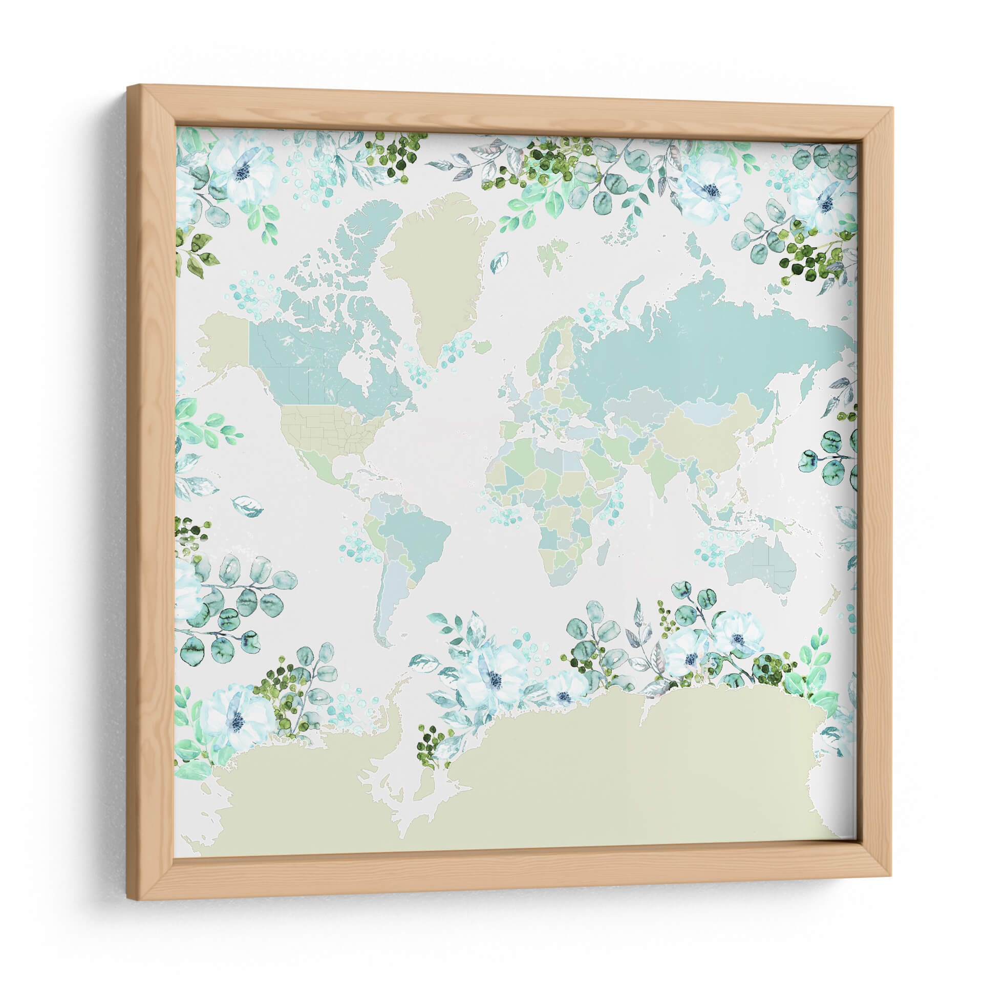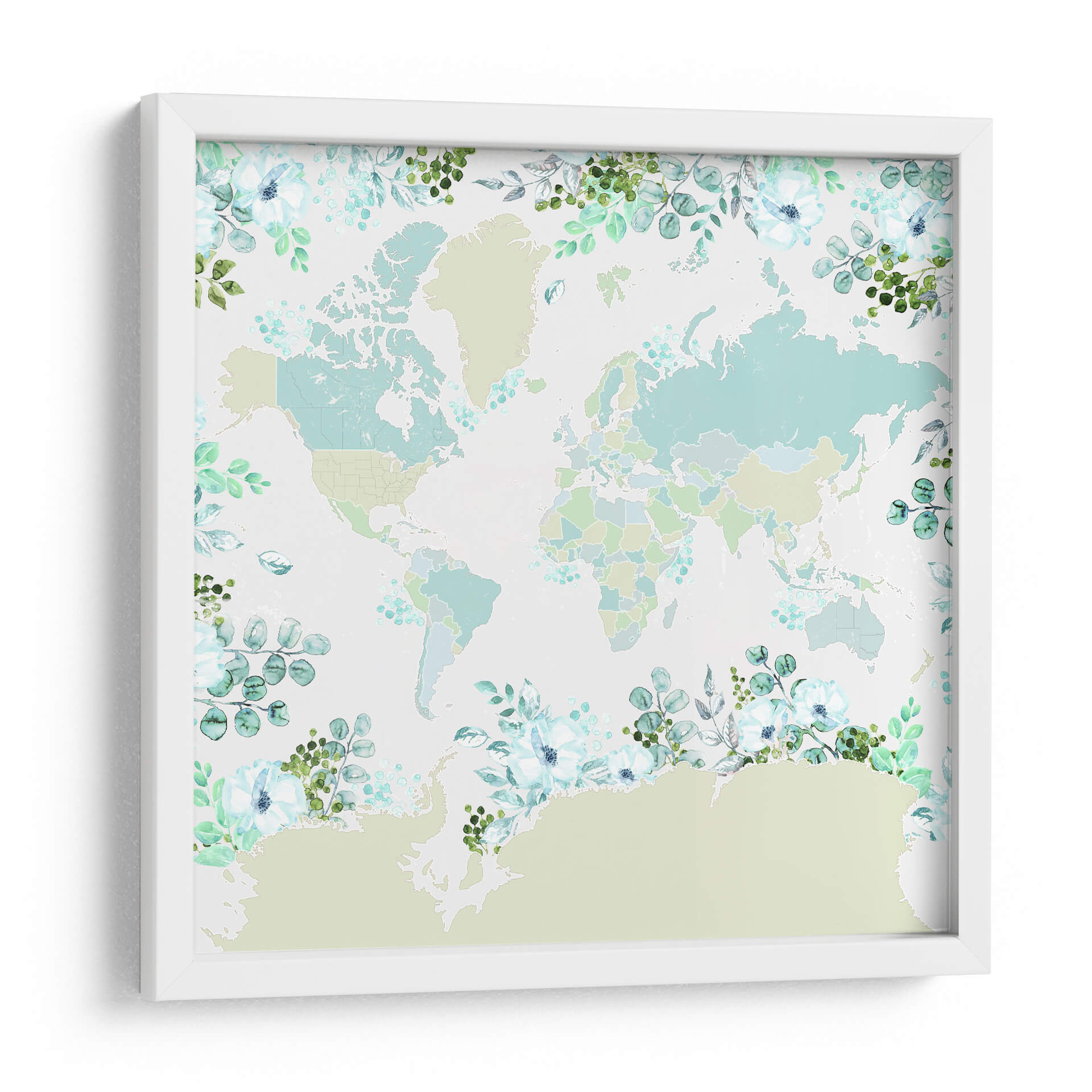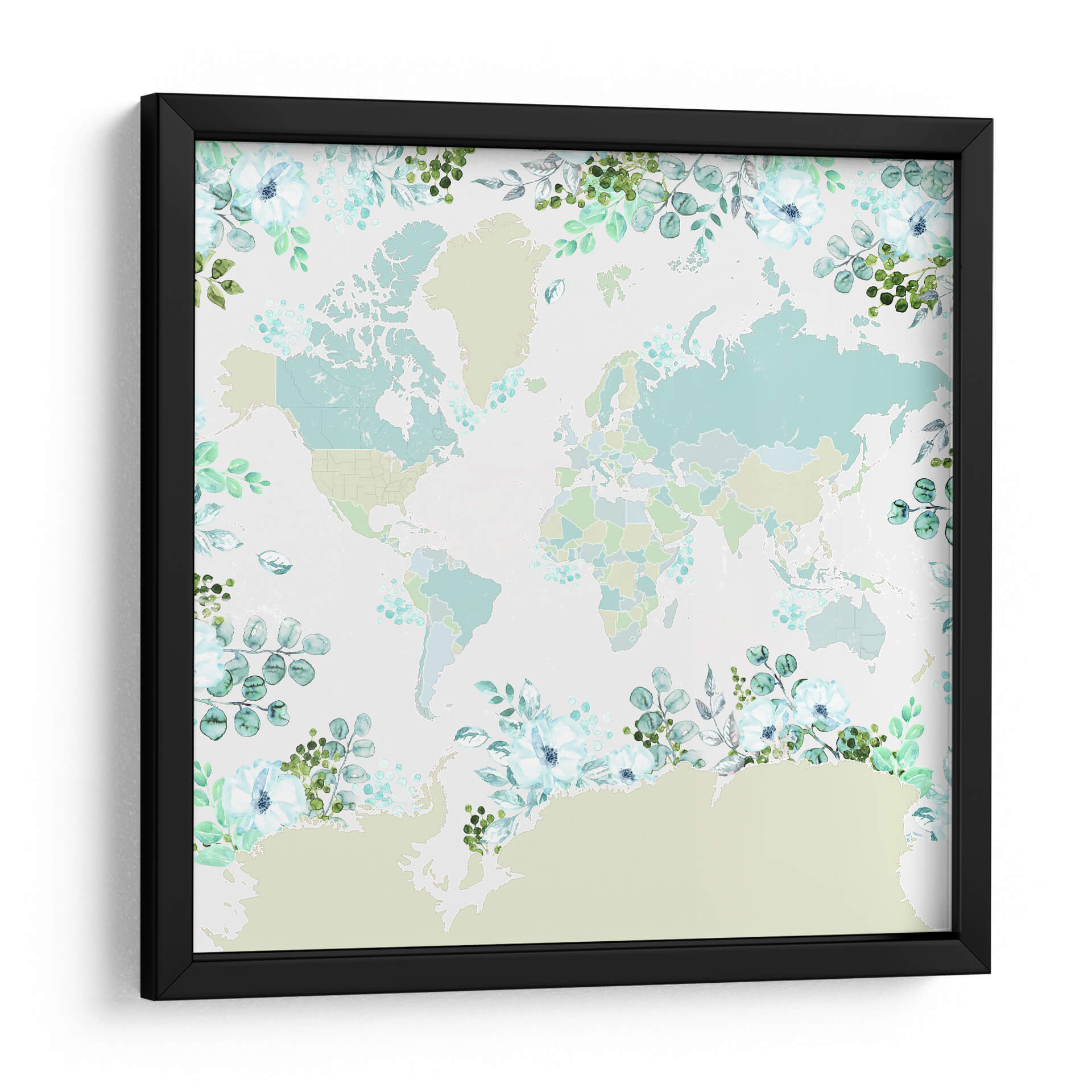 Embárcate en un viaje visual con nuestro cautivador cuadro decorativo 'Mapa mundial con vegetación Marie'. Esta obra de arte contemporánea, creada por Rosana Laiz Blursbyai, reimagina el globo terráqueo a través de una paleta de colores serenos en tonos menta, verde azulado y verde claro, salpicados con delicados toques de blanco y verde intenso. La composición presenta un mapa estilizado del mundo, donde los continentes emergen suavemente sobre un fondo texturizado, abrazados por un exuberante y etéreo borde floral. Las acuarelas de flores y hojas, en tonos pastel y vibrantes, añaden una dimensión de frescura y vida, evocando una sensación de calma y conexión con la naturaleza. Ideal para infundir tranquilidad en tu dormitorio, aportar un toque de originalidad a tu estudio o ser el centro de atención en una sala de estar moderna, este mapa es una invitación a la exploración y al ensueño. Su estilo delicado y contemporáneo lo convierte en una pieza versátil que complementa una amplia gama de decoraciones, desde las más minimalistas hasta las más bohemias, añadiendo un aire de sofisticación natural a cualquier espacio. Descubre el mundo a través de una perspectiva artística única.