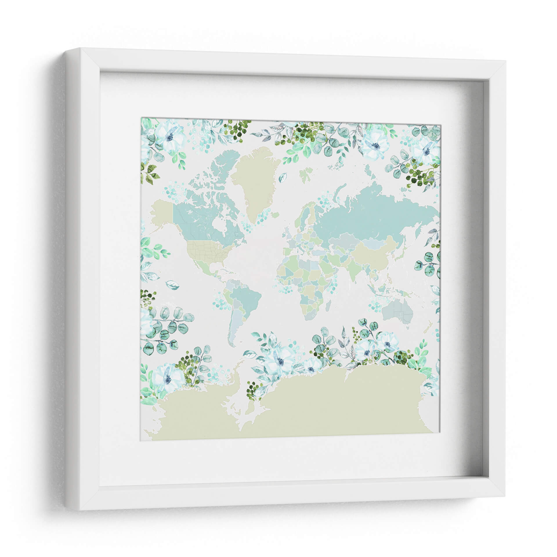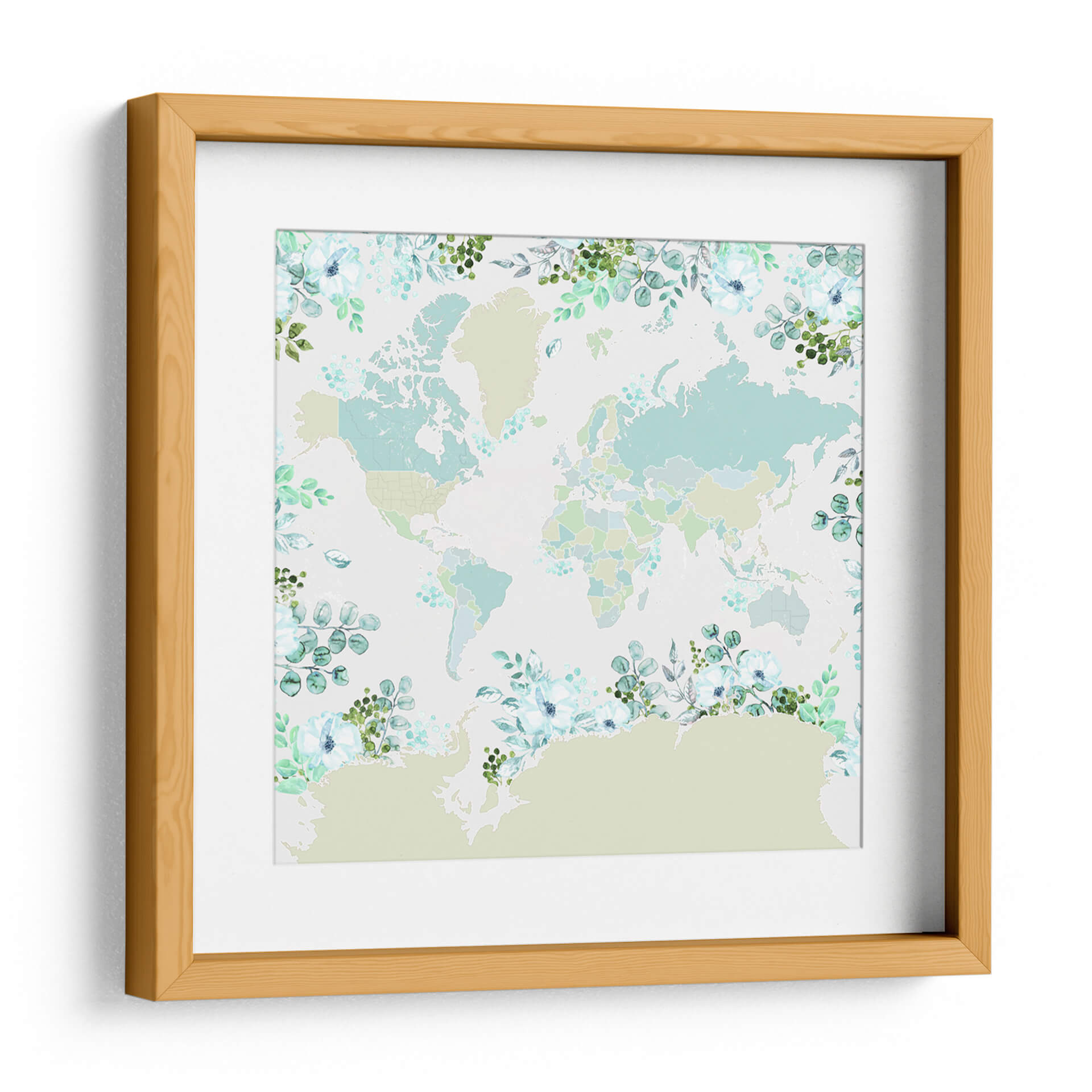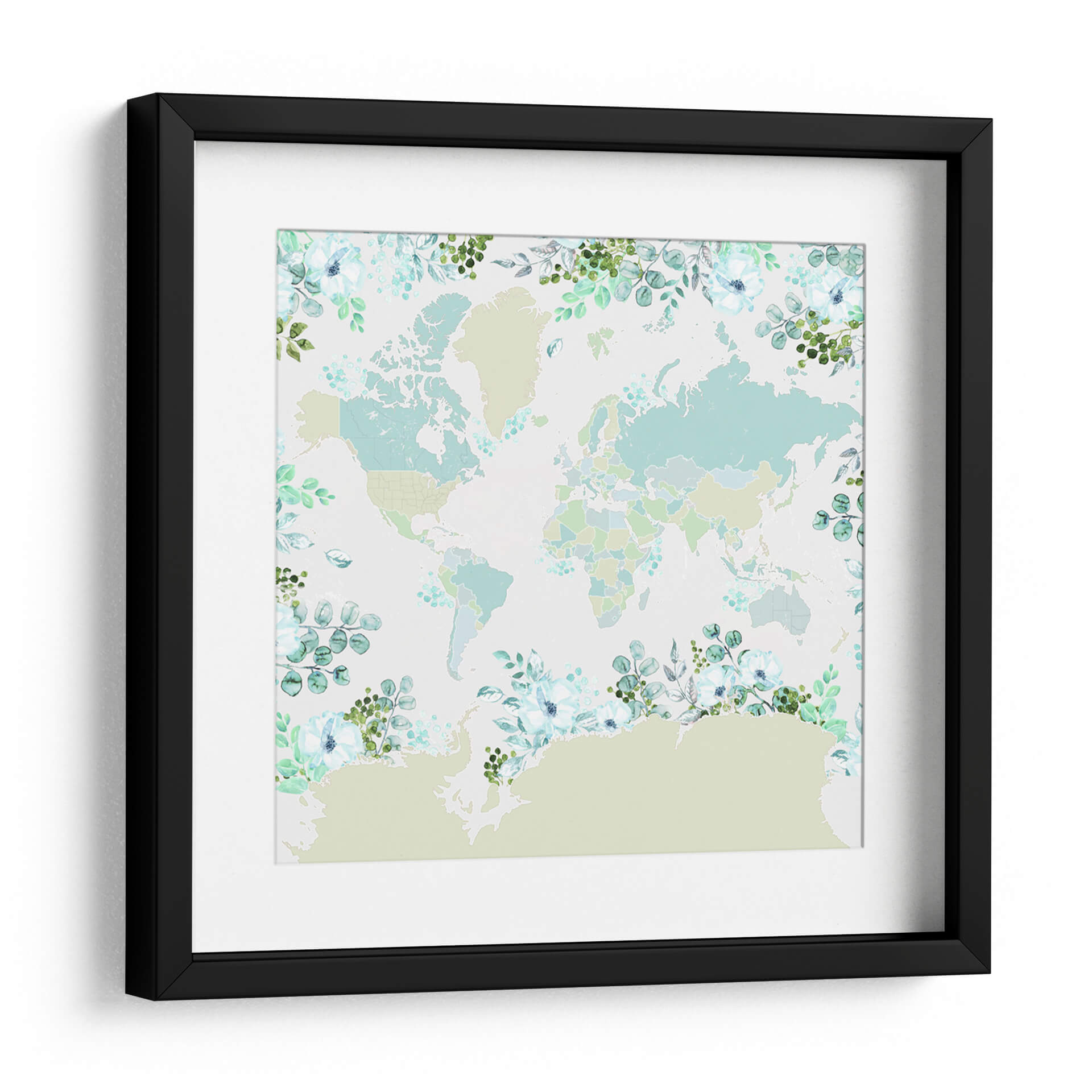 Embárcate en un viaje visual con nuestro cautivador cuadro decorativo 'Mapa mundial con vegetación Marie'. Esta obra de arte contemporánea, creada por Rosana Laiz Blursbyai, reimagina el globo terráqueo a través de una paleta de colores serenos en tonos menta, verde azulado y verde claro, salpicados con delicados toques de blanco y verde intenso. La composición presenta un mapa estilizado del mundo, donde los continentes emergen suavemente sobre un fondo texturizado, abrazados por un exuberante y etéreo borde floral. Las acuarelas de flores y hojas, en tonos pastel y vibrantes, añaden una dimensión de frescura y vida, evocando una sensación de calma y conexión con la naturaleza. Ideal para infundir tranquilidad en tu dormitorio, aportar un toque de originalidad a tu estudio o ser el centro de atención en una sala de estar moderna, este mapa es una invitación a la exploración y al ensueño. Su estilo delicado y contemporáneo lo convierte en una pieza versátil que complementa una amplia gama de decoraciones, desde las más minimalistas hasta las más bohemias, añadiendo un aire de sofisticación natural a cualquier espacio. Descubre el mundo a través de una perspectiva artística única.