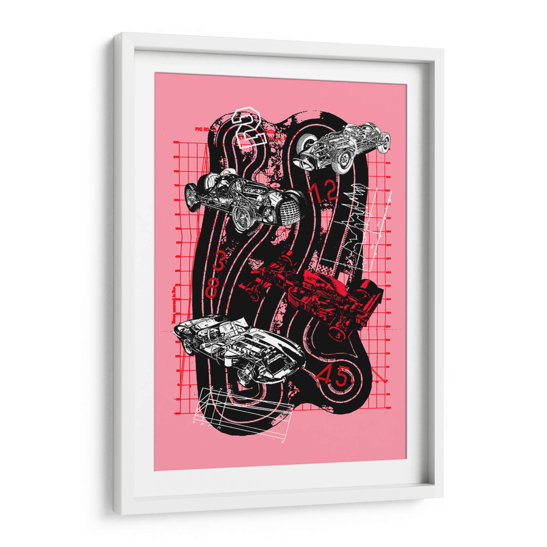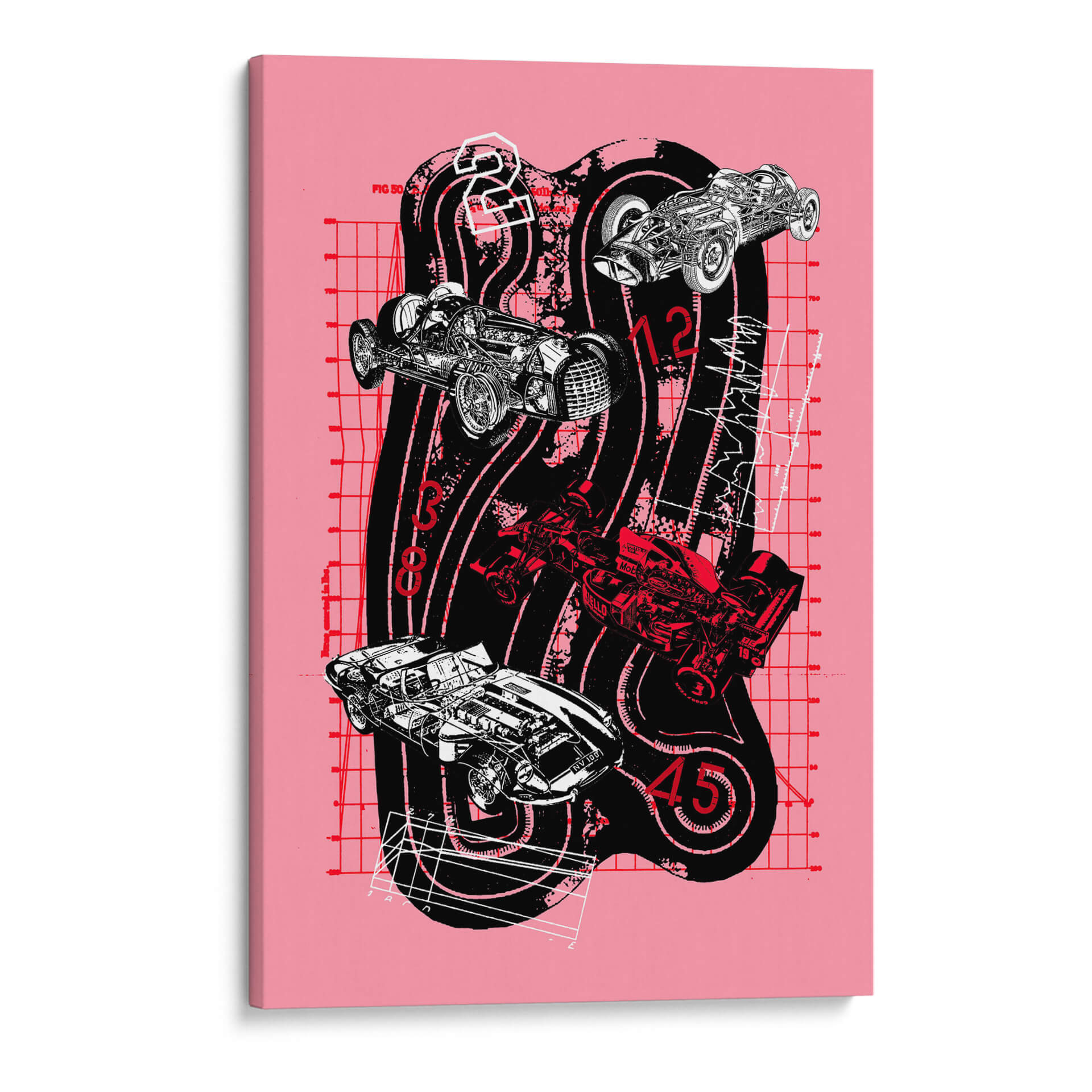 Sumérgete en el electrizante mundo de la velocidad y la ingeniería con este impresionante cuadro decorativo 'Campeonato De F1 I' del artista Pawel Pacholec. La obra presenta una vibrante composición en tonos rosa, negro y rojo, capturando la esencia dinámica de los coches de Fórmula 1 a través de ilustraciones detalladas y un estilo gráfico moderno. El diseño combina elementos de planos técnicos y gráficos de rendimiento con siluetas icónicas de autos de carreras, creando una pieza visualmente cautivadora que evoca adrenalina y nostalgia por la era dorada del automovilismo. Los intrincados detalles de los motores y la aerodinámica de los vehículos se presentan con un contraste audaz, haciendo de esta pieza un punto focal ideal para cualquier entusiasta de los coches o del diseño audaz. Este cuadro decorativo es perfecto para inyectar energía y un toque de sofisticación retro a tu sala de estar, oficina o garaje. Su diseño único y su ejecución artística lo convierten en una declaración de estilo, ideal para aquellos que aprecian la mecánica de precisión y la estética del diseño automotriz clásico. Es una forma excepcional de añadir carácter y personalidad a tus espacios, celebrando la pasión por la velocidad y la competición.