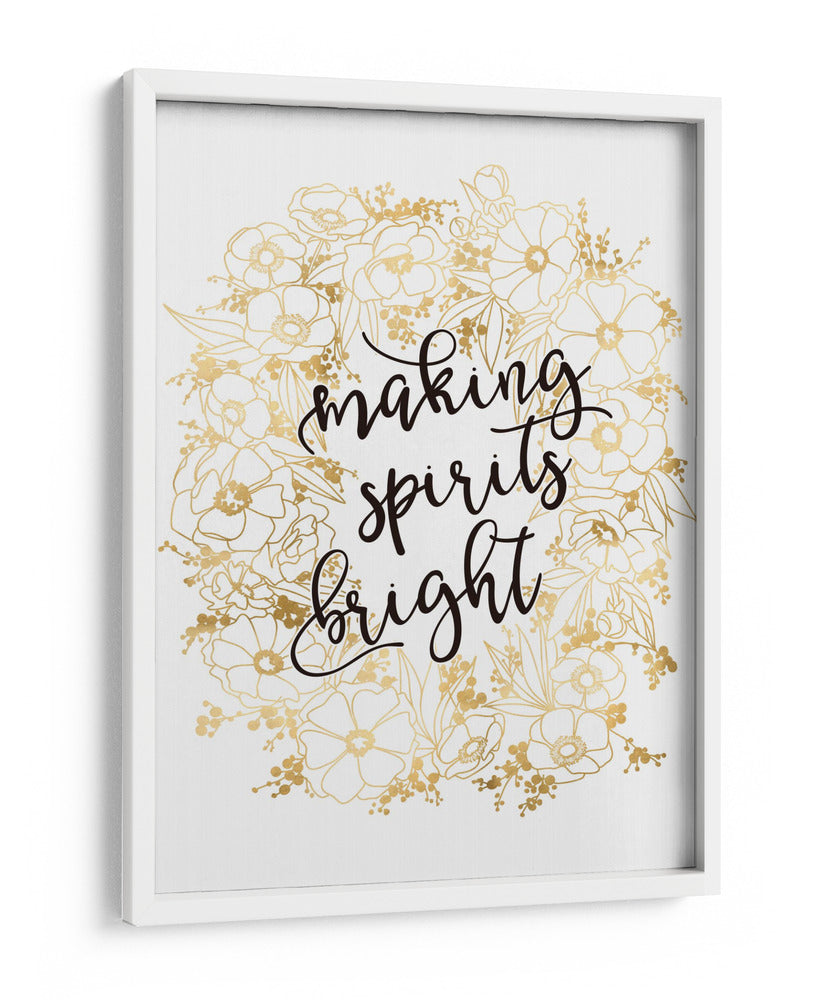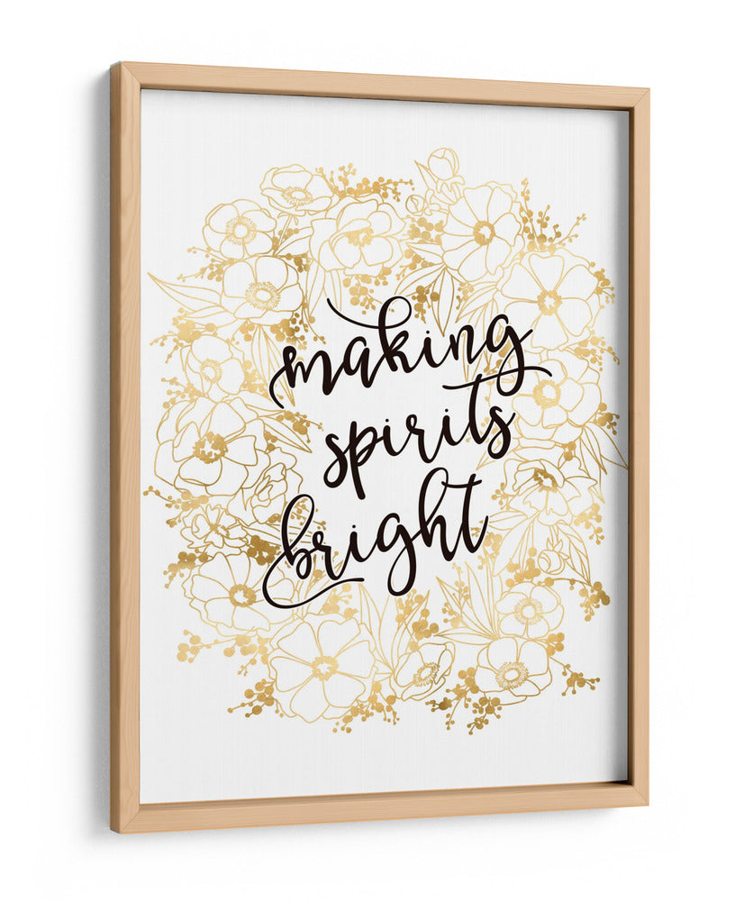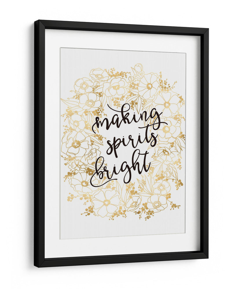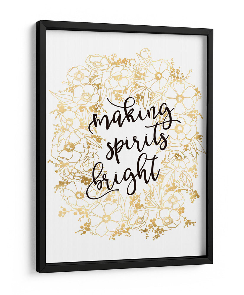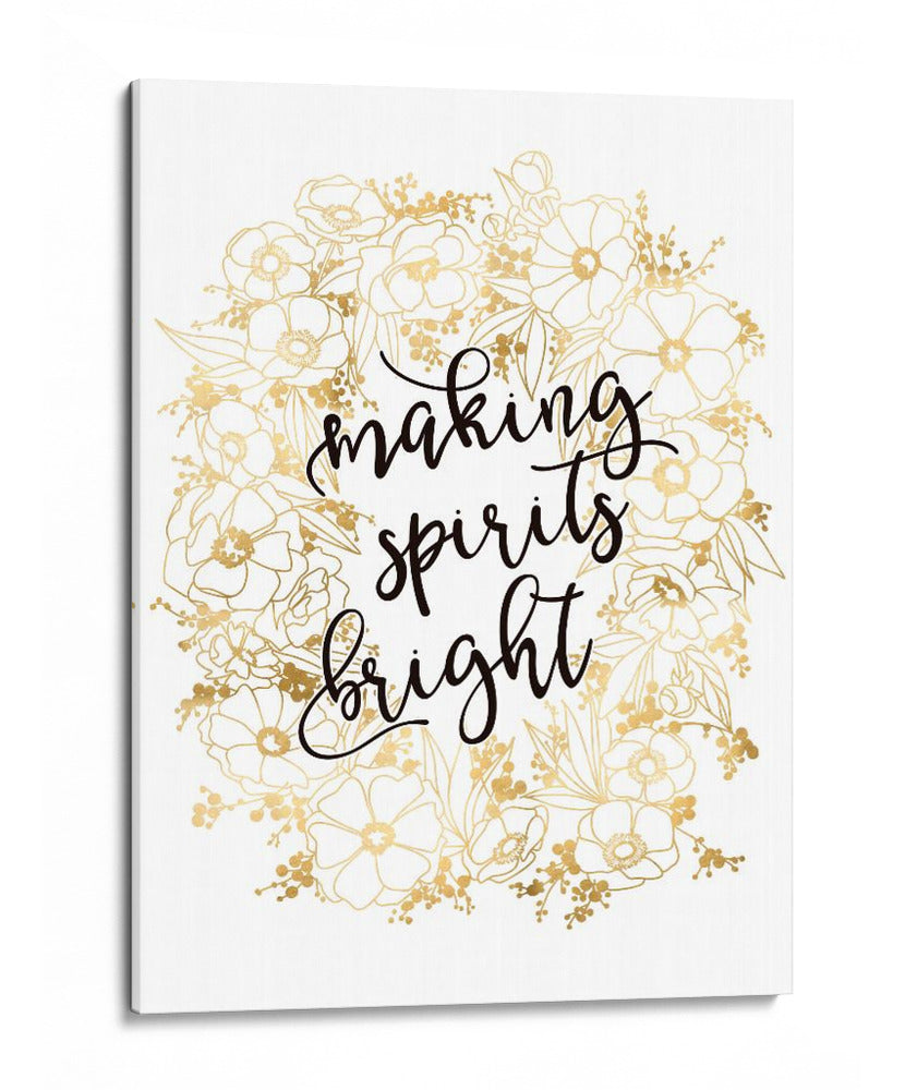 Embellece tu espacio con el encantador cuadro decorativo "Alegrando el espíritu con flores doradas", una obra de arte contemporáneo que irradia positividad y elegancia. Esta pieza presenta un delicado arreglo floral en tonos dorados brillantes, delineado con trazos finos sobre un fondo blanco impoluto. En el centro, la frase "making spirits bright" (alegrando el espíritu) se despliega en una caligrafía fluida y audaz, complementando la composición floral y añadiendo un mensaje inspirador. El contraste entre el blanco nítido y el dorado vibrante crea un efecto visual cautivador, perfecto para añadir un toque de luz y sofisticación a cualquier habitación. Su estilo minimalista con toques de glamour lo hace ideal para salones modernos, oficinas o incluso como un regalo reflexivo que evoca alegría y optimismo. Este cuadro decorativo es más que una simple pieza de arte; es una declaración de intenciones para crear ambientes llenos de energía positiva y buen gusto, transformando instantáneamente tu hogar o lugar de trabajo en un oasis de estilo y bienestar. Un imprescindible para quienes buscan arte inspirador con un diseño contemporáneo y un mensaje alentador.