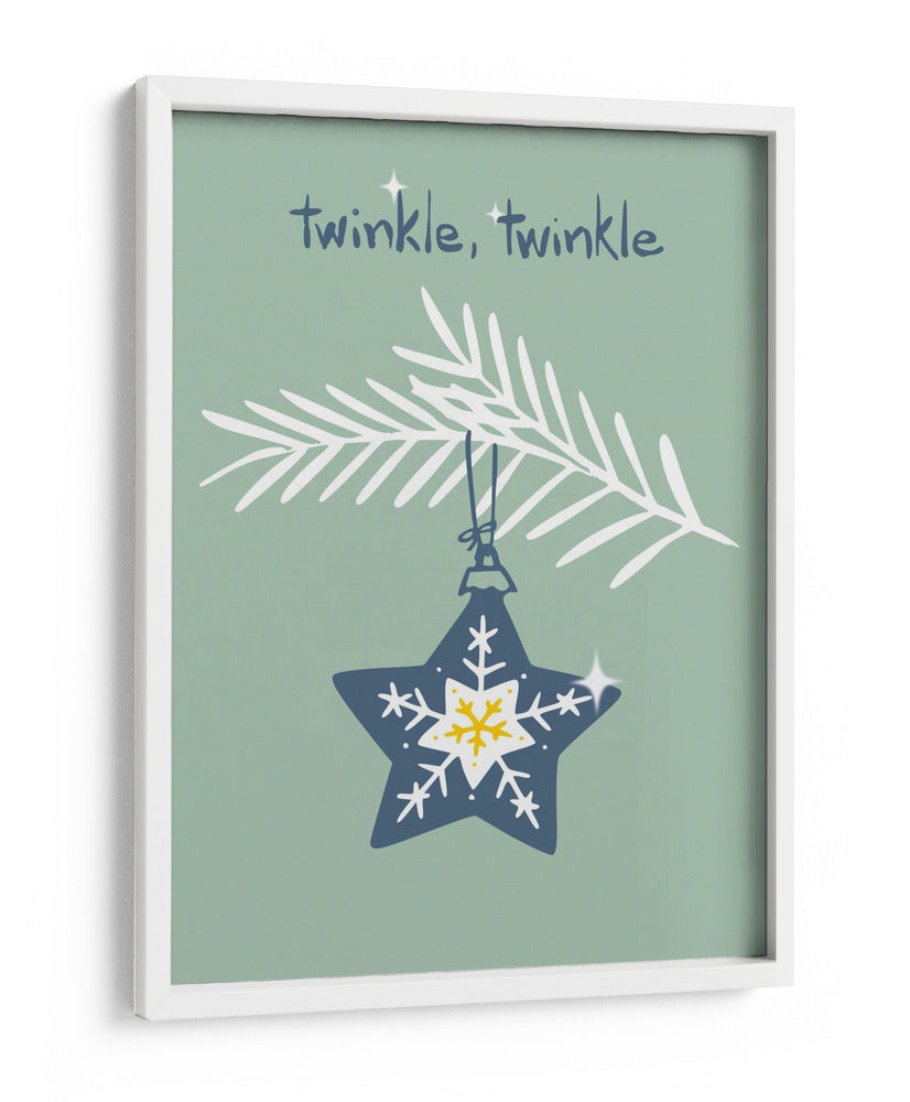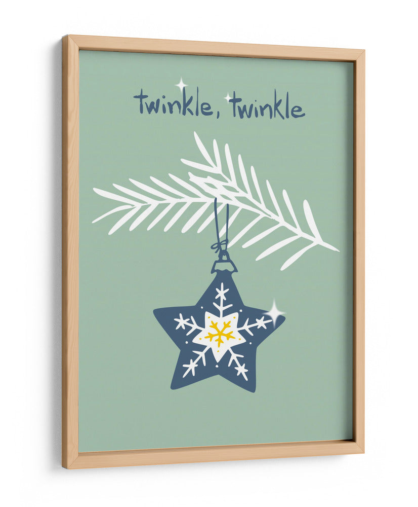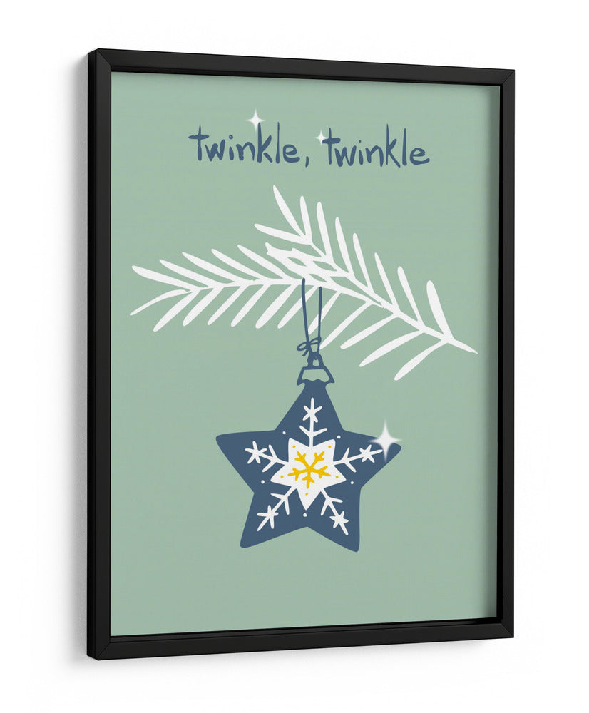 Captura la magia festiva y la serenidad invernal con este encantador cuadro decorativo 'Alegre destello estrella de Navidad menta' de Annick. La obra presenta una estética sencilla y moderna, con una rama de pino estilizada en blanco sobre un fondo de un suave y relajante tono menta. De la rama cuelga una estrella decorativa, principal protagonista, detallada con delicados copos de nieve y un centro brillante en tonos amarillos y blancos, evocando la luz de una estrella lejana. Las palabras 'twinkle, twinkle' escritas con una tipografía desenfadada y amigable invitan a la contemplación y añaden un toque lúdico a la composición. Este cuadro es ideal para infundir un ambiente acogedor y festivo en cualquier espacio, desde la sala de estar hasta un dormitorio o incluso una guardería. Su paleta de colores calmados pero con toques vibrantes lo hace versátil para complementar decoraciones modernas, minimalistas o de inspiración nórdica. Añade un toque de alegría y elegancia discreta a tu hogar con esta pieza única que celebra la belleza de las fiestas navideñas y la simplicidad de la naturaleza.