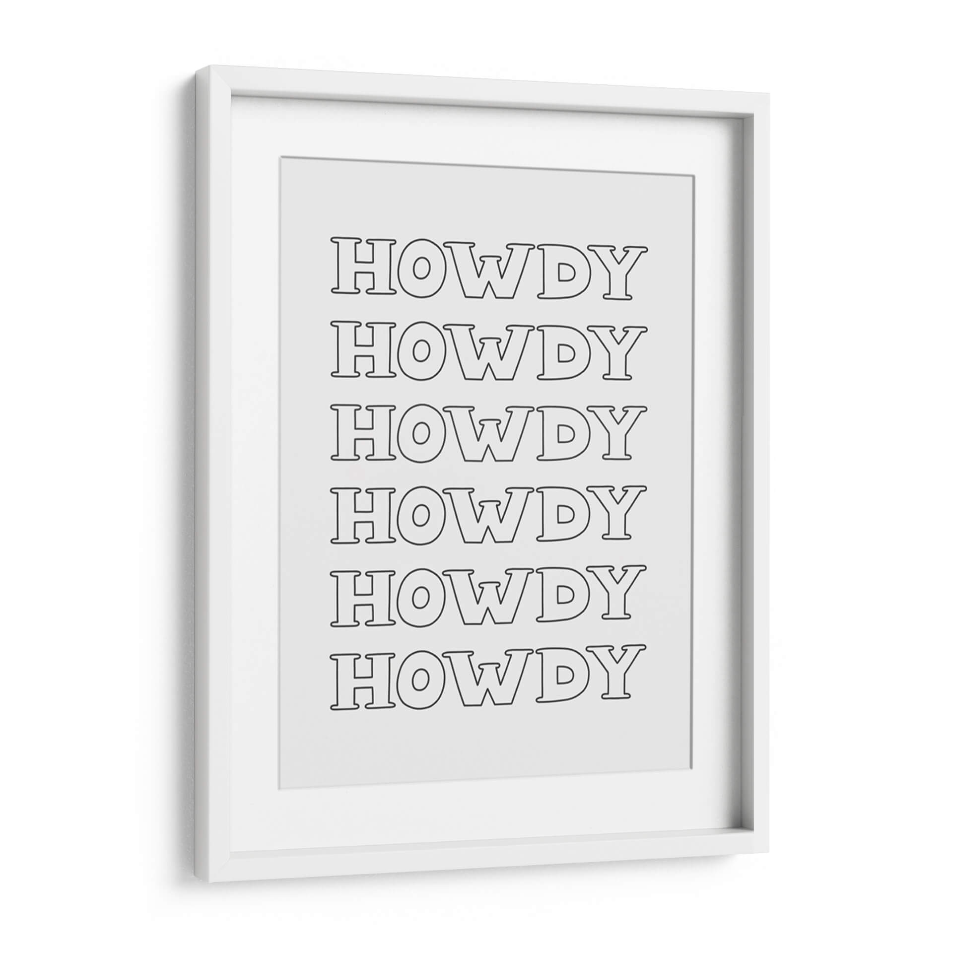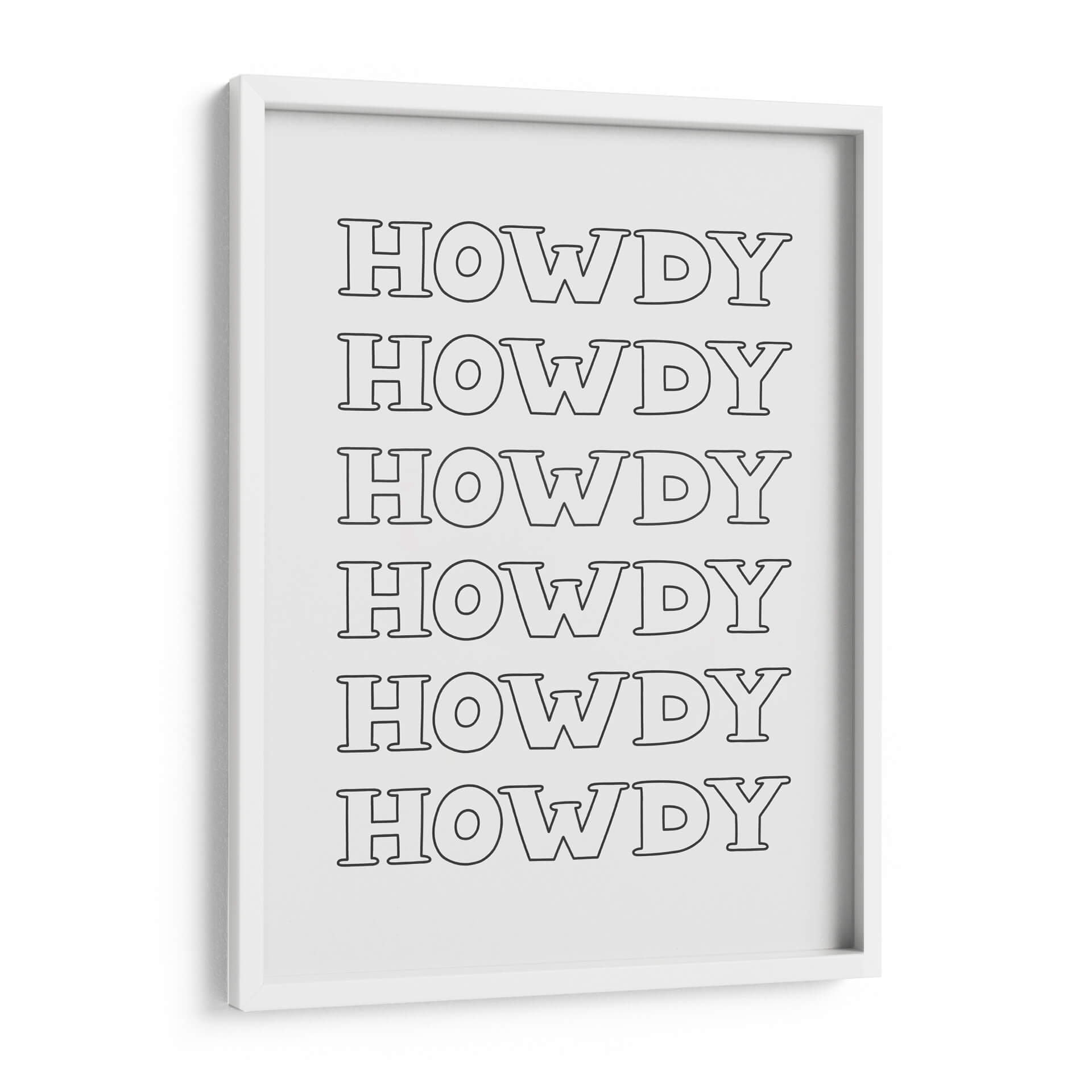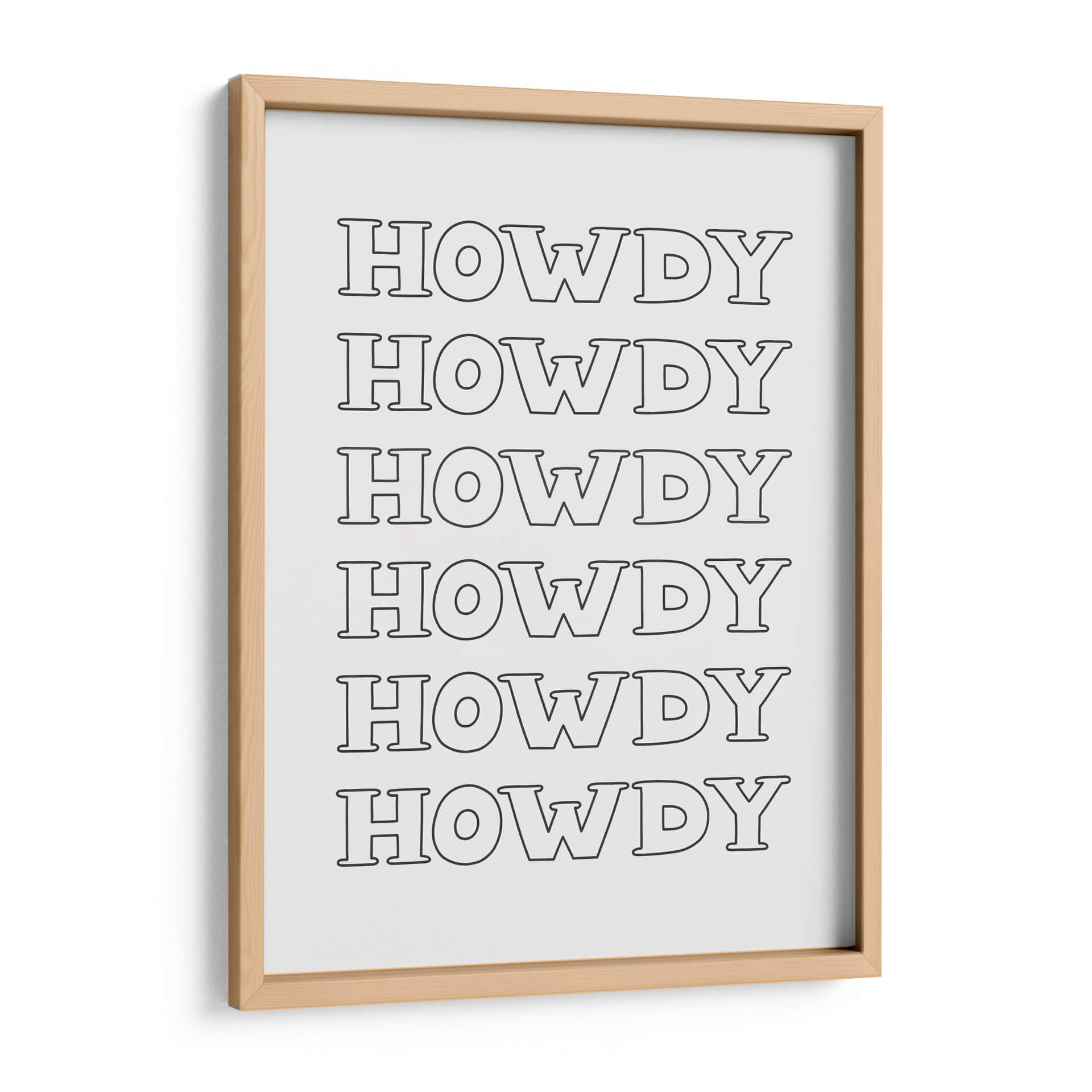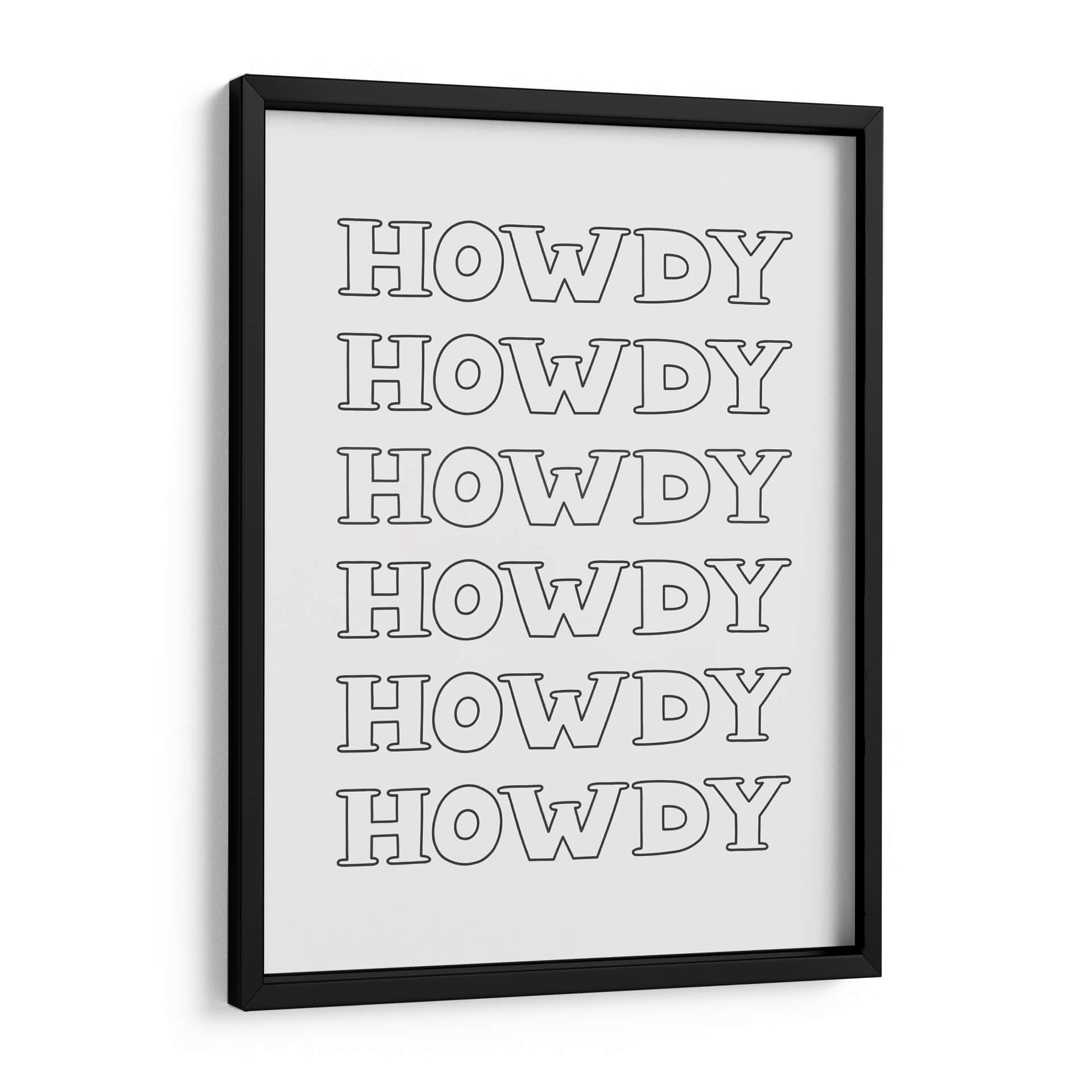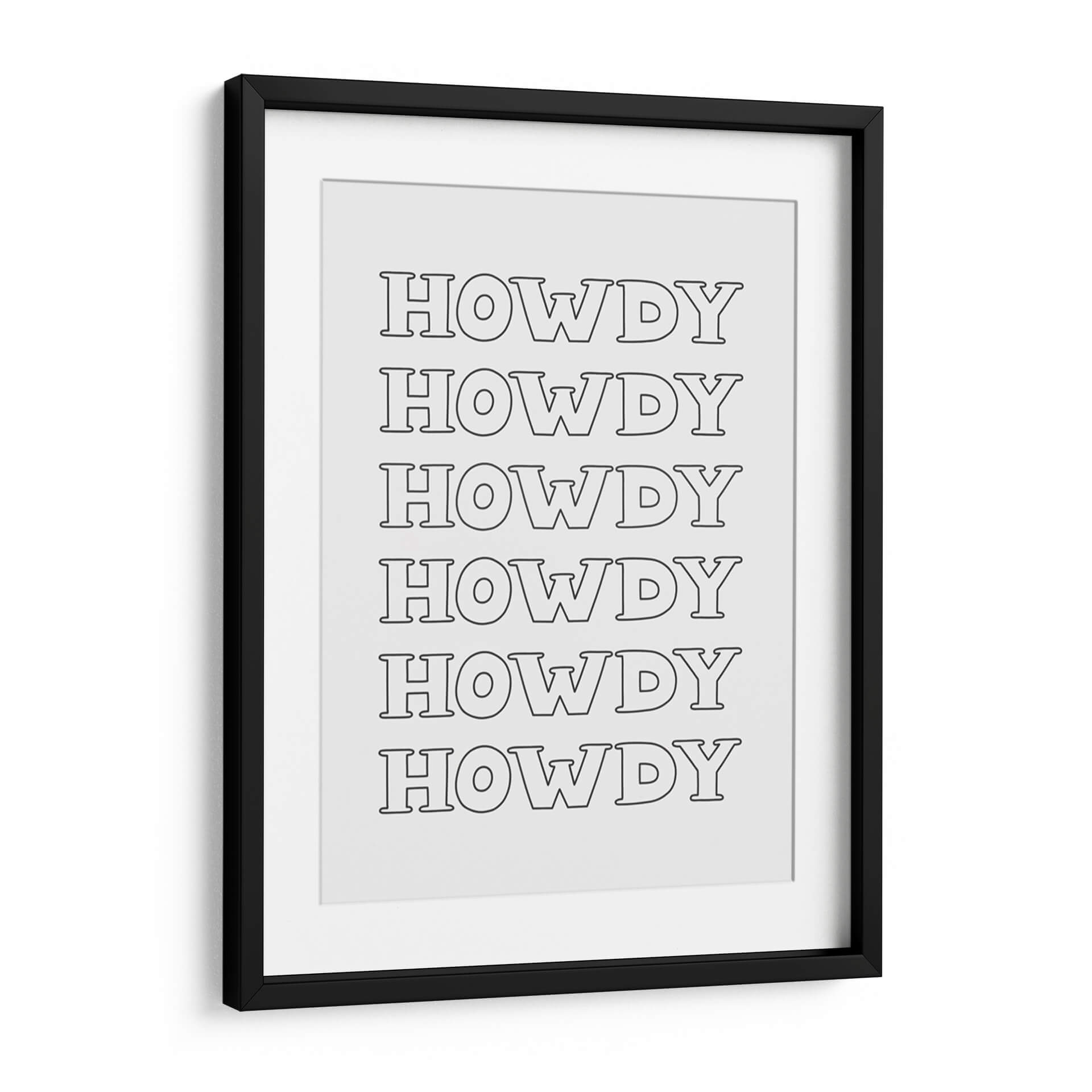 Da la bienvenida a tu hogar o negocio con el cautivador cuadro decorativo 'Black Howdy'. Esta obra de arte minimalista presenta el saludo "Howdy" repetido en un diseño audaz y estilizado, utilizando una paleta de colores monocromática que resalta la tipografía con contornos definidos. La composición, una repetición rítmica de la palabra, crea un efecto visual dinámico y atractivo, ideal para añadir un toque de personalidad y calidez a cualquier espacio. Perfecto para salas de estar modernas, oficinas o entradas, este cuadro decorativo es una declaración de estilo sencilla pero impactante. Su diseño limpio y contemporáneo se integra fácilmente en diversas decoraciones, desde lo rústico hasta lo más vanguardista. Añade una dosis de carácter y un recibimiento amistoso a tus paredes con esta pieza única del artista Jolly and Dash. Es una forma excelente de expresar tu estilo y crear un ambiente acogedor y memorable para tus invitados.