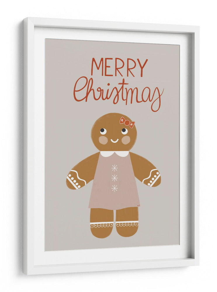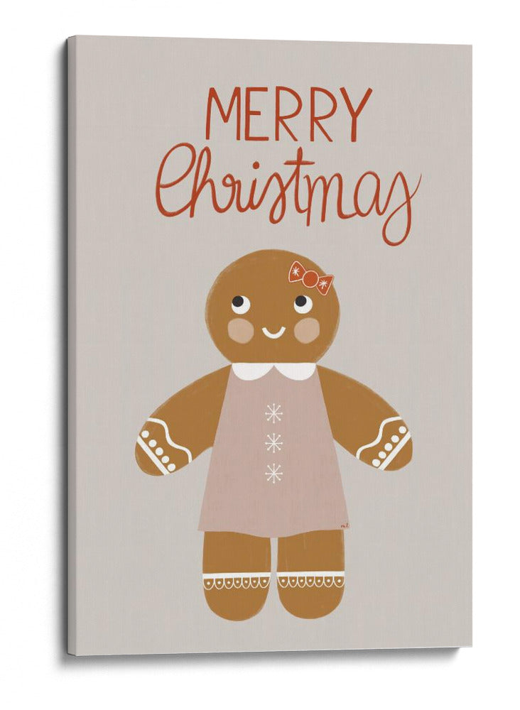 Celebra la temporada navideña con el encantador cuadro decorativo "Chica de pan de jengibre", una obra de arte que irradia alegría y calidez festiva. Esta pieza, creada por la talentosa artista Menina Lisboa, presenta una adorable figura de pan de jengibre con una sonrisa contagiosa, vestida con un delicado vestido rosa y adornada con un lazo rojo. Las sutiles decoraciones en sus extremidades y el mensaje "Merry Christmas" escrito en una tipografía manuscrita y vibrante complementan a la perfección la atmósfera acogedora y juguetona de la obra. La paleta de colores, dominada por tonos cálidos de marrón, rosa pálido y un toque de rojo festivo, sobre un fondo neutro y suave, crea un ambiente acogedor y festivo. Su estilo sencillo pero expresivo la convierte en una adición perfecta para cualquier hogar o espacio que busque infundir espíritu navideño. Ideal para cocinas, comedores, habitaciones infantiles o cualquier rincón que necesite un toque de magia invernal y diseño contemporáneo. Este cuadro es más que una simple decoración; es una invitación a revivir la dulzura de la infancia y la emoción de la Navidad, aportando un aire de celebración y buen humor a tu decoración durante todo el año o especialmente durante la temporada festiva.