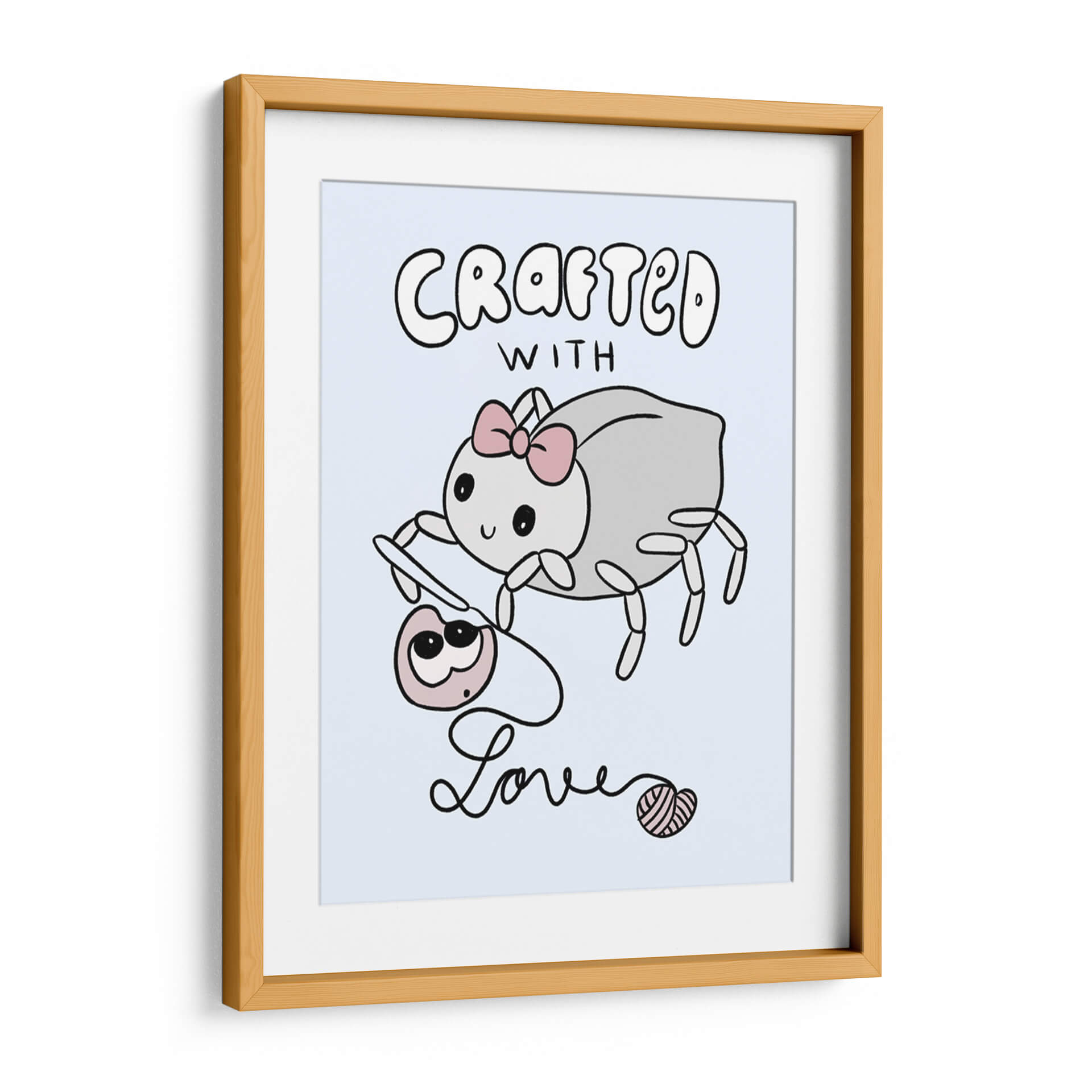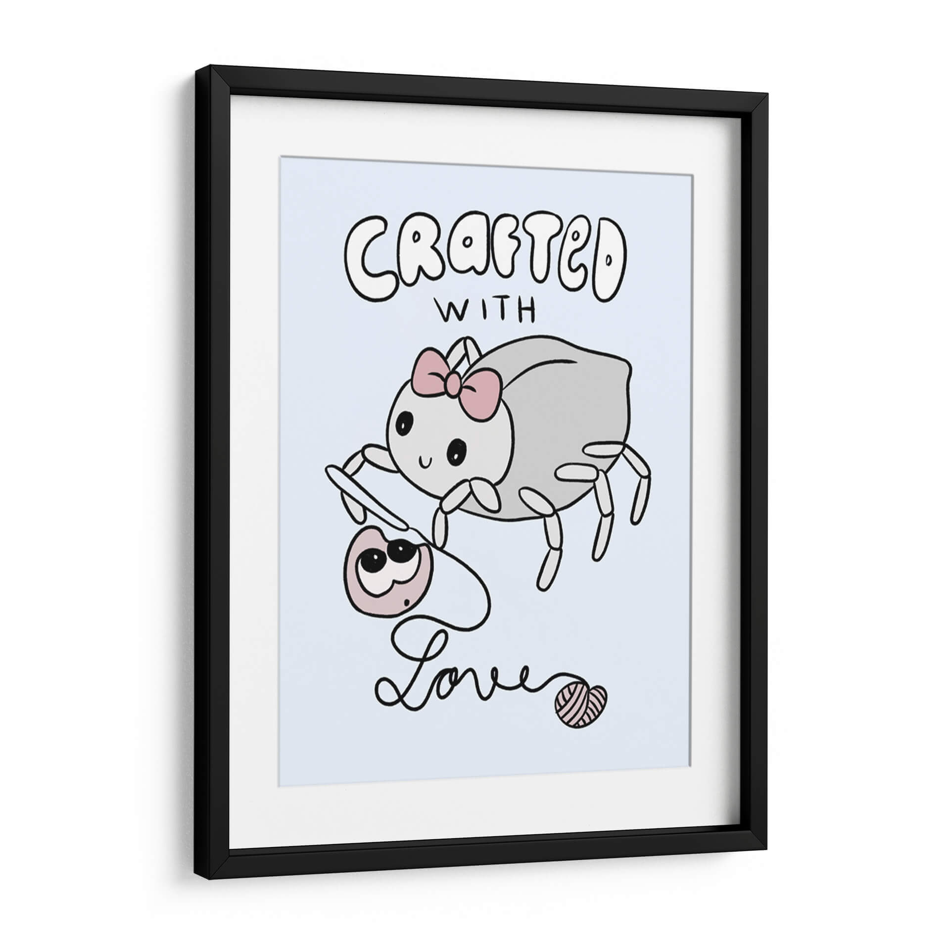 Celebra la ternura y la creatividad con este encantador cuadro decorativo, cuyo título "Creado con amor" encapsula perfectamente su esencia. La obra presenta una adorable ilustración de un arácnido con un lazo rosa en la cabeza, engarzando un ovillo de lana con una aguja, un detalle que evoca la labor manual y el cariño en cada puntada. Los colores predominantes son un suave gris para el personaje principal y un fondo de un delicado azul pálido, acentuados con toques de rosa en el lazo y en el detalle del ovillo, creando una paleta dulce y acogedora. El estilo de dibujo es limpio, con líneas negras definidas que resaltan la figura y el texto, similar a un diseño de ilustración infantil o de caricatura, pero con un aire sofisticado que lo hace apto para cualquier espacio. Esta pieza irradia una atmósfera de calidez, dedicación y amor, ideal para inspirar y decorar habitaciones infantiles, estudios creativos, o cualquier rincón del hogar donde se quiera añadir un toque de dulzura y originalidad. Es un recordatorio visual de que las cosas hechas con pasión son las que verdaderamente importan, convirtiéndose en una pieza de arte de pared única que cautivará a quienes la contemplen, aportando personalidad y una sonrisa a tu decoración.
