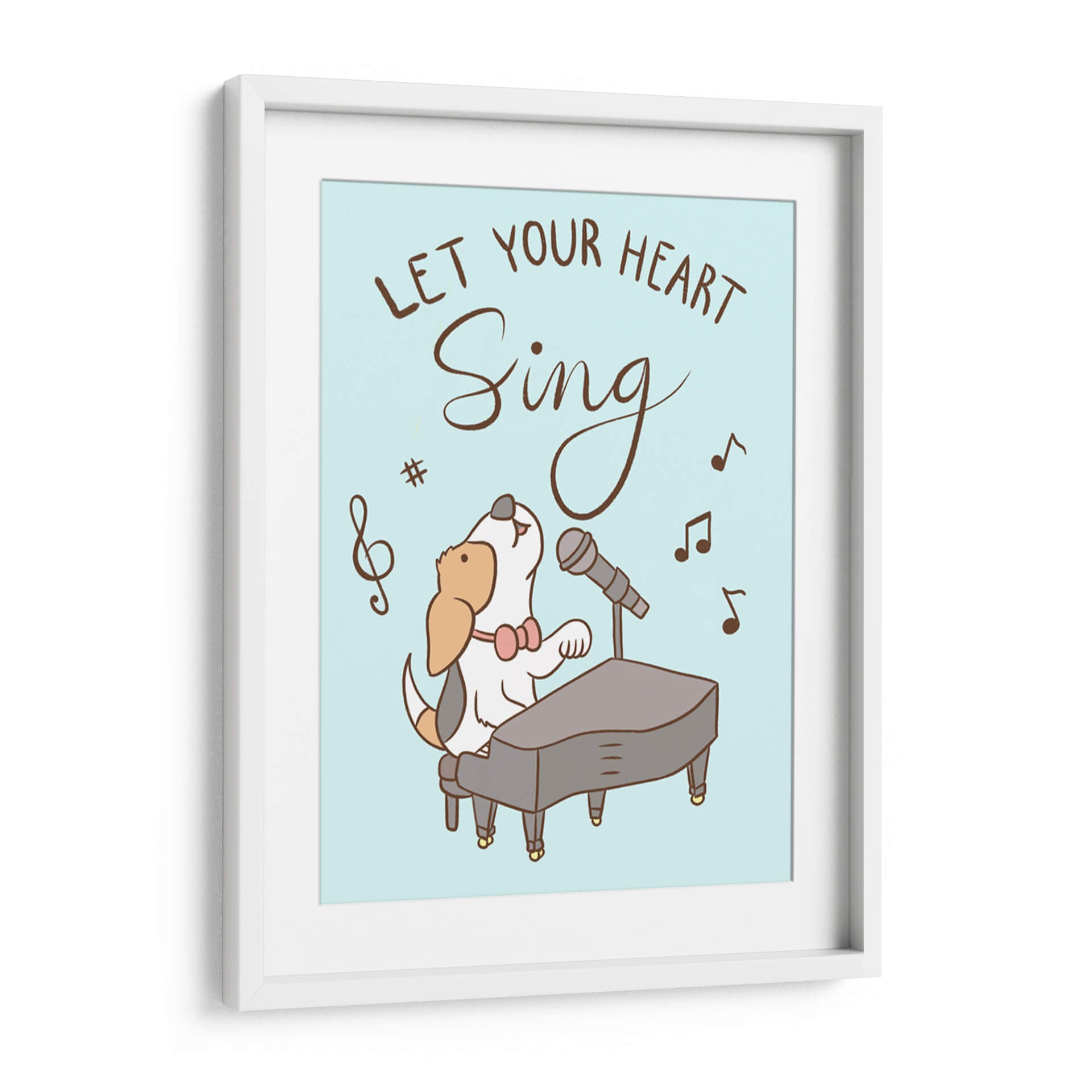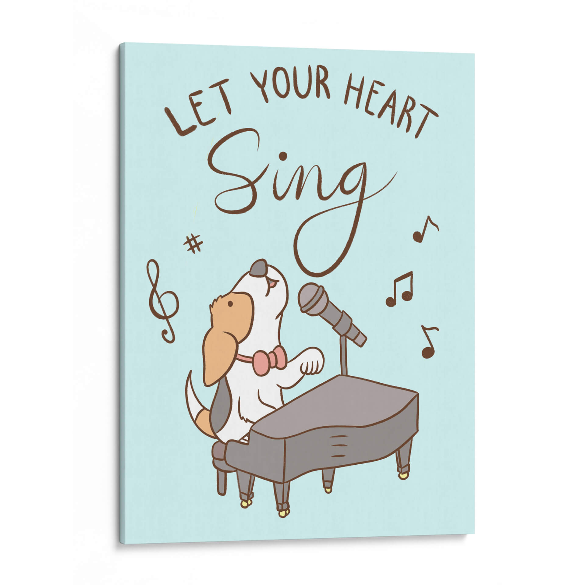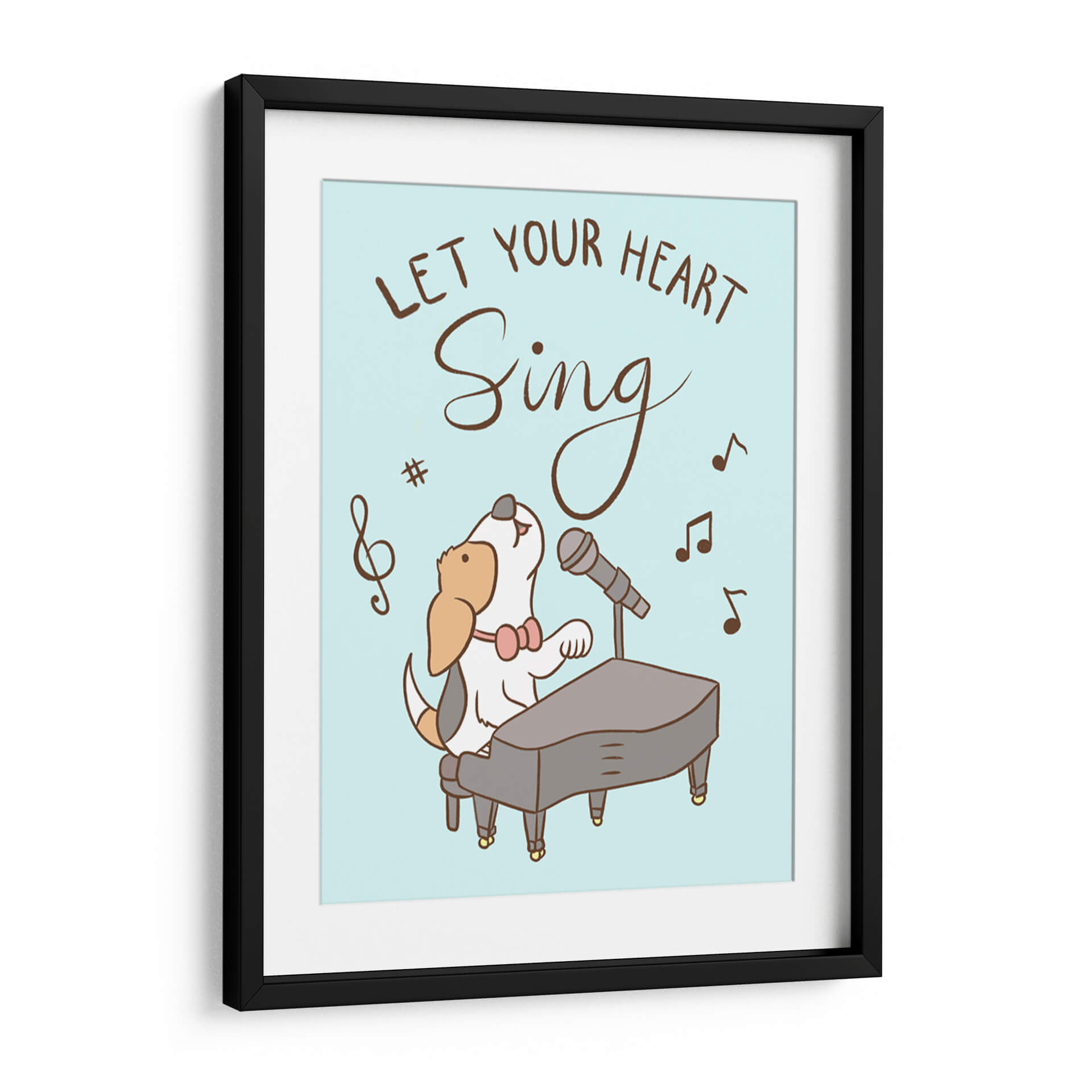 Llena tu hogar de alegría y melodía con este encantador cuadro decorativo 'Deja que tu corazón cante'. La obra presenta a un adorable perrito beagle tocando el piano frente a un micrófono, rodeado de notas musicales y un sol brillante en un fondo azul cielo. Con un estilo de ilustración infantil y colores pastel, esta pieza transmite una atmósfera de felicidad, inocencia y optimismo. La caligrafía artística del título añade un toque de elegancia y movimiento, complementando la escena lúdica. Este cuadro es perfecto para espacios que buscan un toque de calidez y personalidad, como habitaciones infantiles, salas de estar, o incluso una oficina que necesite un recordatorio de la importancia de expresar la alegría interior. Su diseño vibrante y su mensaje positivo lo convierten en un regalo ideal para amantes de los perros, músicos o cualquier persona que aprecie el arte con alma. Descubre cómo este cuadro decorativo puede transformar tu espacio y recordarte cantar con el corazón cada día.