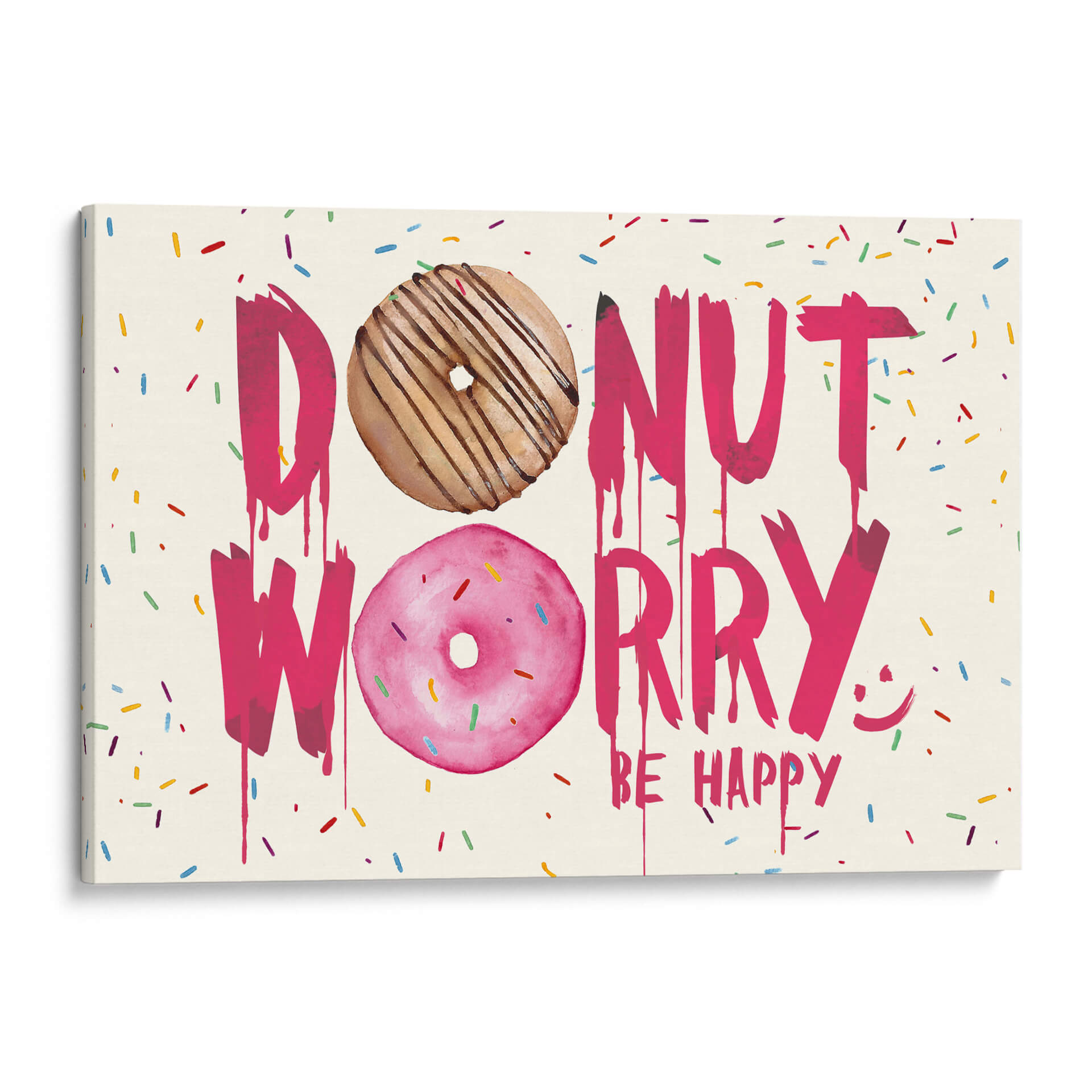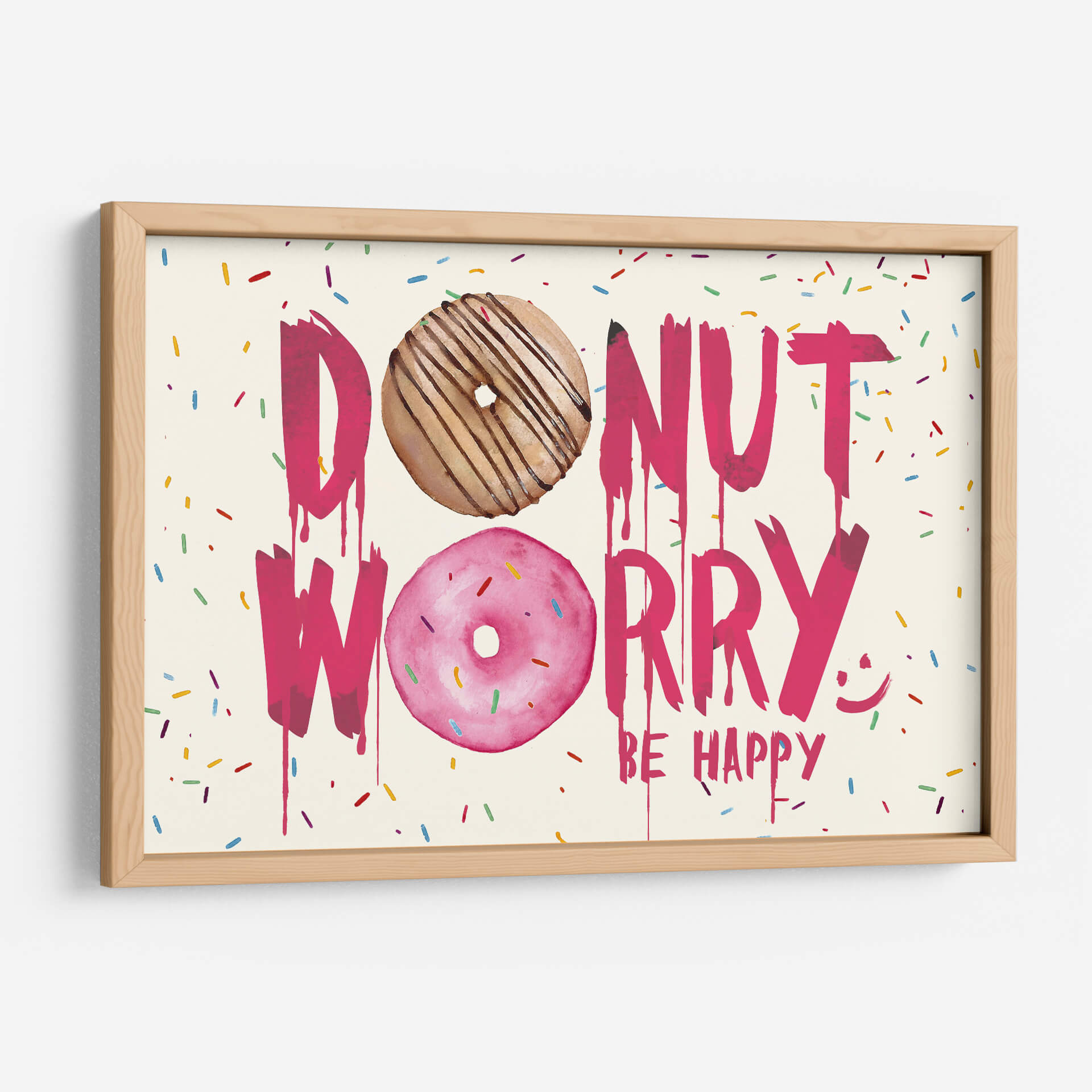 Llena tus espacios de positividad con este vibrante cuadro decorativo 'Donut worry be happy'. La obra presenta dos donuts, uno con glaseado de chocolate y otro rosa con chispas, sobre un fondo de crema con confeti multicolor salpicado. Las letras rojas y fucsias, con un estilo de acuarela que gotea, forman el inspirador mensaje 'DONUT WORRY BE HAPPY', complementado por un pequeño y alegre emoji sonriente. Este diseño lúdico y optimista, con su paleta de colores vivos y alegres, es perfecto para añadir un toque de diversión y buen humor a cualquier ambiente. Ideal para cocinas, comedores, oficinas o cualquier lugar donde se desee un recordatorio visual para afrontar la vida con una sonrisa. Su estilo contemporáneo y su mensaje universal lo convierten en una pieza decorativa que atrae miradas y fomenta una actitud positiva. Este cuadro es una excelente opción para quienes buscan arte que hable de alegría, optimismo y disfrute de los pequeños placeres de la vida, creando un ambiente acogedor y lleno de energía.
