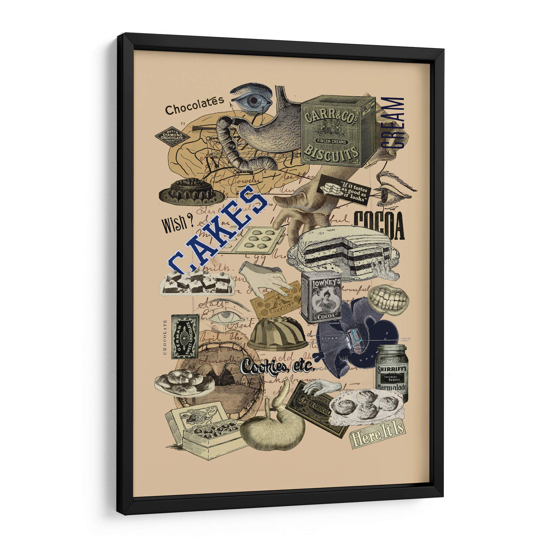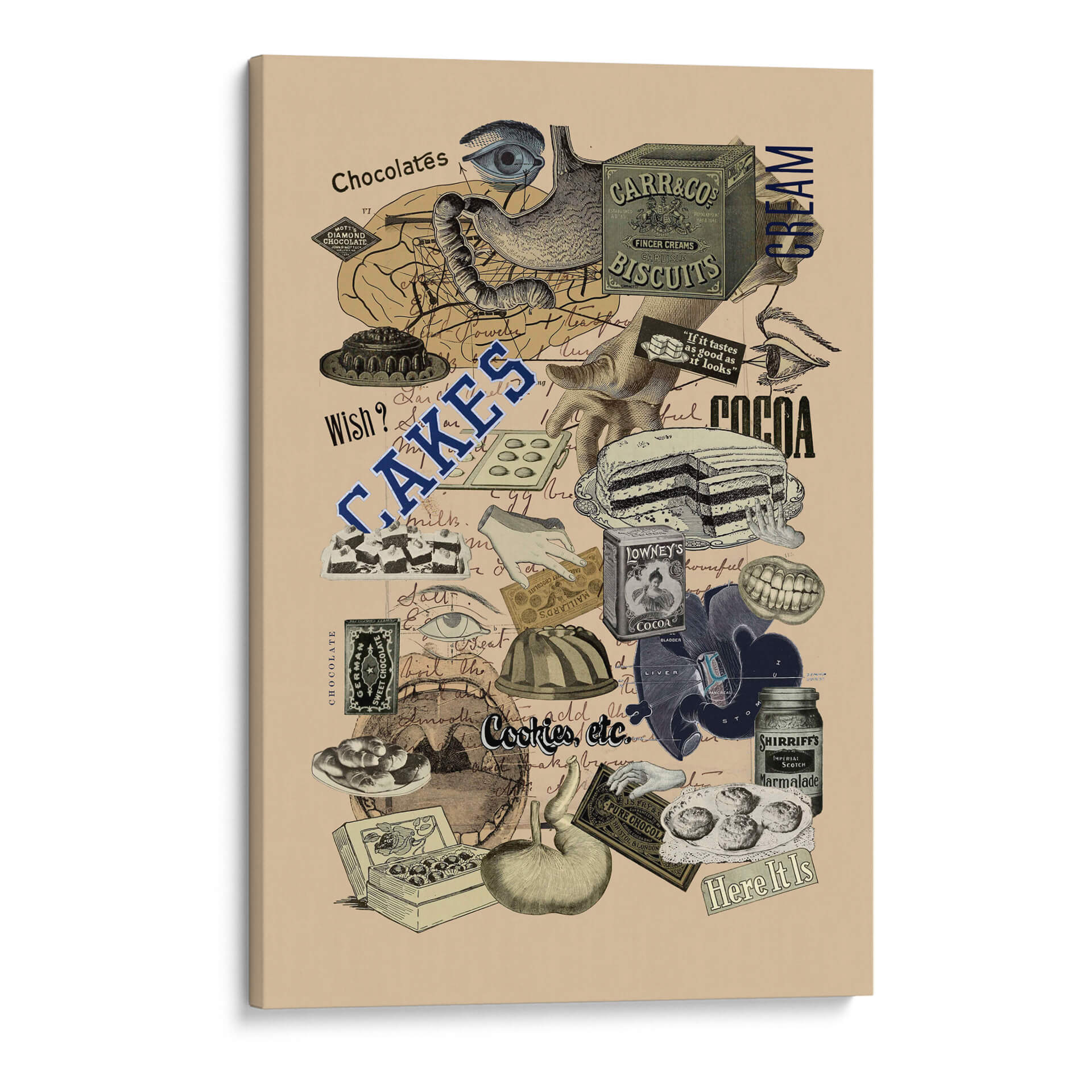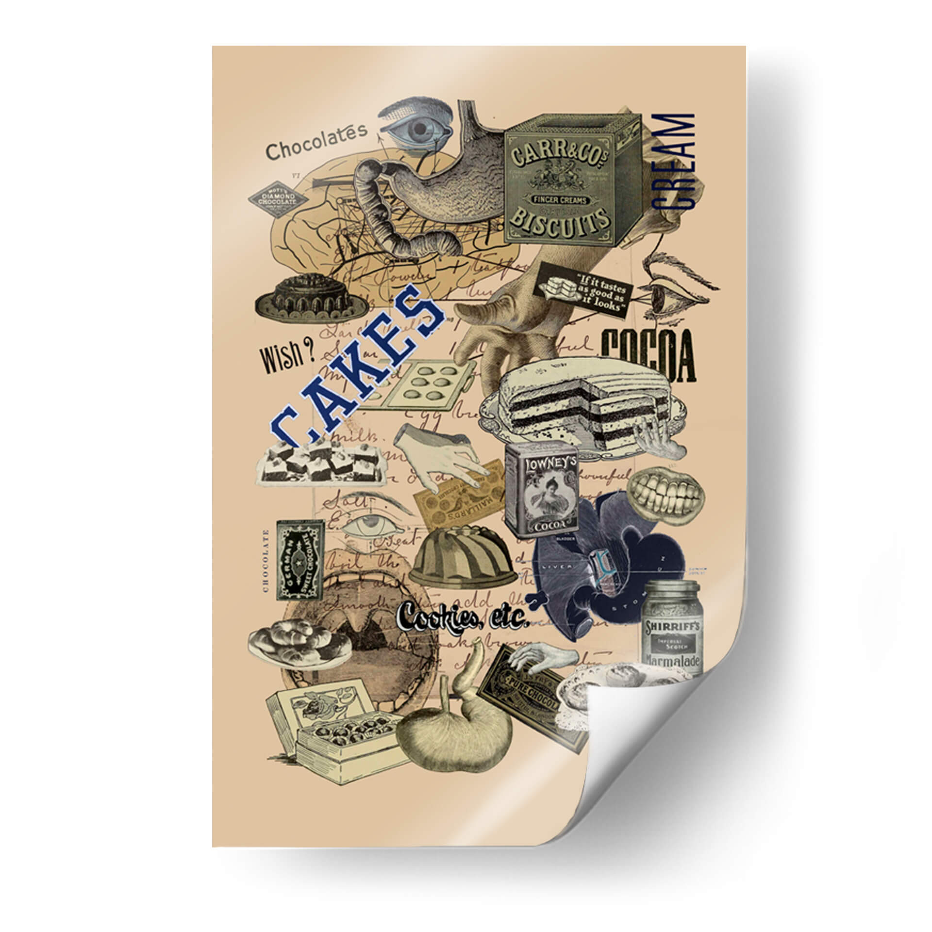 Sumérgete en el caprichoso mundo de "Dulce Adicción" de Pawel Pacholec, una obra de arte digital que fusiona lo inesperado con un toque de nostalgia. Este cuadro decorativo es un collage intrincado que juega con imágenes vintage de dulces, chocolates, galletas y pasteles, entrelazados con elementos anatómicos como un ojo y un sistema digestivo, creando una narrativa visual única y provocativa. La paleta de colores se centra en tonos sepia y marrones cálidos, evocando una sensación de tiempo pasado y confort, mientras que los toques de azul y negro aportan profundidad y contraste. La composición, aparentemente caótica pero cuidadosamente orquestada, invita a la observación detallada, descubriendo nuevas asociaciones y significados en cada elemento. "Dulce Adicción" es perfecta para añadir un toque de originalidad y conversación a tu cocina, comedor o estudio. Transforma tu espacio con este cuadro decorativo que desafía las convenciones y deleita los sentidos, ideal para quienes buscan una decoración de pared que sea a la vez intrigante y deliciosamente peculiar.