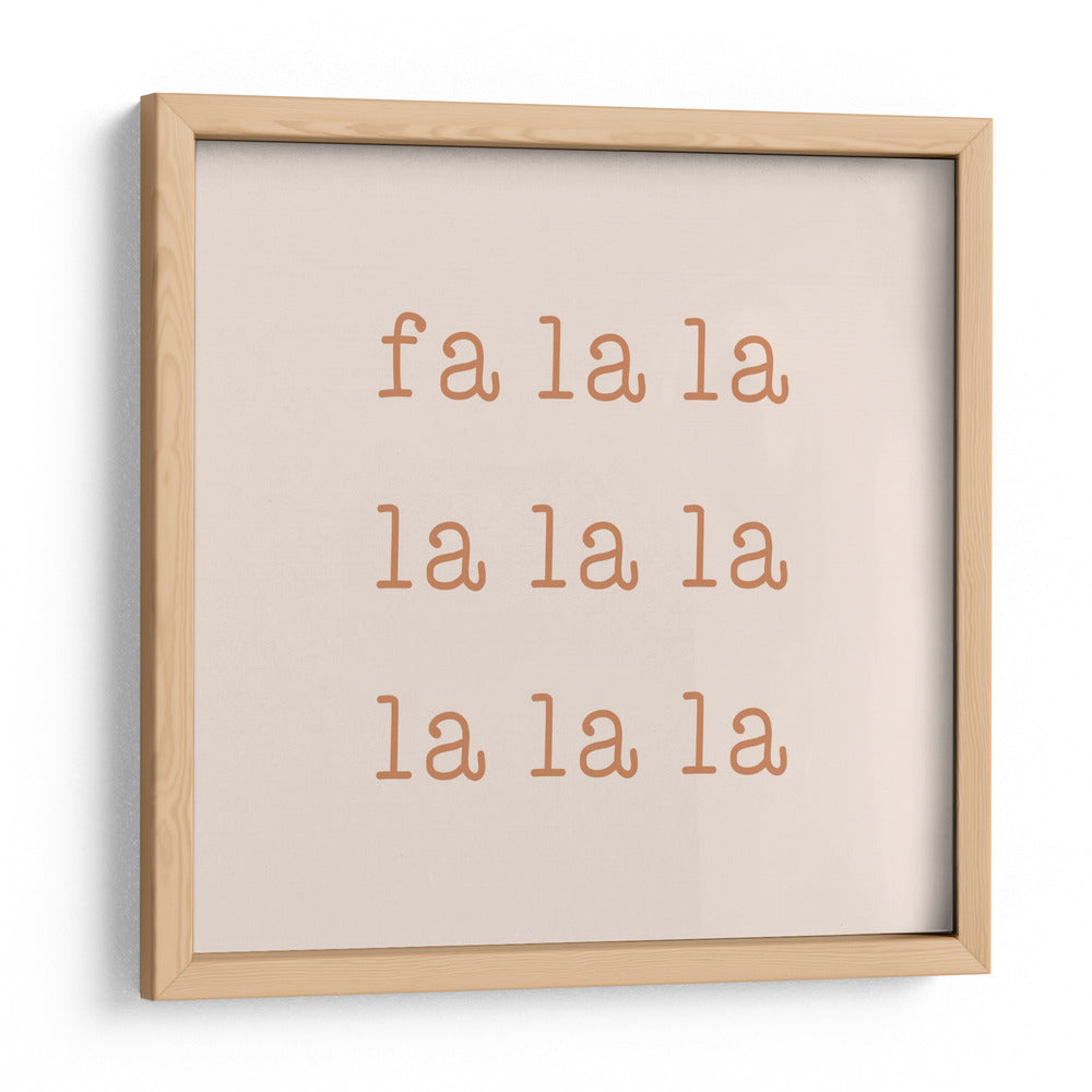 Celebra la alegría y el espíritu festivo con este cautivador cuadro decorativo "Fa La La" de Orara Studio. La obra presenta el icónico estribillo repetido en tres líneas, utilizando una tipografía suave y en tonos terracota sobre un fondo neutro de color crema. Esta pieza minimalista y moderna irradia una sensación de calidez y familiaridad, evocando recuerdos de villancicos y momentos compartidos. Su diseño limpio y elegante la convierte en una adición versátil para cualquier espacio del hogar u oficina, aportando un toque de encanto sin sobrecargar la decoración. Ideal para la temporada navideña o para mantener vivo el espíritu festivo durante todo el año, este cuadro es perfecto para añadir una nota de optimismo y ritmo a tu ambiente. Su paleta de colores neutros y terrosos se integra fácilmente con diversas decoraciones, desde lo rústico hasta lo contemporáneo. Transforma tu sala de estar, dormitorio o incluso tu espacio de trabajo con esta pieza única que inspira felicidad y celebración.