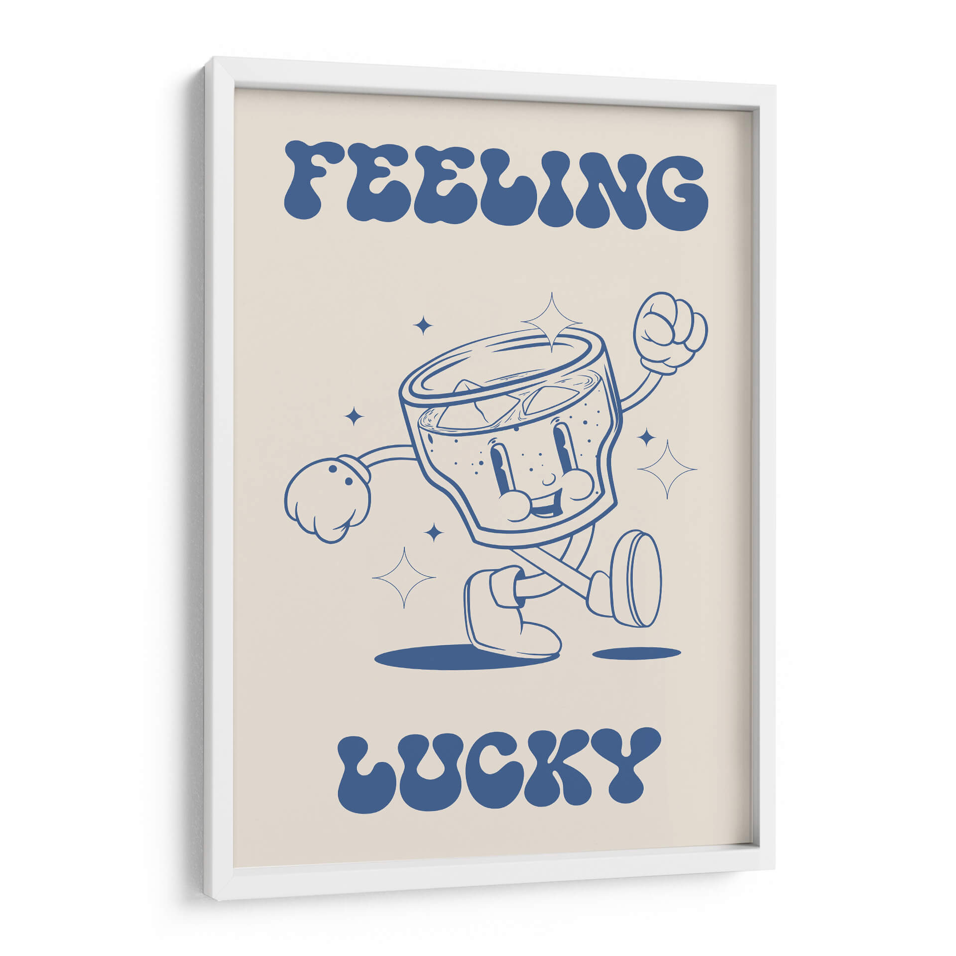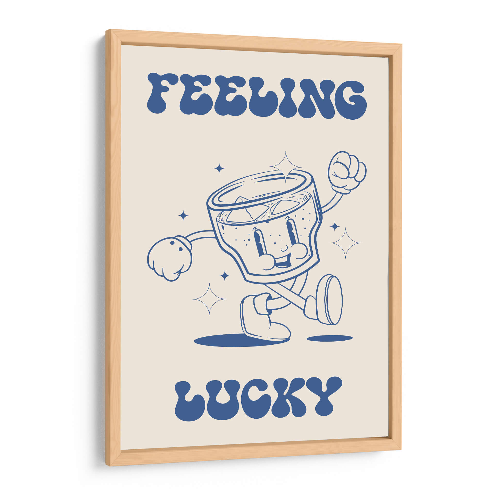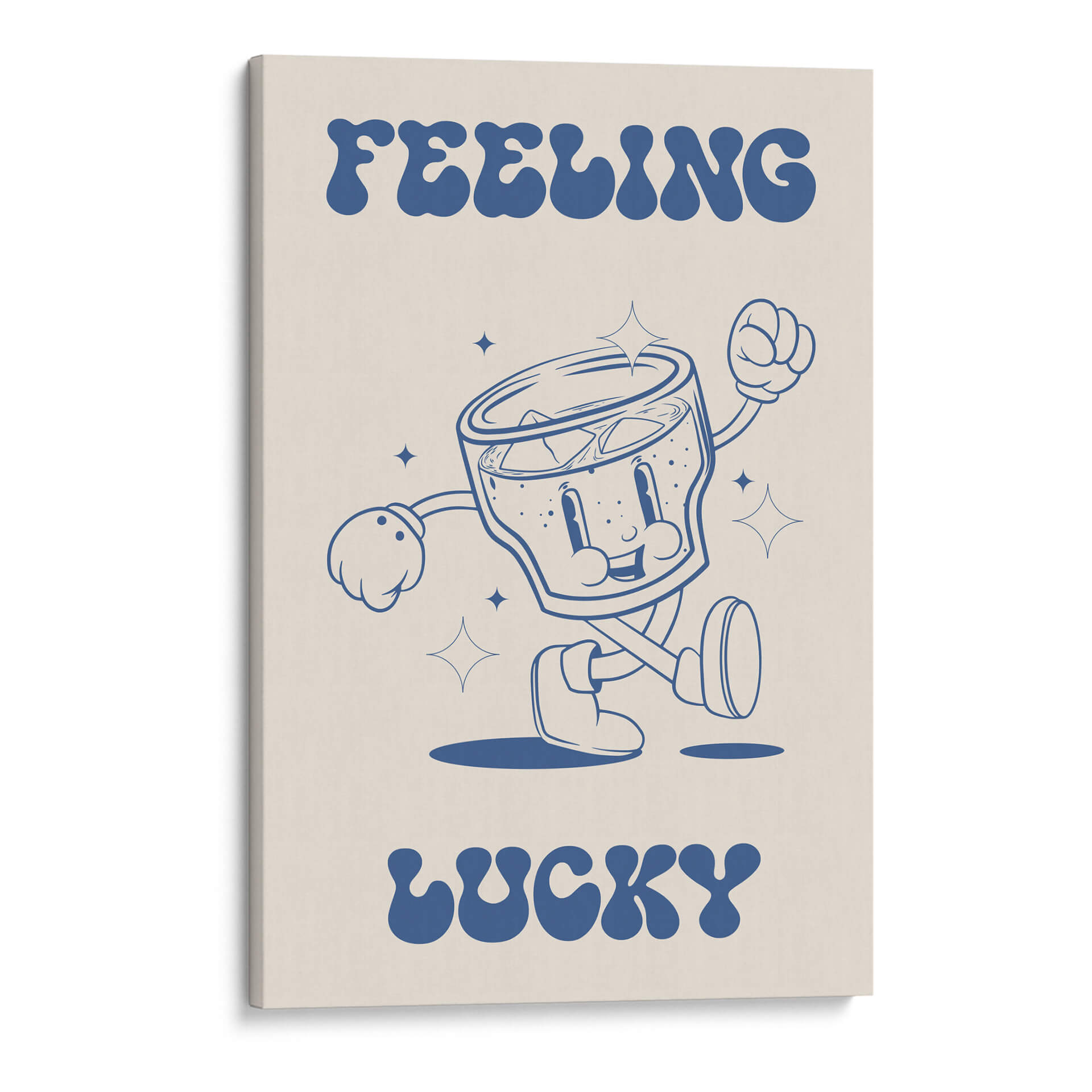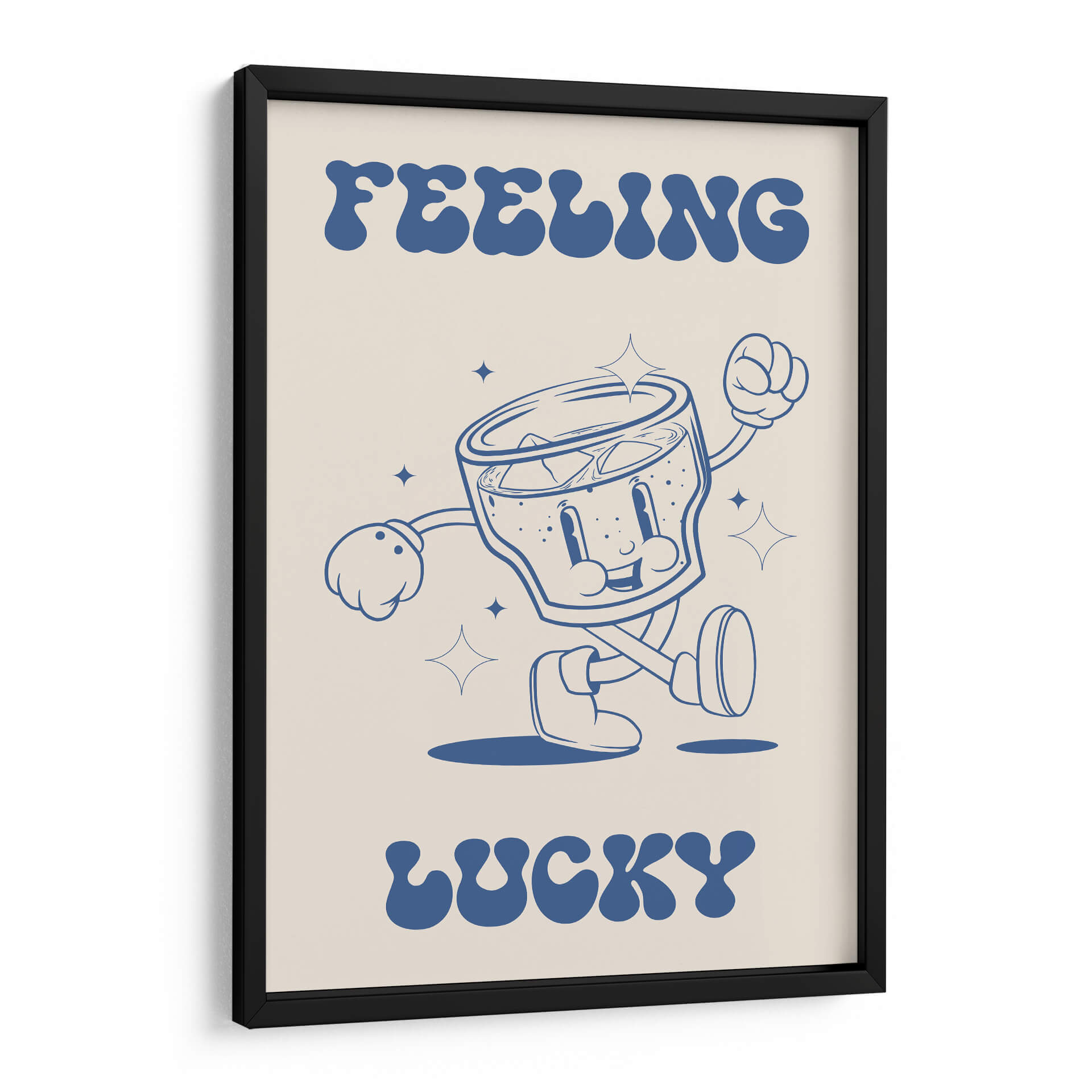 Captura la esencia de la buena fortuna y la alegría con este cautivador cuadro decorativo "Feeling Lucky" de Alina Shulhouskaya. La obra presenta una ilustración estilizada de un vaso de bebida con hielo, animado con ojos, boca y extremidades, danzando con entusiasmo. El estilo retro, que recuerda a las animaciones clásicas, se realza con una paleta de colores minimalista dominada por el azul cobalto sobre un fondo de tono neutro. Las estrellas centelleantes alrededor del personaje central añaden un toque de magia y optimismo. Este cuadro es una expresión visual de un momento de felicidad y despreocupación, ideal para infundir energía positiva en cualquier espacio. Su diseño limpio y su mensaje inspirador lo convierten en una pieza perfecta para salas de estar modernas, oficinas o cualquier lugar donde se desee un toque de humor y buena vibra. El texto "Feeling Lucky" en una tipografía groovy complementa la imagen, reforzando el tema de la suerte y la celebración. Añade un toque de personalidad y optimismo a tu decoración con esta obra única que evoca sonrisas y conversaciones.