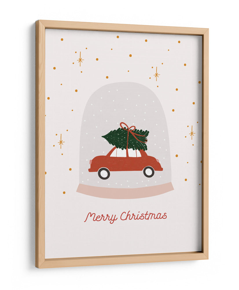 Celebra la temporada festiva con este encantador cuadro decorativo 'Feliz Navidad' de Menina Lisboa. La obra captura la magia de las fiestas a través de una escena lúdica y nostálgica: un coche vintage de color rojo transporta un exuberante árbol de Navidad, todo encapsulado dentro de una esfera de cristal que evoca un muñeco de nieve. La paleta de colores se centra en tonos suaves y cálidos, con el rojo vibrante del coche contrastando delicadamente con el verde profundo del abeto y los detalles dorados de pequeñas estrellas y puntos dispersos que añaden un toque de brillo y celebración. El estilo es un arte digital con un toque ilustrativo, limpio y moderno, que transmite una sensación de alegría, anticipación y el espíritu reconfortante de la Navidad. Este cuadro es perfecto para añadir un acento festivo y lleno de encanto a tu sala de estar, comedor o incluso una oficina, creando un ambiente acogedor y lleno de espíritu navideño. Su diseño sencillo pero efectivo lo convierte en una pieza versátil que complementa diversos estilos de decoración, desde la más clásica hasta la contemporánea. Ideal para quienes buscan infundir sus espacios con la calidez y la ilusión de las fiestas.