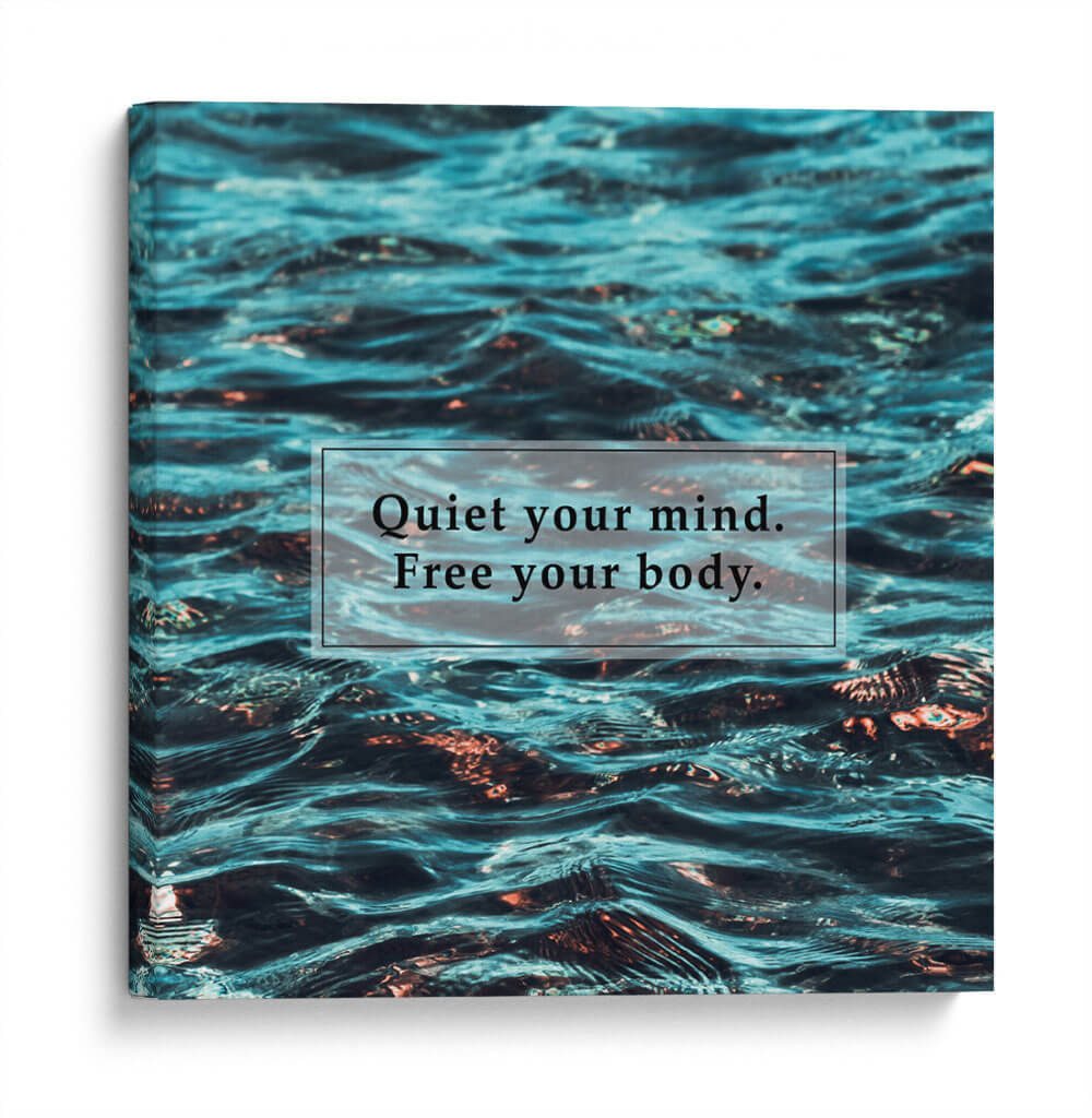 Sumérgete en la serenidad con "Libera tu cuerpo", una obra de arte que captura la fluidez y la profundidad del agua en movimiento. Los vibrantes tonos azules, salpicados de reflejos cobrizos, crean una atmósfera de calma y contemplación, invitando a la introspección. La textura del agua, con sus sutiles olas y remolinos, evoca una sensación de movimiento perpetuo y relajación profunda. Este cuadro decorativo, con su mensaje inspirador "Quiet your mind. Free your body.", es perfecto para cualquier espacio que busque transmitir paz y bienestar. Ideal para tu sala de estar, dormitorio o estudio, este diseño abstracto se integra armoniosamente en decoraciones modernas y minimalistas, aportando un toque de naturaleza y tranquilidad. Transforma tu hogar en un santuario de paz y deja que la belleza del agua cure tu alma. Una pieza que no solo embellece, sino que también inspira calma y libertad.
