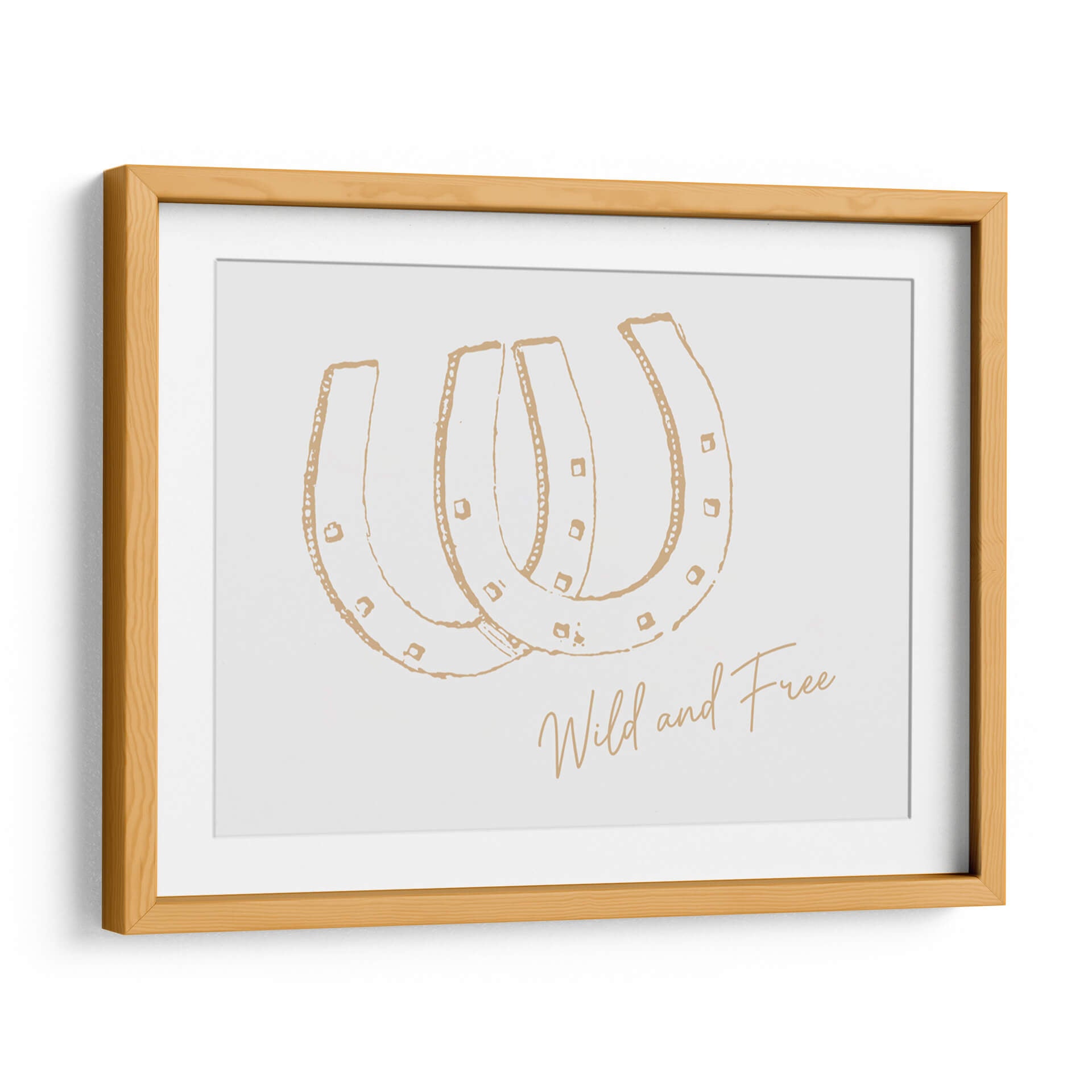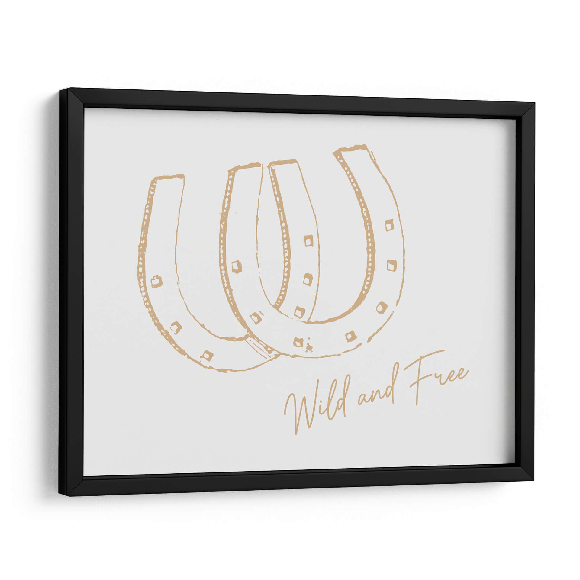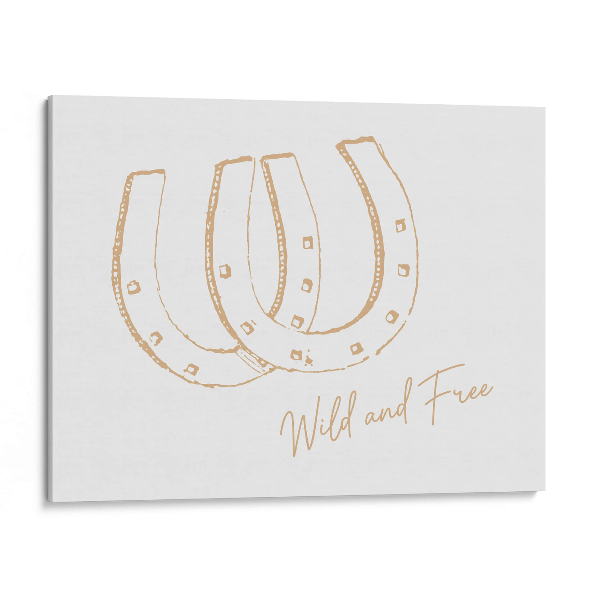 Inyecta un espíritu de libertad y audacia en tu hogar con este cautivador cuadro decorativo titulado "Herradura Wild and Free Neutral". Esta obra de arte, con su diseño minimalista y elegante, presenta la icónica forma de herradura dibujada en un delicado tono dorado sobre un fondo neutro y luminoso. La sencillez de la composición, acentuada por detalles sutiles como pequeños cuadrados y puntos, evoca una sensación de movimiento y energía contenida. La frase "Wild and Free" (Salvaje y Libre) escrita en una caligrafía fluida y artística, refuerza el mensaje de independencia y aventura. Este cuadro es una elección perfecta para quienes buscan añadir un toque de estilo bohemio, rústico o contemporáneo a sus espacios. Ideal para salones, dormitorios, entradas o incluso oficinas, este diseño versátil complementa una amplia gama de decoraciones, desde las más rústicas hasta las más modernas, aportando un aire de optimismo y carácter. Transforma cualquier pared en una declaración de intenciones con esta pieza única que celebra la esencia de la libertad.
