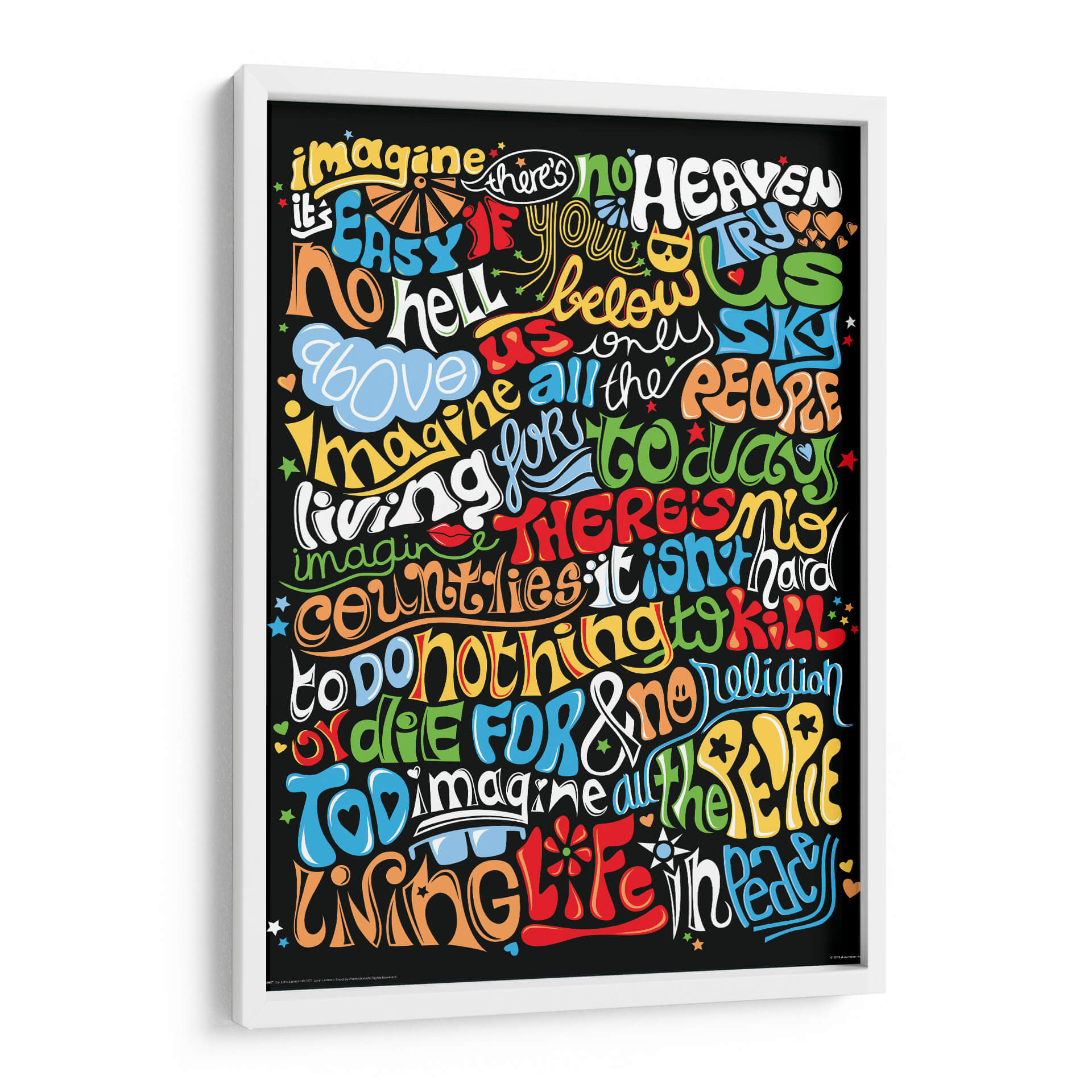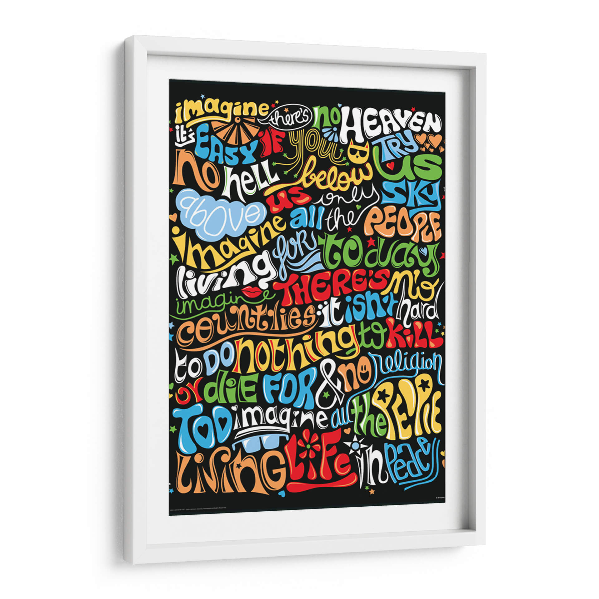 Sumérgete en un mensaje atemporal de unidad y esperanza con este vibrante cuadro decorativo inspirado en la icónica canción "Imagine". La obra "Imagine" de Nour Tohme es una explosión de color y tipografía audaz sobre un fondo oscuro, que captura la esencia de una visión utópica. Cada palabra está diseñada con un estilo único, desde las formas suaves y redondeadas hasta las letras más juguetonas, creando una composición dinámica y llena de energía. Los colores primarios y brillantes contrastan maravillosamente con el negro, atrayendo la mirada hacia las frases que invitan a la reflexión sobre la paz, la ausencia de divisiones y la posibilidad de un mundo mejor. Este cuadro decorativo es perfecto para inspirar conversaciones y añadir un toque de optimismo a cualquier espacio, ya sea una sala de estar moderna, una oficina creativa o un dormitorio que busque un recordatorio diario de los ideales universales. Es una pieza de arte contemporáneo que no solo embellece, sino que también comunica un poderoso mensaje de unión.