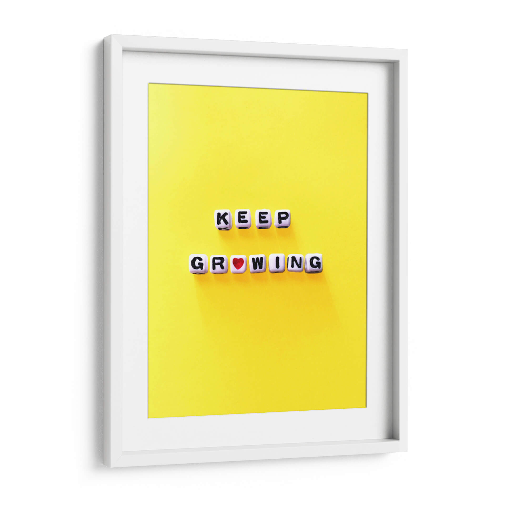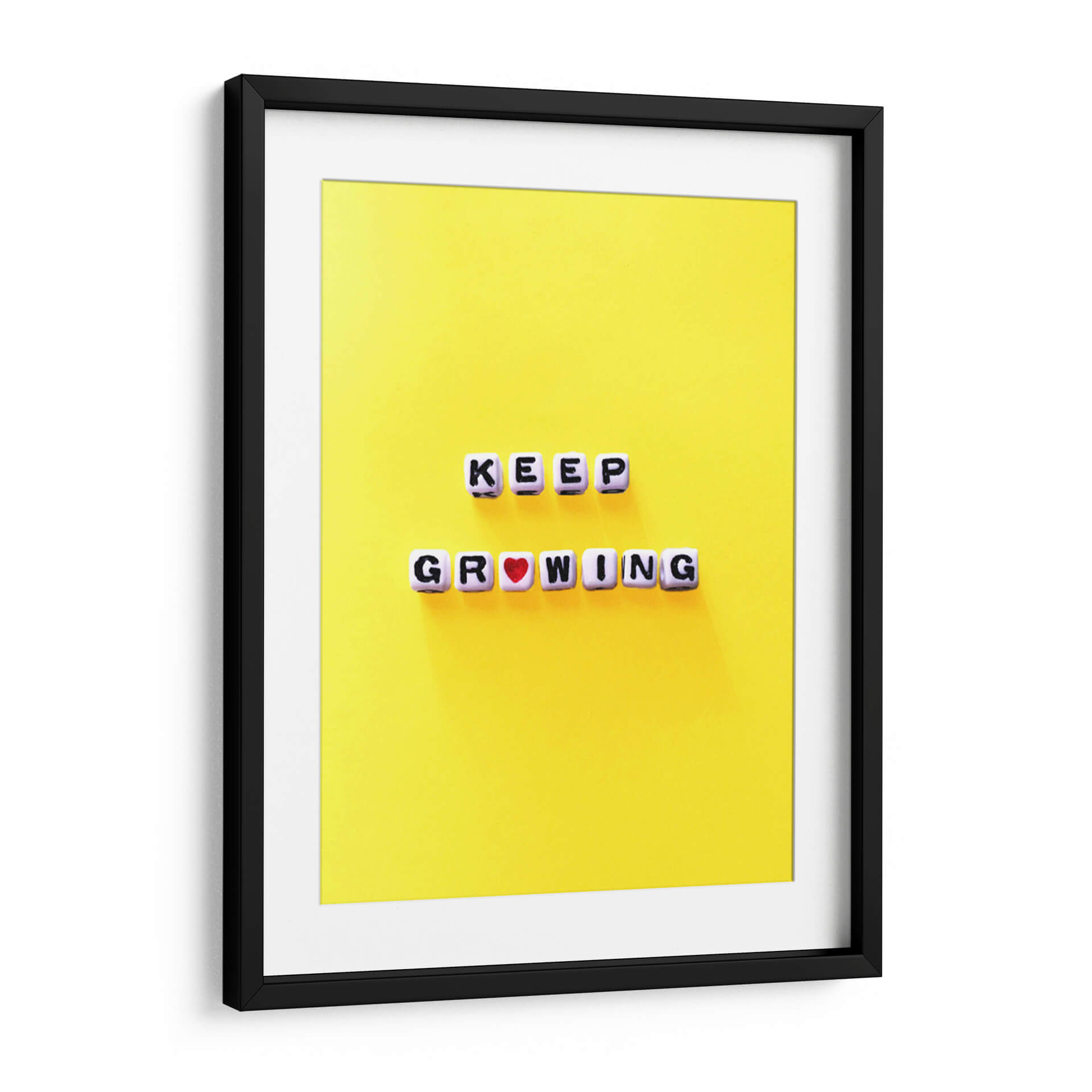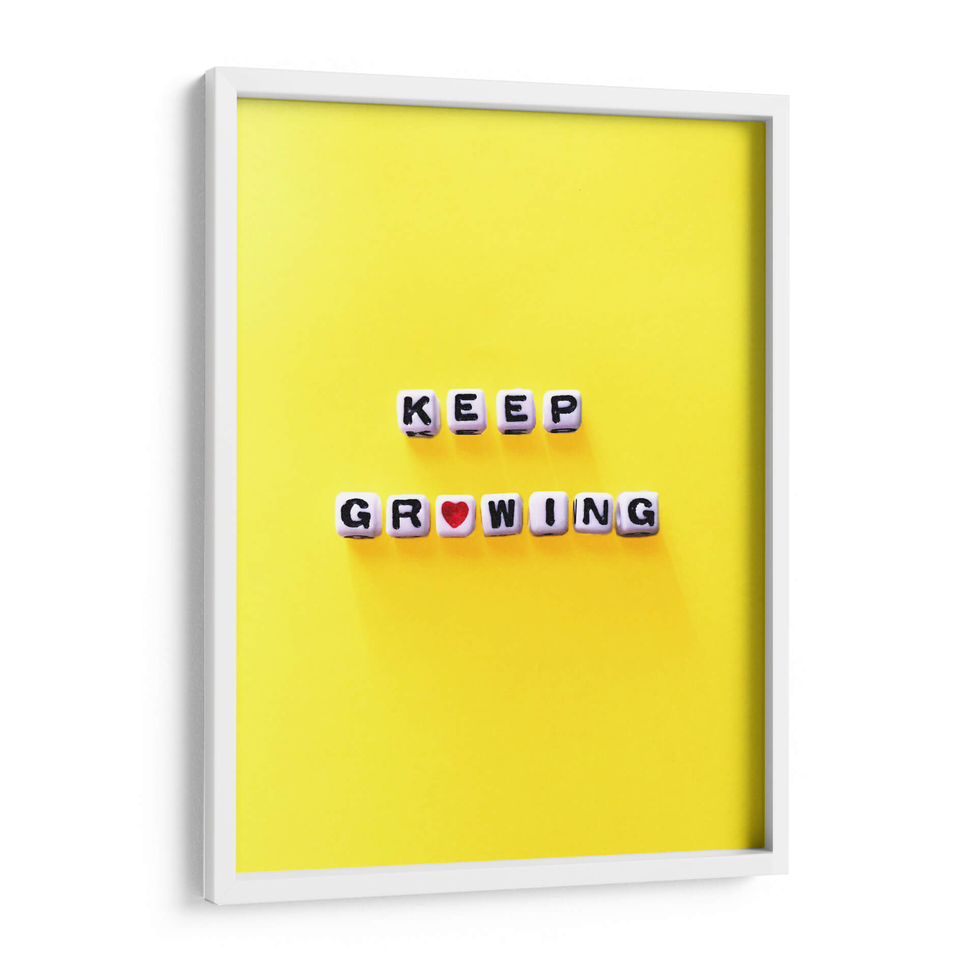Inyecta una dosis de optimismo y crecimiento personal a tu espacio con este cautivador cuadro decorativo que reza "Keep Growing". Sobre un vibrante fondo amarillo que irradia energía y positividad, las letras blancas y negras, dispuestas en dos líneas, componen un mensaje inspirador. La palabra "GROWING" incluye un sutil pero significativo corazón rojo, añadiendo un toque de calidez y amor al concepto de progreso. Esta obra de arte moderna y minimalista es perfecta para quienes buscan un recordatorio visual para seguir avanzando, aprendiendo y evolucionando. Su composición limpia y su paleta de colores llamativa la convierten en un acento ideal para cualquier hogar u oficina, desde estudios creativos hasta espacios de coworking. Este cuadro decorativo no es solo una pieza de arte, sino una declaración de intenciones, una invitación a abrazar el cambio y a celebrar cada etapa del desarrollo personal y profesional. Dale vida a tus paredes con este mensaje de aliento que te acompañará día tras día, fomentando una mentalidad de crecimiento constante y una actitud proactiva ante la vida.