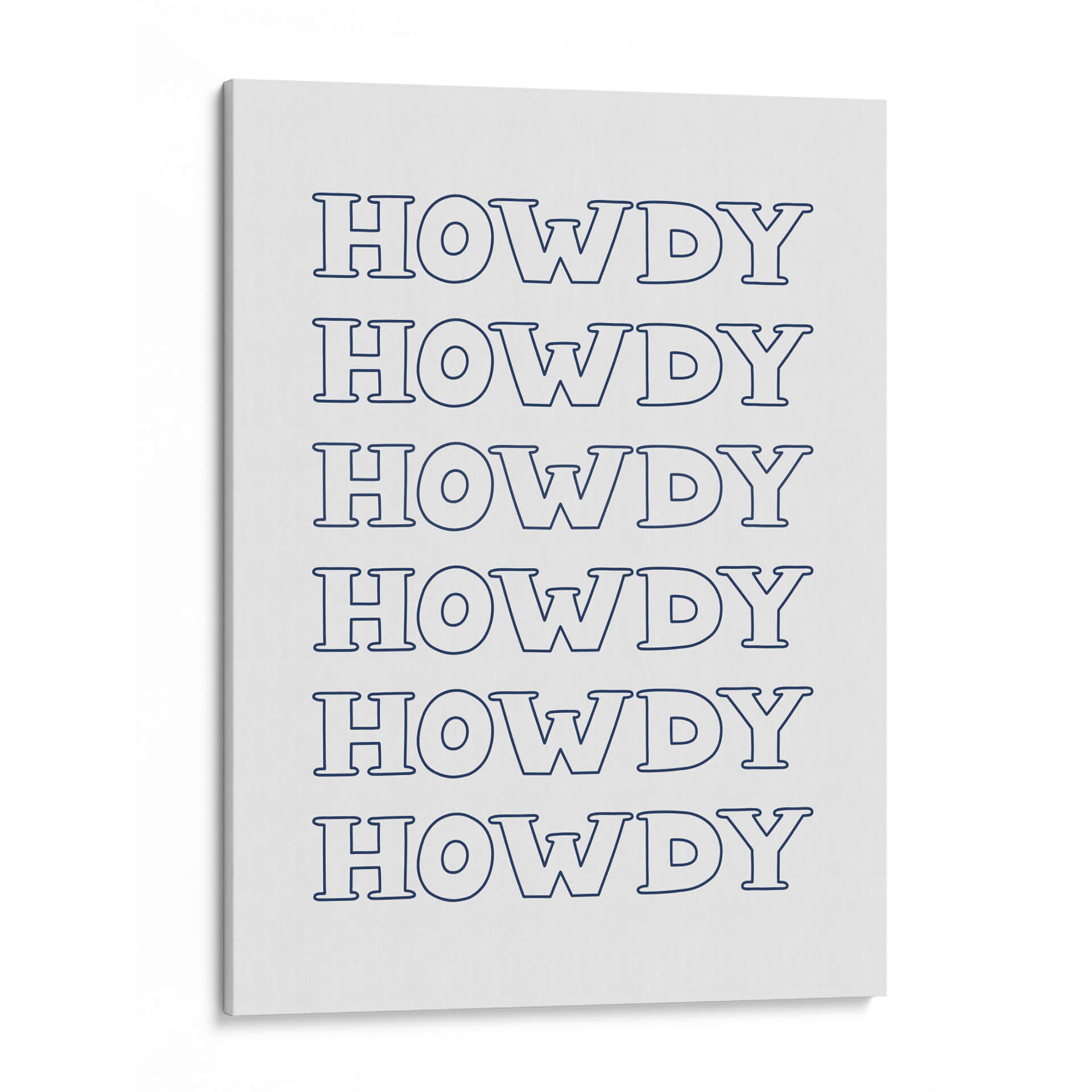 Inyecta una dosis de bienvenida y estilo único a tu espacio con "Navy Blue Howdy", un cuadro decorativo que captura la esencia de la calidez con un diseño moderno. Esta obra presenta la palabra "Howdy" repetida en un vibrante azul marino sobre un fondo neutro y limpio, creando un impacto visual audaz y minimalista. Su composición tipográfica es directa y efectiva, invitando a la conversación y añadiendo un toque de personalidad a cualquier pared. Ideal para recibidores, salas de estar, oficinas o incluso espacios comerciales que buscan una declaración de bienvenida memorable. El contraste entre el azul profundo y el blanco puro genera una estética contemporánea que se adapta a una variedad de estilos decorativos, desde el moderno hasta el rústico chic. Este cuadro decorativo no solo embellece, sino que también comunica una actitud amigable y acogedora, convirtiéndose en un punto focal lleno de carácter y estilo.
