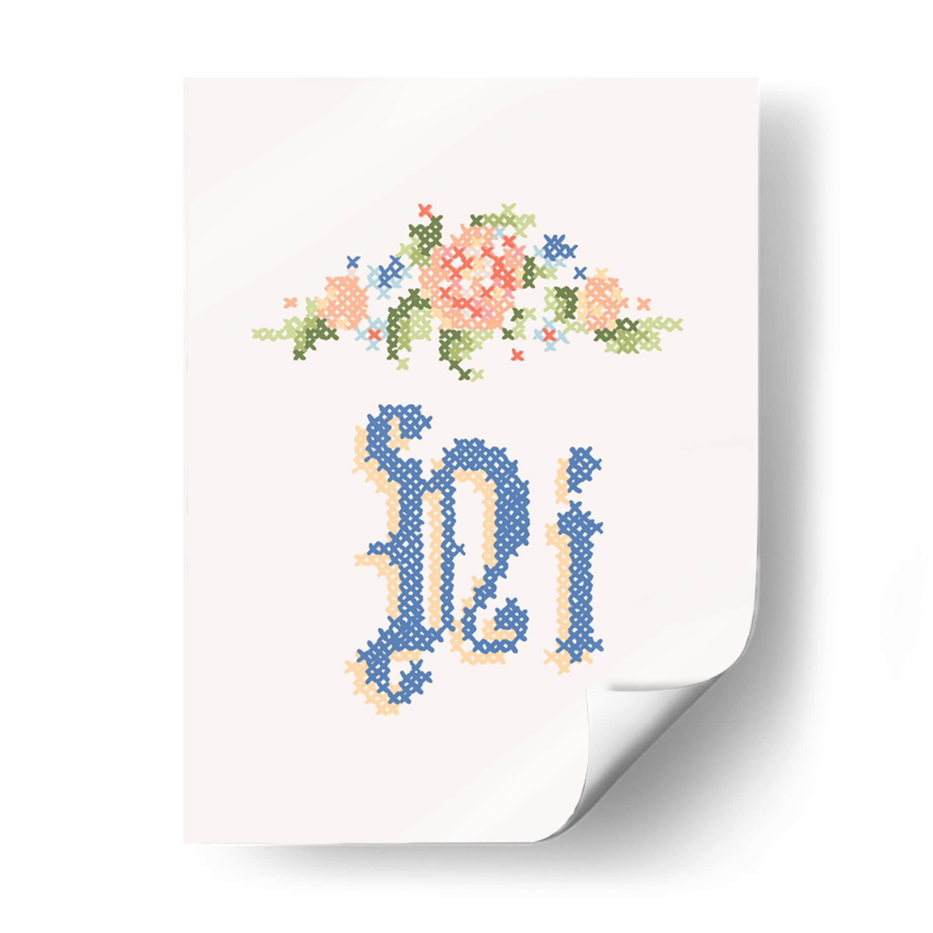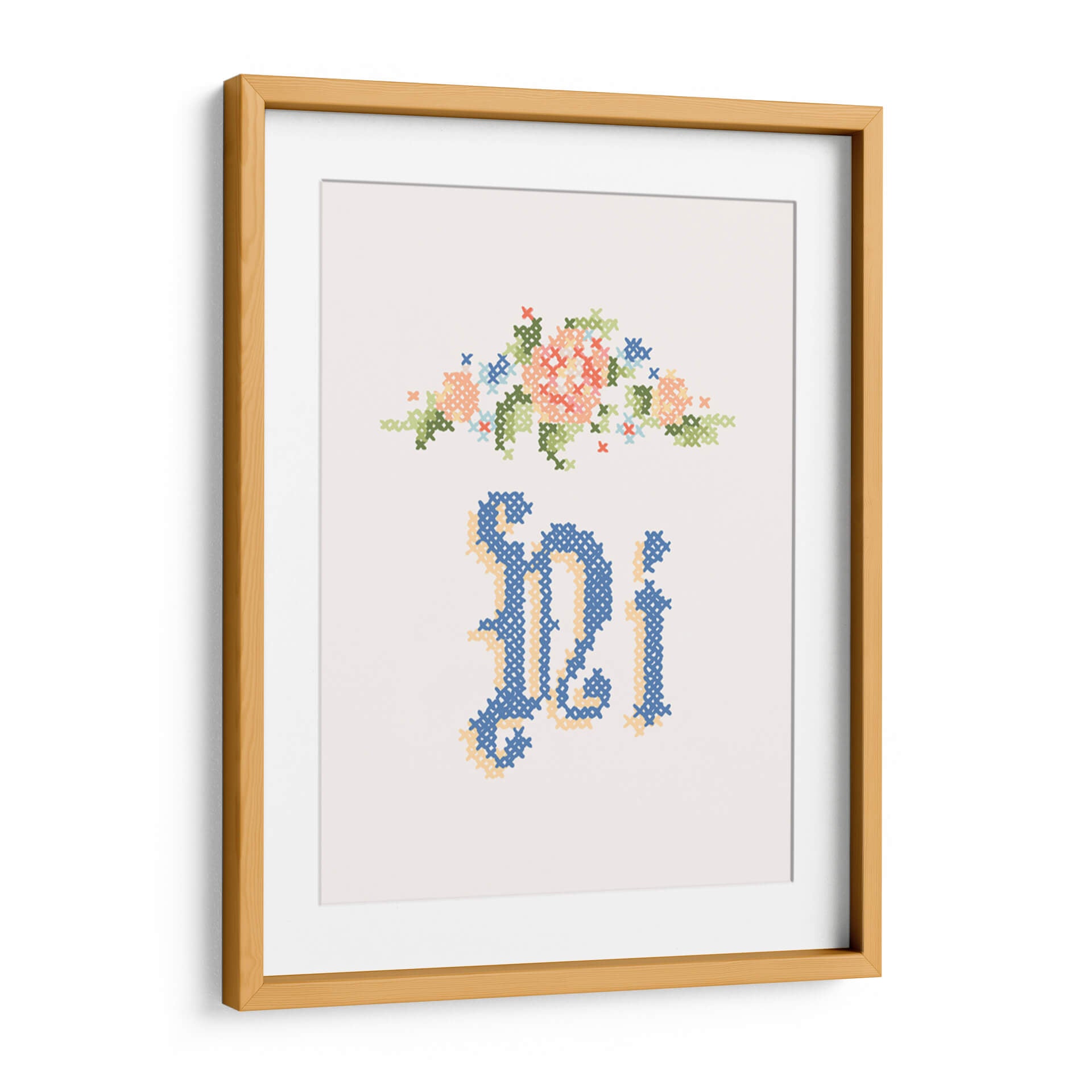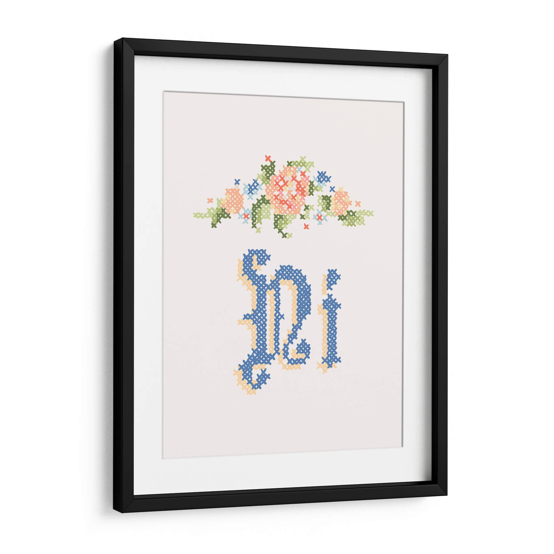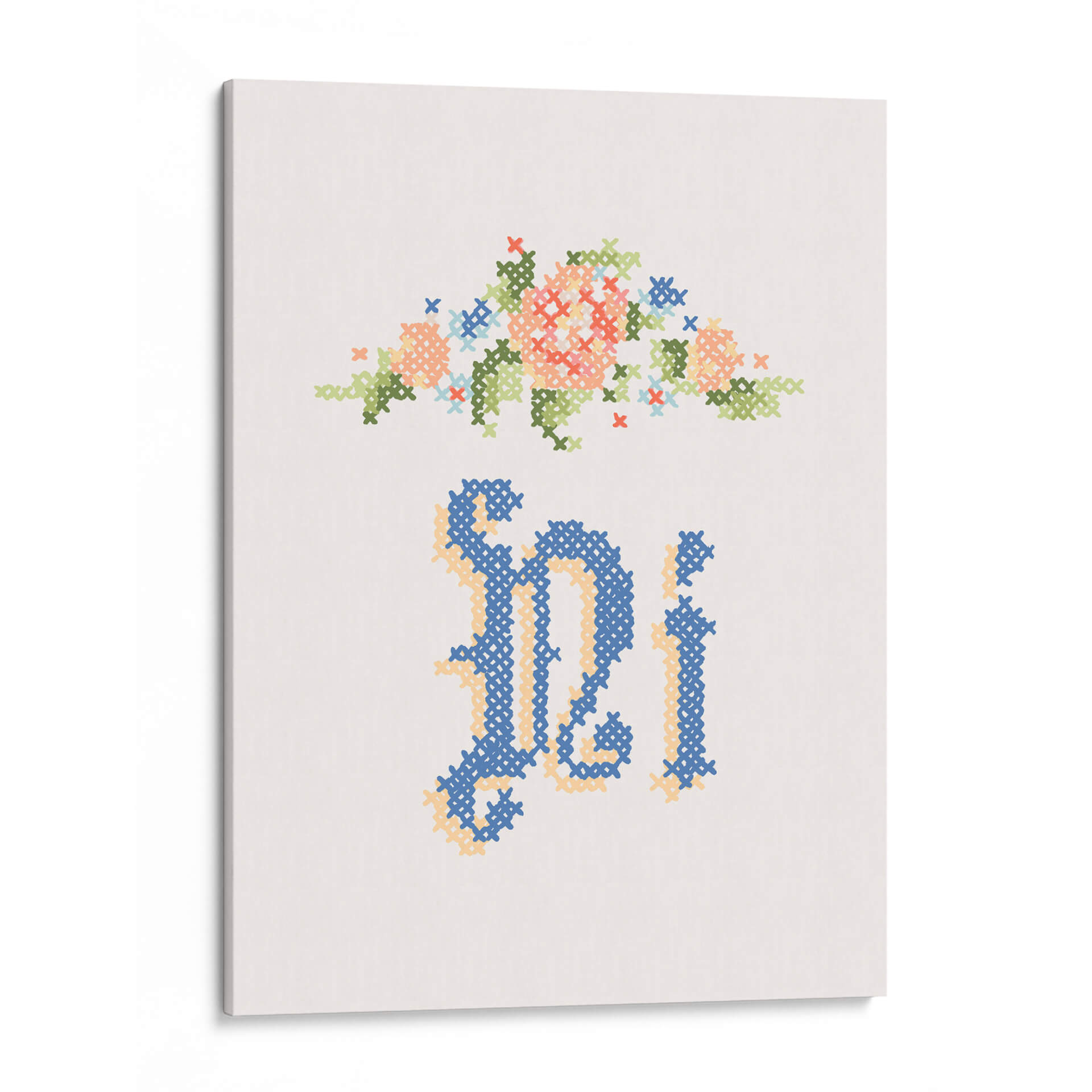 Sumérgete en la delicadeza y el encanto del cuadro decorativo "Ni" de Florent Bodart. Esta obra, inspirada en la técnica del bordado a punto de cruz, presenta un delicado arreglo floral en tonos pastel, como coral, verde menta y azul cielo, coronando una elegante caligrafía en un profundo azul marino y acentos dorados. La pieza evoca una sensación de nostalgia y artesanía, perfecta para añadir un toque de calidez y sofisticación a cualquier espacio. Su composición minimalista y la paleta de colores suave la convierten en una adición ideal para salas de estar, dormitorios o incluso estudios, aportando un aire de tranquilidad y belleza artesanal. Este cuadro decorativo es una invitación a la contemplación, fusionando lo tradicional con un estilo contemporáneo para crear una pieza única que capturará miradas y conversaciones. Ideal para quienes aprecian el arte detallado y los motivos florales con un toque moderno.