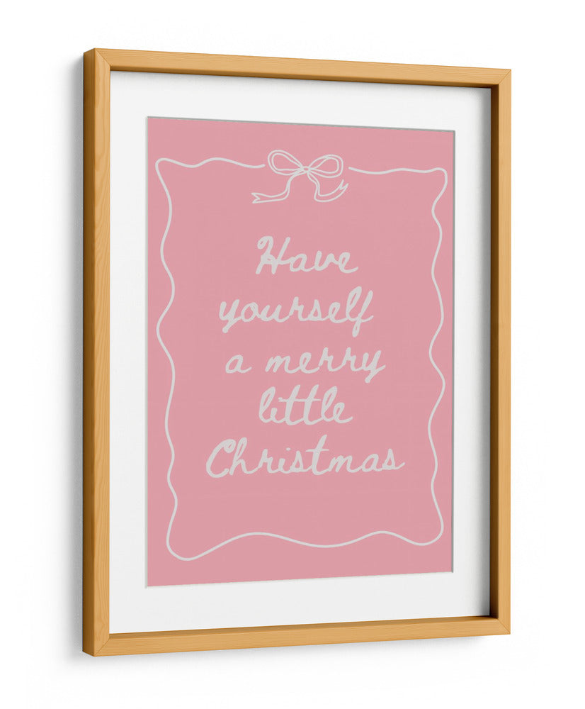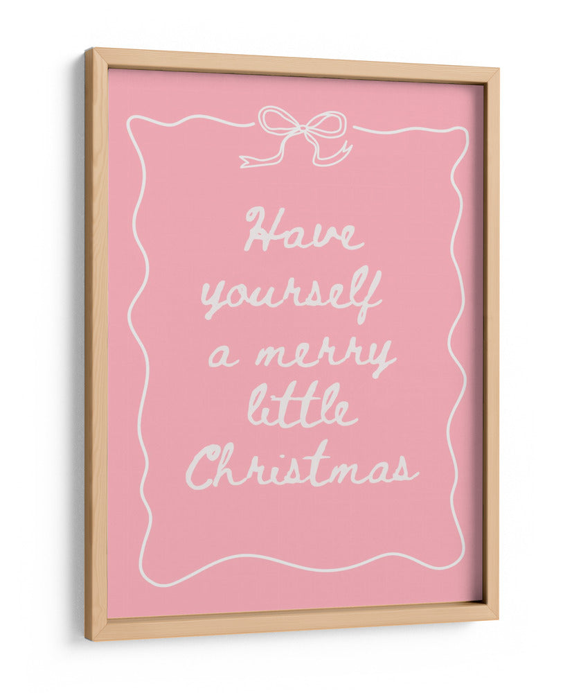 Celebra la temporada con un toque de encanto y dulzura gracias a este cuadro decorativo "Que tengas una feliz navidad - Blanco sobre rosa" de Jolly and Dash. La obra presenta un fondo rosa pastel vibrante, adornado con un delicado borde blanco curvilíneo y un lazo estilizado en la parte superior, que enmarcan un mensaje navideño escrito en una tipografía blanca elegante y fluida: "Have yourself a merry little Christmas". El estilo es decididamente moderno y minimalista, con un enfoque en la caligrafía y el color. La combinación del rosa alegre con el blanco limpio crea una atmósfera festiva pero serena, perfecta para añadir un toque de alegría estacional a cualquier espacio. Ideal para decorar salas de estar, dormitorios, oficinas o incluso espacios comerciales que busquen una decoración navideña con un giro contemporáneo y sofisticado. Este cuadro decorativo no solo transmite un mensaje de buenos deseos, sino que también aporta una explosión de color y estilo, convirtiéndose en un punto focal encantador para tu hogar u oficina durante las fiestas y más allá. Su diseño atemporal y su mensaje positivo lo convierten en una elección perfecta para quienes buscan arte que inspire sonrisas y calidez.