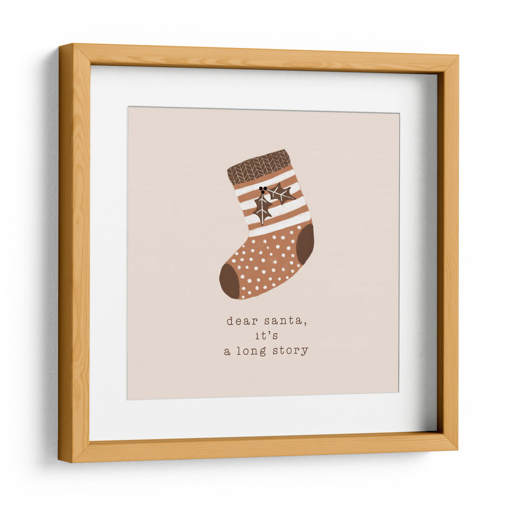 Descubre la encantadora obra de arte "Querido Santa Es Una Larga Historia" de Orara Studio, un cuadro decorativo que evoca nostalgia y calidez. Esta pieza, con su paleta de colores terrosos y suaves tonos beige, presenta un diseño minimalista centrado en un calcetín navideño ilustrado con detalles de hojas de acebo y patrones geométricos. La tipografía delicada que acompaña la imagen, "dear santa, it's a long story", añade un toque de humor y cuento invernal, invitando a la reflexión sobre las narrativas personales. Su estilo contemporáneo y diseño sencillo la convierten en una adición perfecta para cualquier espacio que busque un acento acogedor y con carácter. Ideal para salones, dormitorios o incluso oficinas, este cuadro decorativo aporta una atmósfera de tranquilidad y un guiño sutil a la temporada festiva. Transforma tu hogar con este lienzo único que combina arte gráfico y sentimiento, creando un ambiente memorable y lleno de encanto. La sencillez de su composición y la elección de colores neutros aseguran que se integre armoniosamente con diversas decoraciones, aportando una dosis de personalidad sin abrumar.