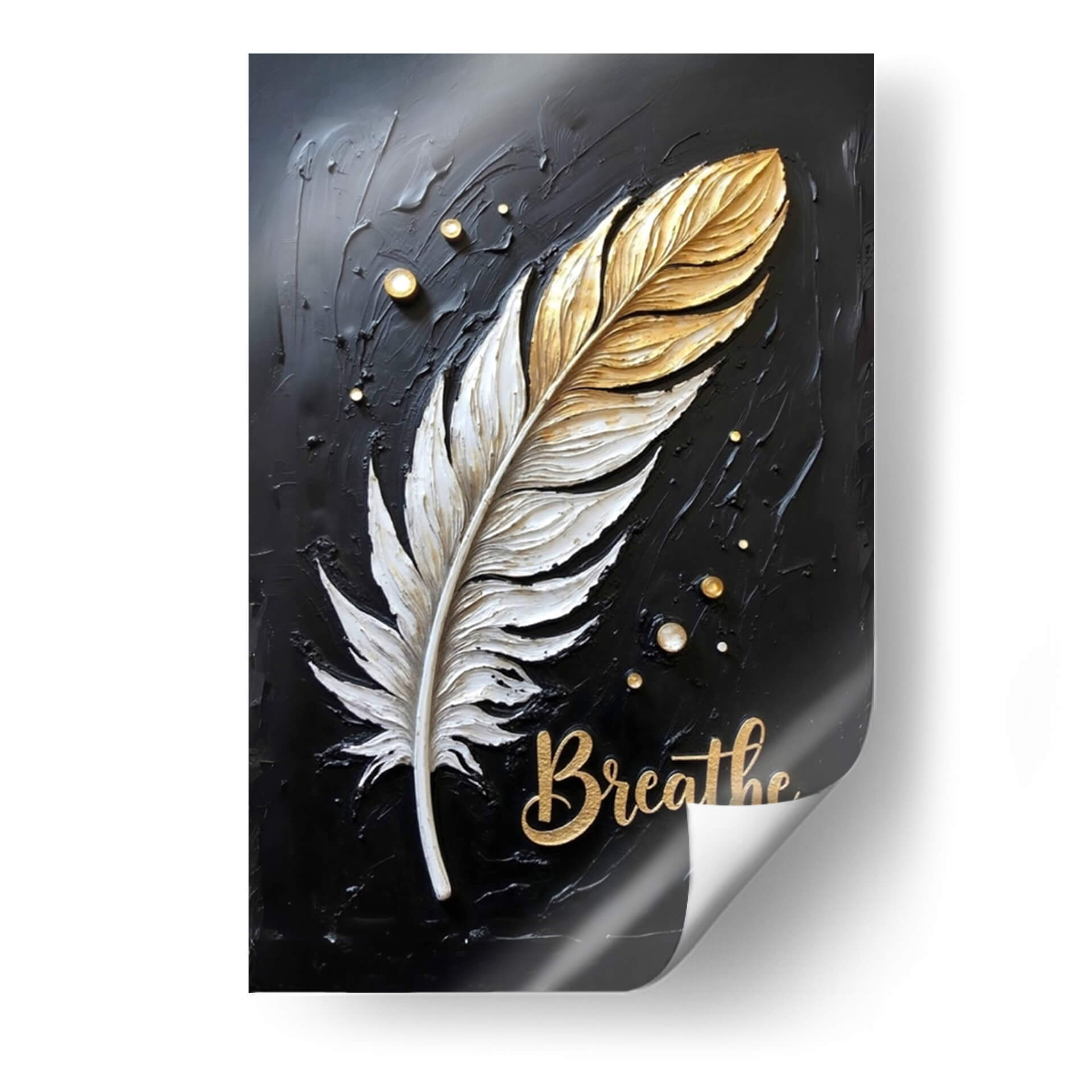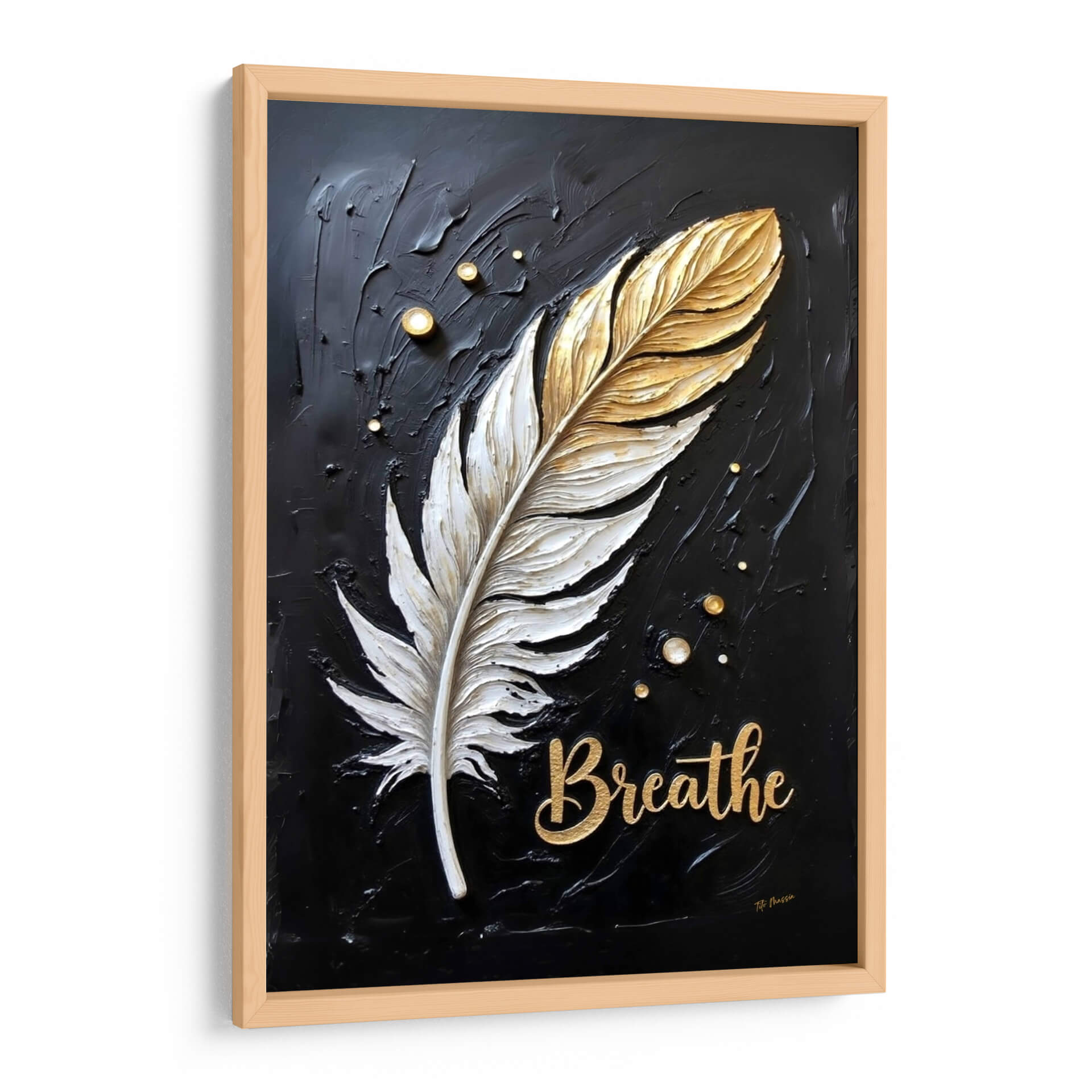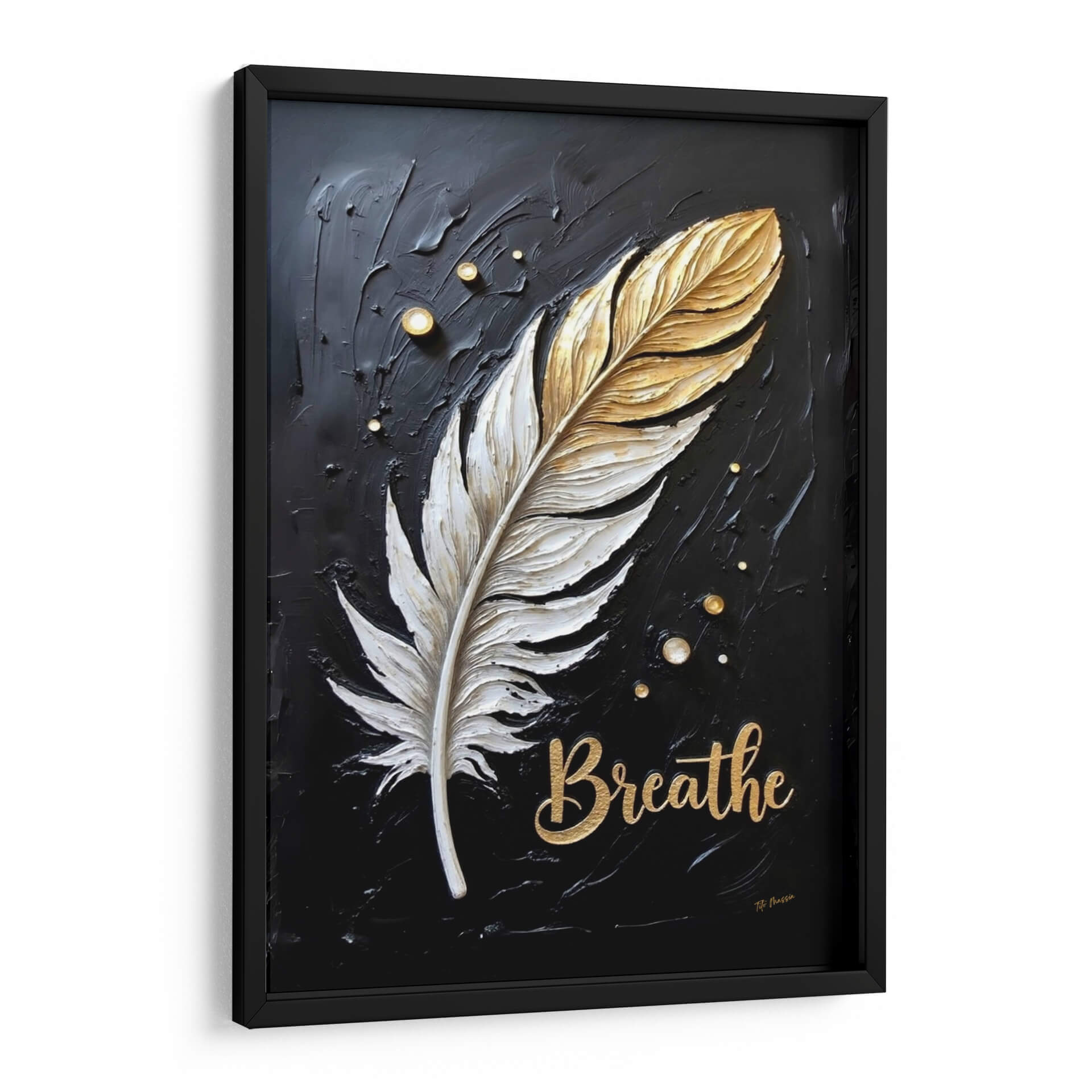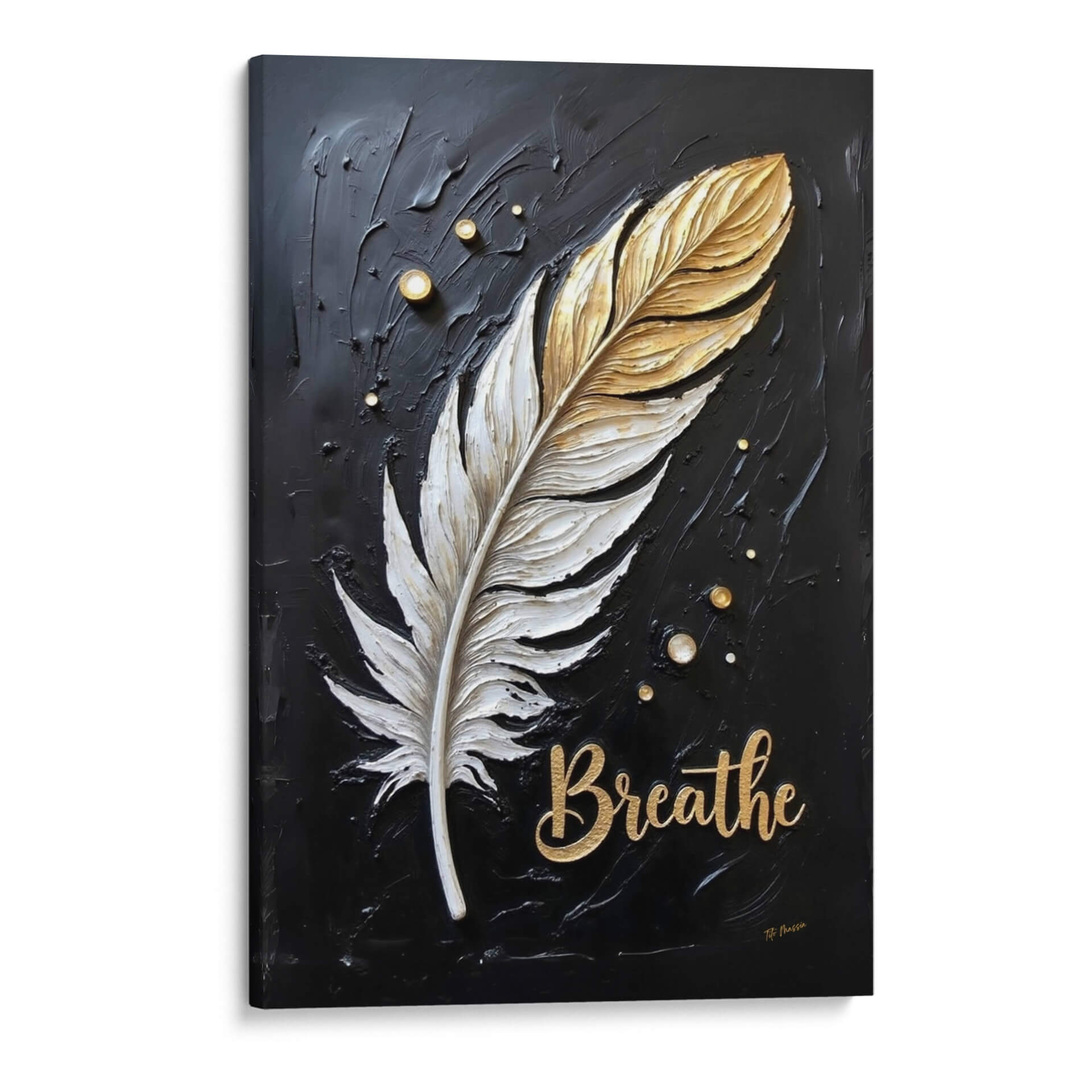 Sumérgete en la serenidad con "Respira", una obra de arte contemporáneo que captura la esencia de la calma y la introspección. Esta pieza, titulada "Respira" y creada por el artista Tito Massia, presenta una delicada pluma que se eleva sobre un fondo texturizado en negro profundo. La pluma, magistralmente representada en tonos blanco y dorado, parece flotar etérea, invitando a la contemplación. Pequeños puntos dorados dispersos añaden un toque de luz y profundidad, como estrellas fugaces o gotas de rocío, realzando la atmósfera de paz. La palabra "Breathe" escrita en elegante dorado complementa el mensaje de la obra, promoviendo un momento de pausa y conexión. "Respira" es ideal para crear un oasis de tranquilidad en tu dormitorio, un rincón de meditación en tu estudio, o como un punto focal sofisticado en tu sala de estar. Este cuadro decorativo contemporáneo aportará elegancia, serenidad y una dosis de inspiración a cualquier espacio, transformándolo en un refugio personal de paz y bienestar. Descubre la belleza de la simplicidad y la profundidad del mensaje en esta cautivadora obra de arte.